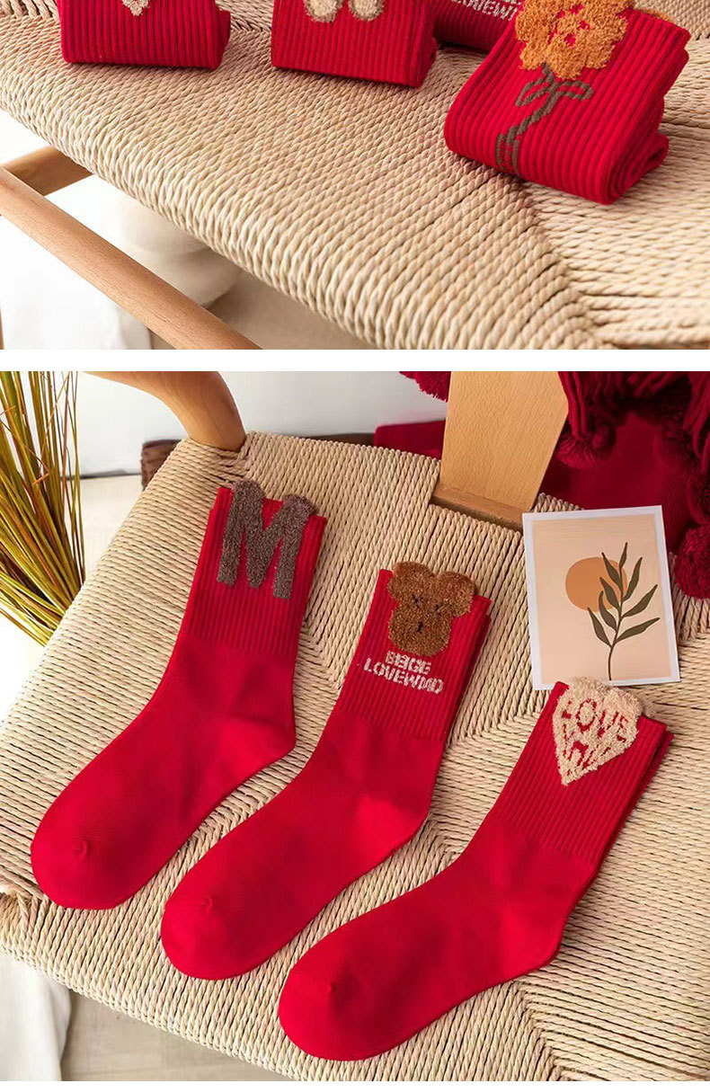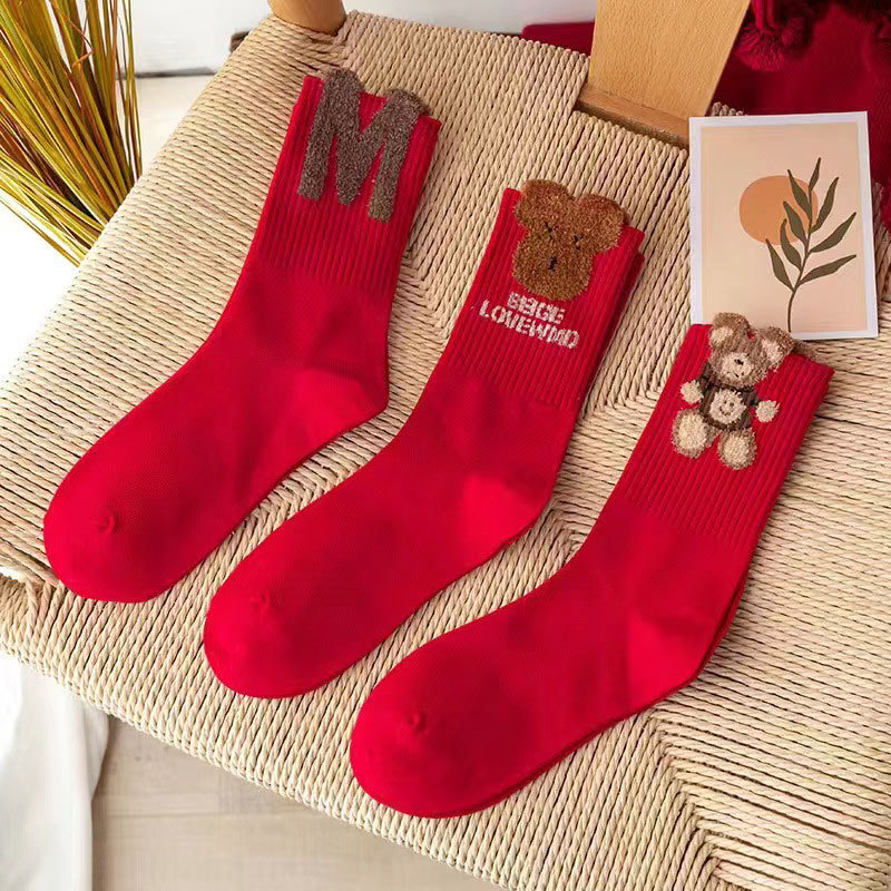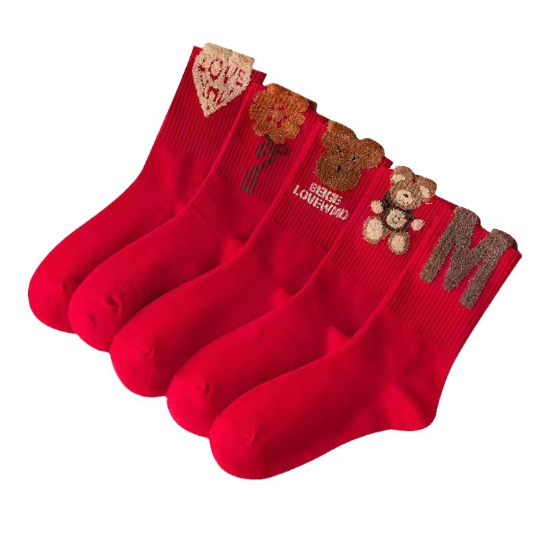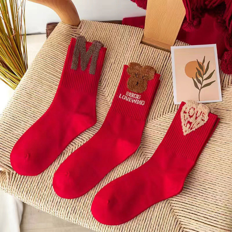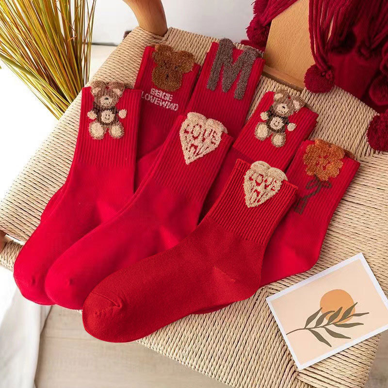 红袜批发袜子女本命年大红袜过年结婚喜庆袜子秋冬可爱羽毛纱袜子