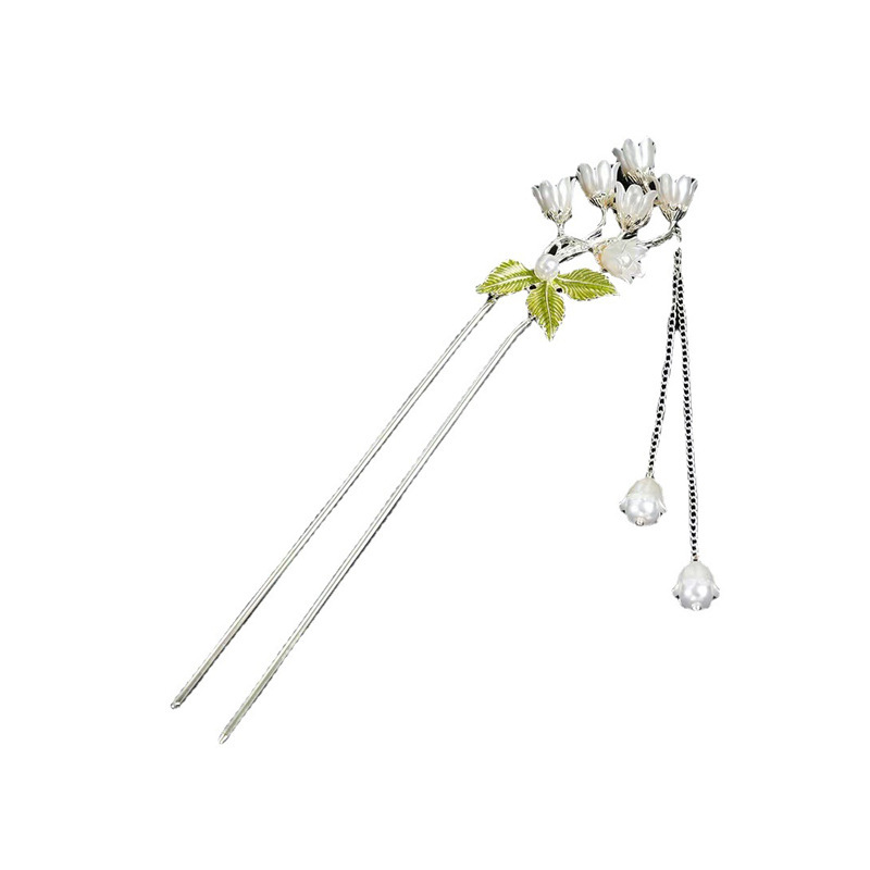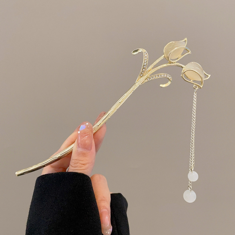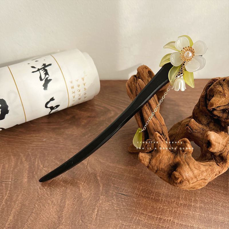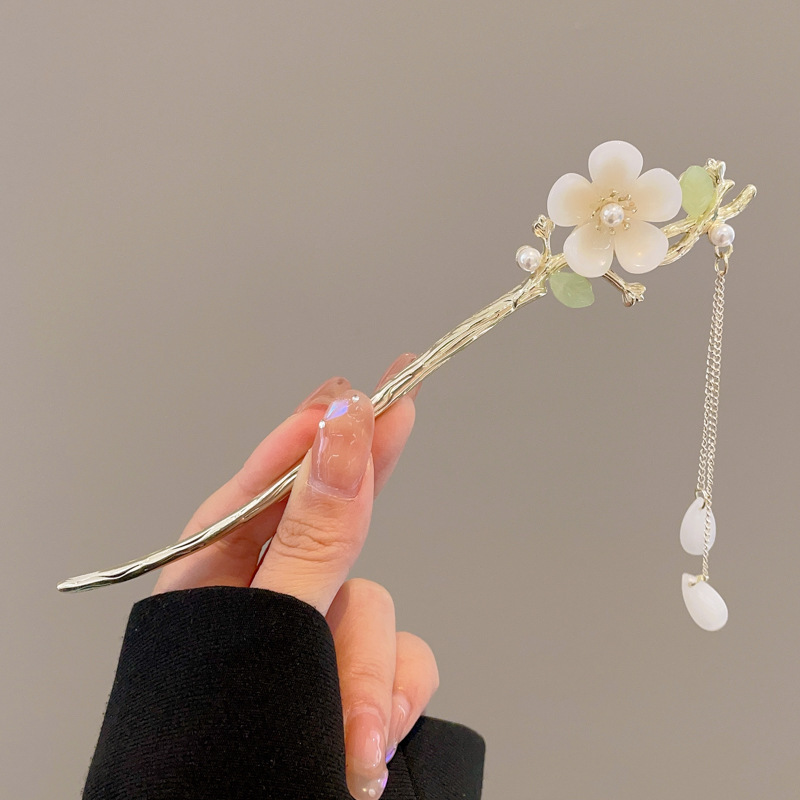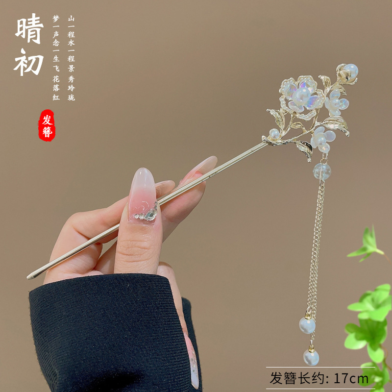 玉兰流苏发簪新中式高级感古风盘发带灯簪子女生超仙气质汉服配饰