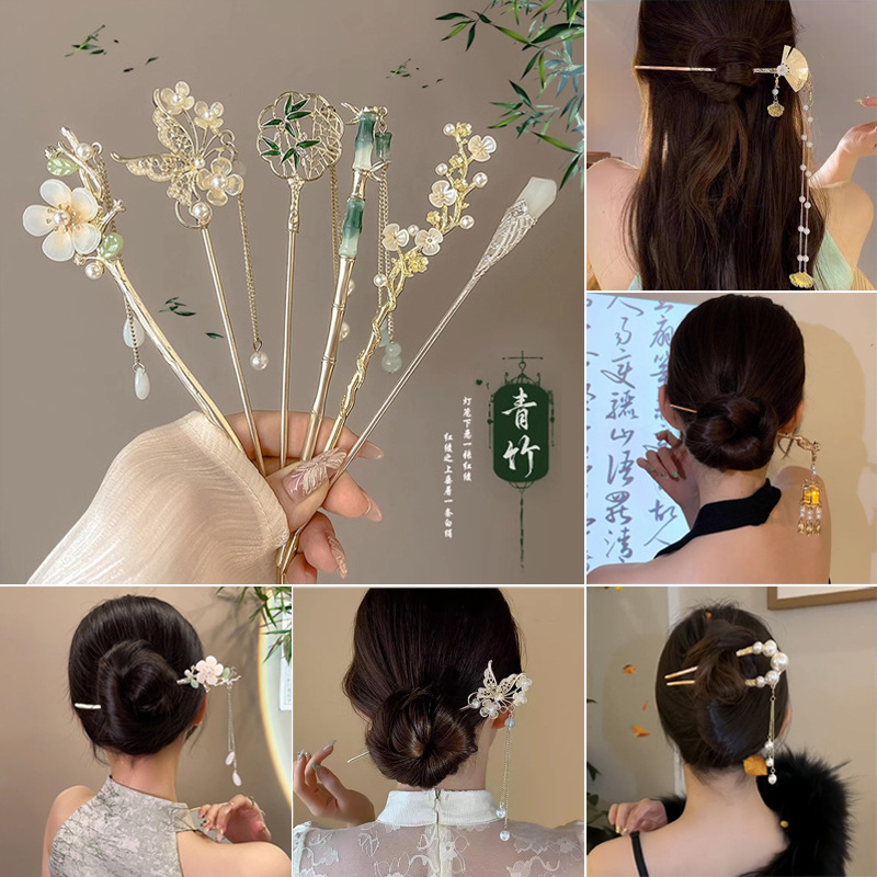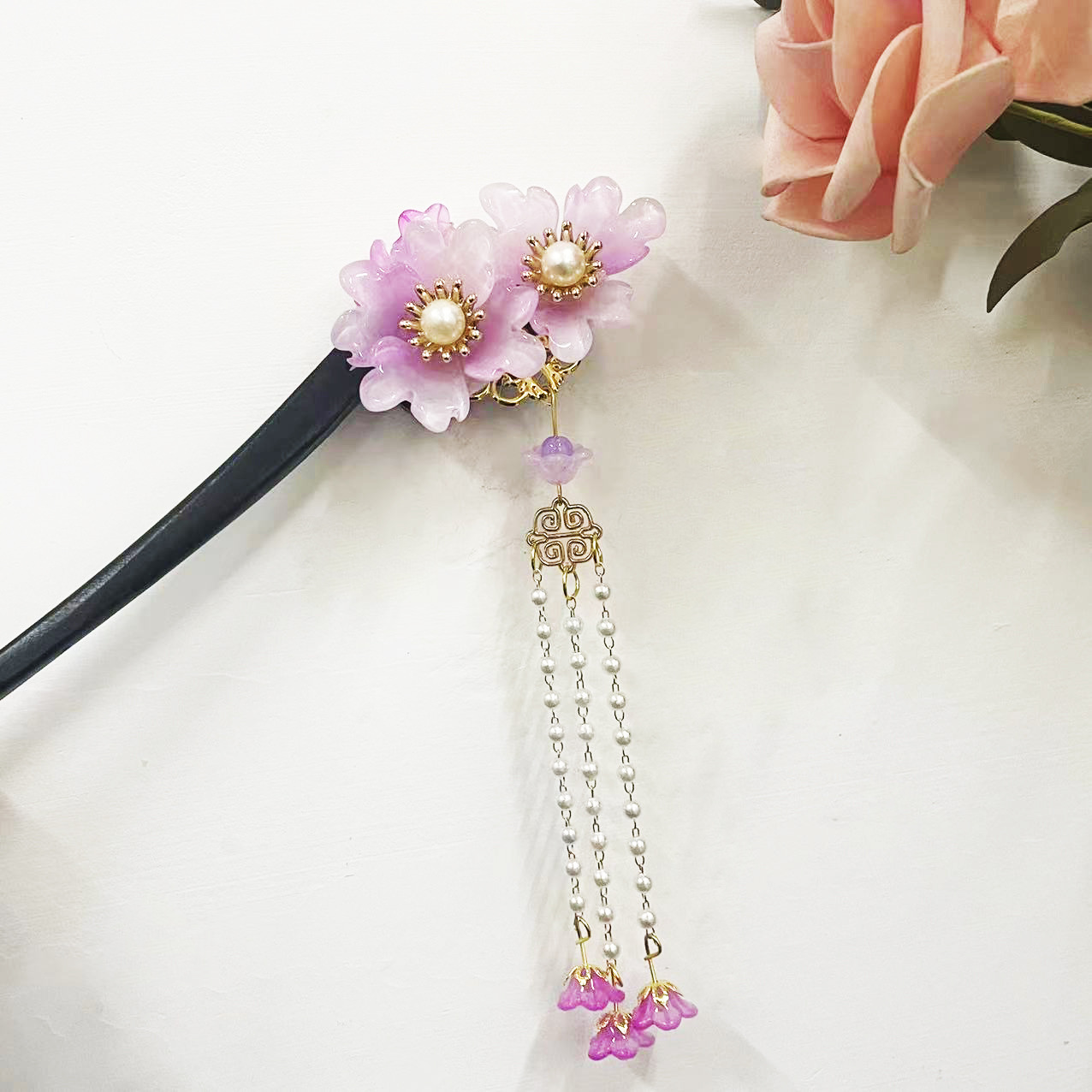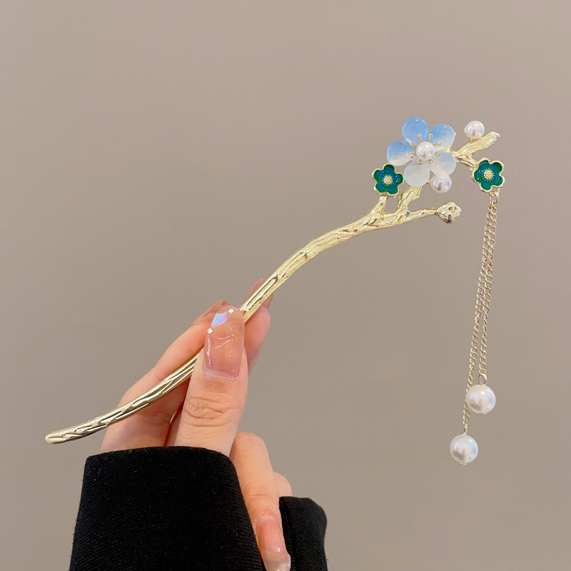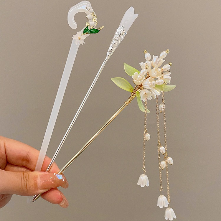 玉兰流苏发簪新中式高级感古风盘发带灯簪子女生超仙气质汉服配饰