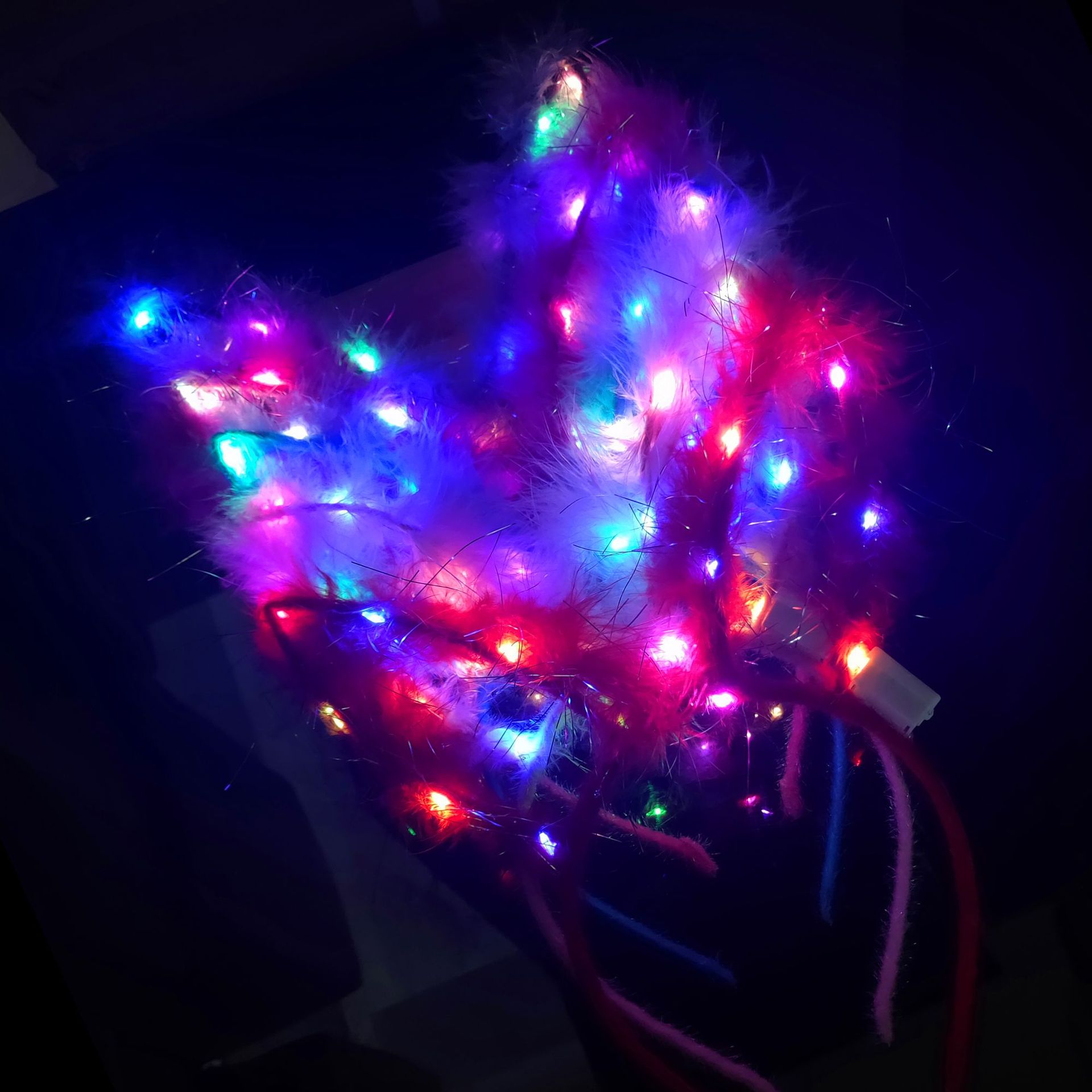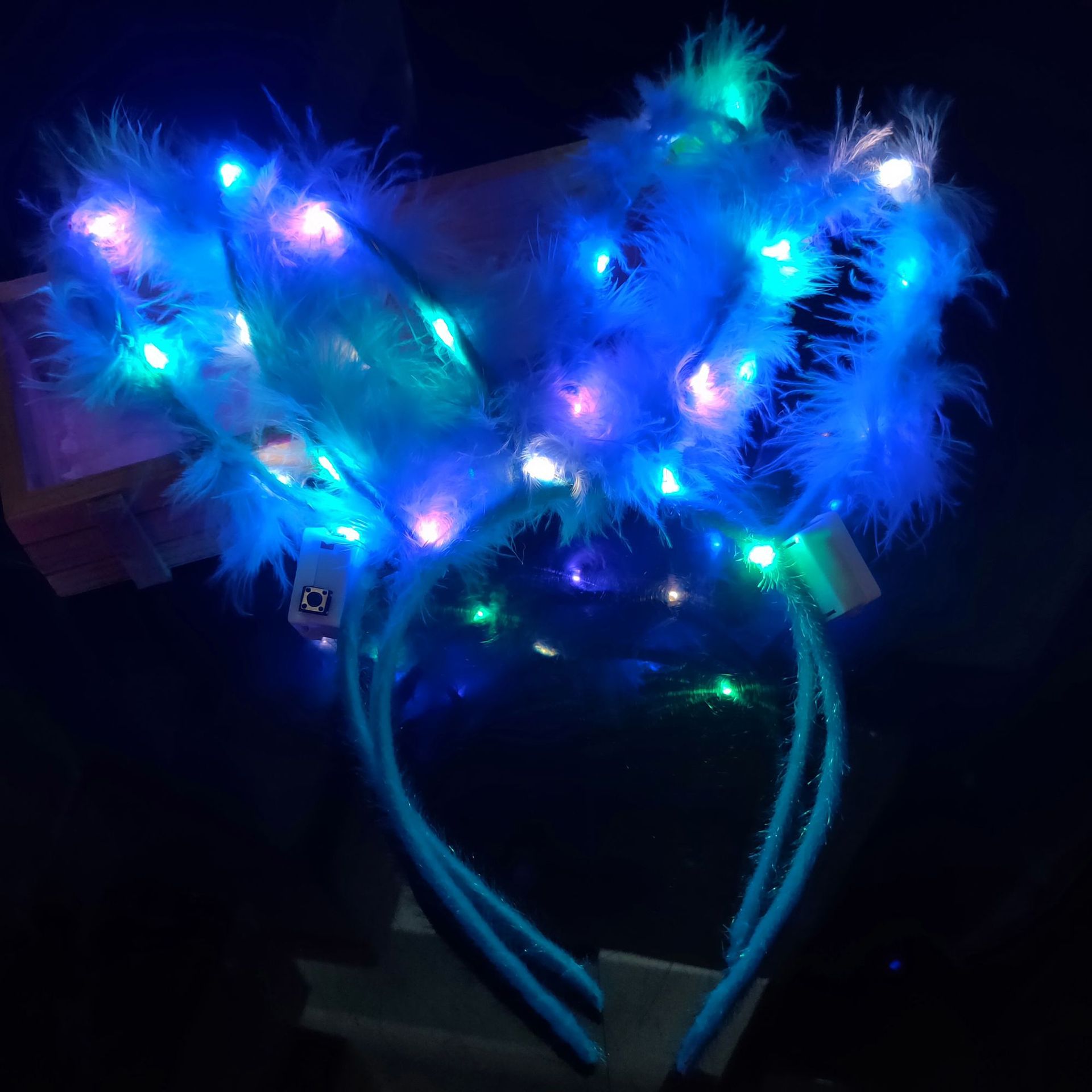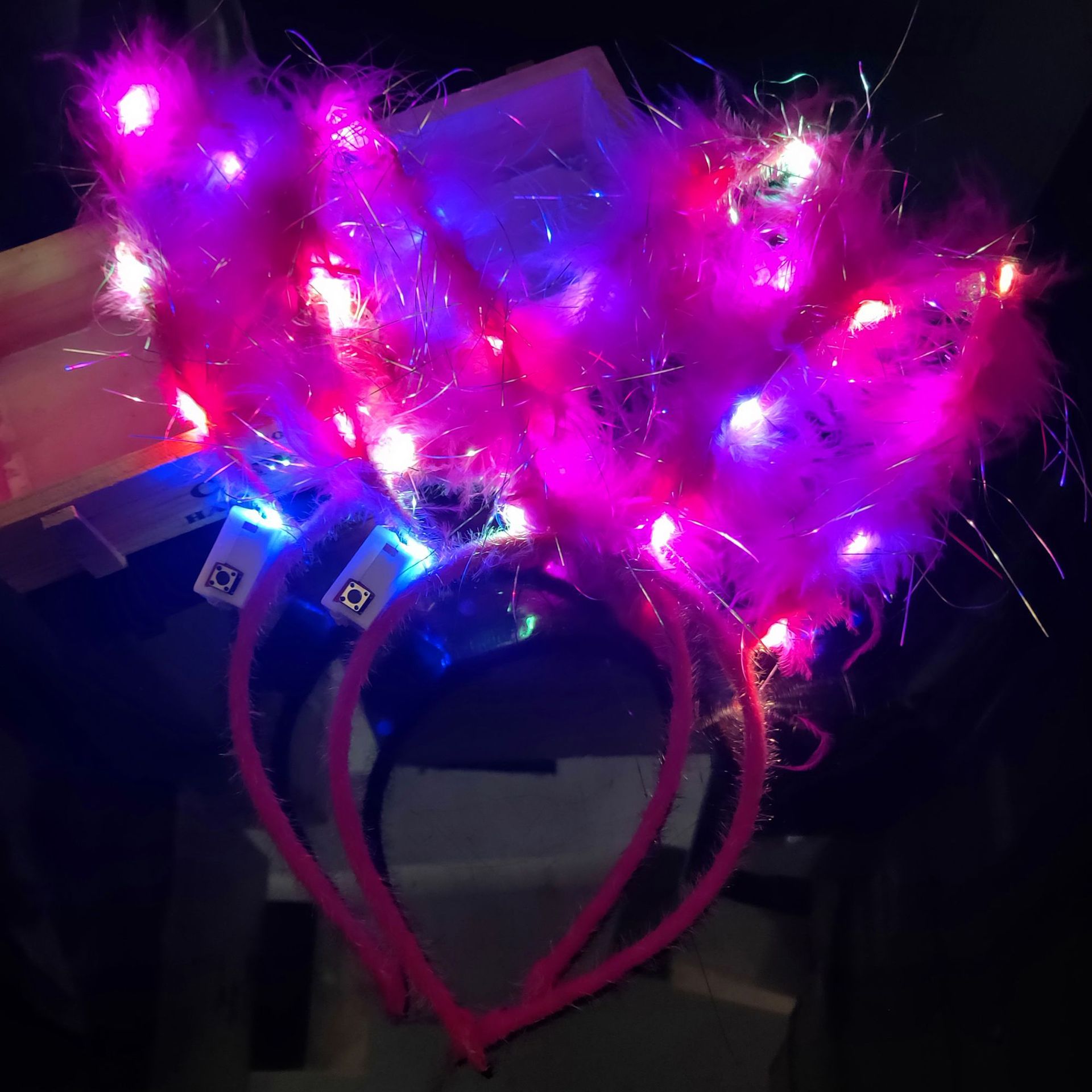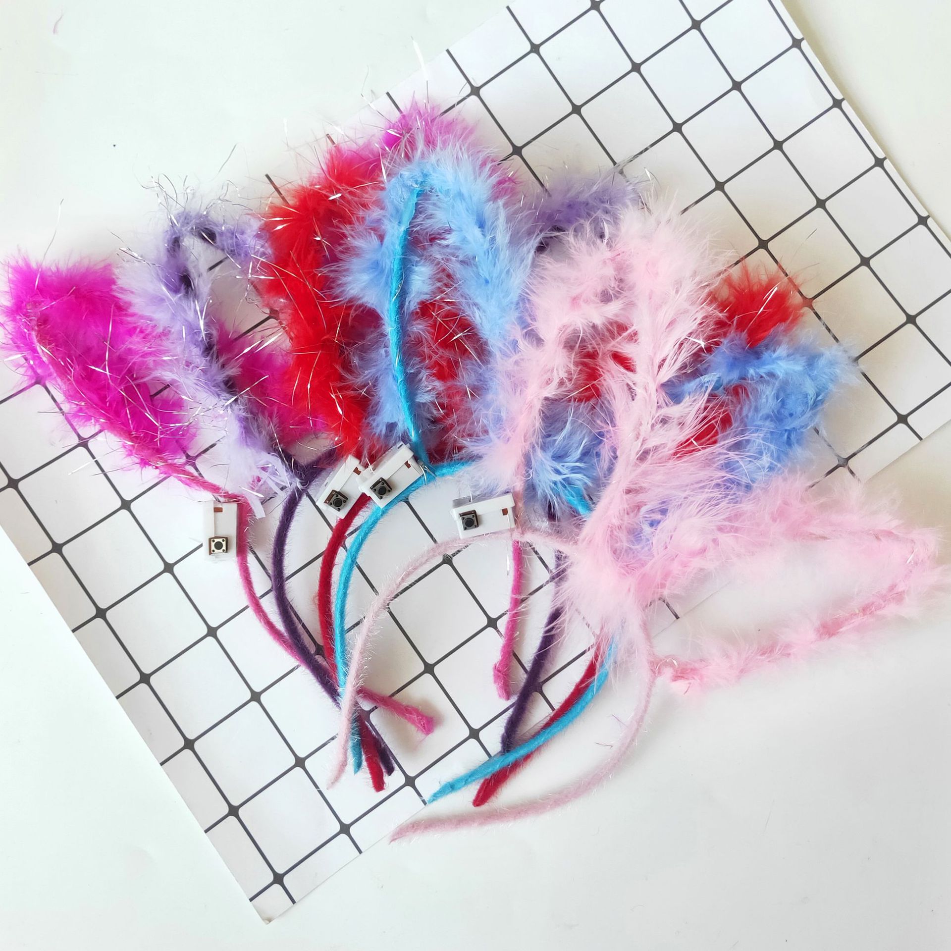 新款发光羽毛兔耳朵发箍 发光兔耳朵头饰厂家直销彩色灯地推玩具