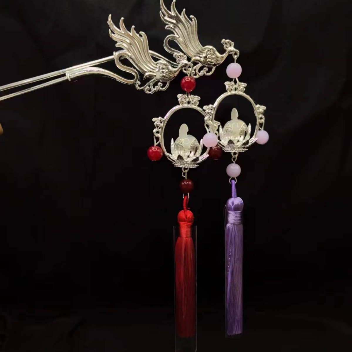 中国风发光发簪流苏盘发宫灯发钗国潮高级感簪子古风旗袍头饰发饰