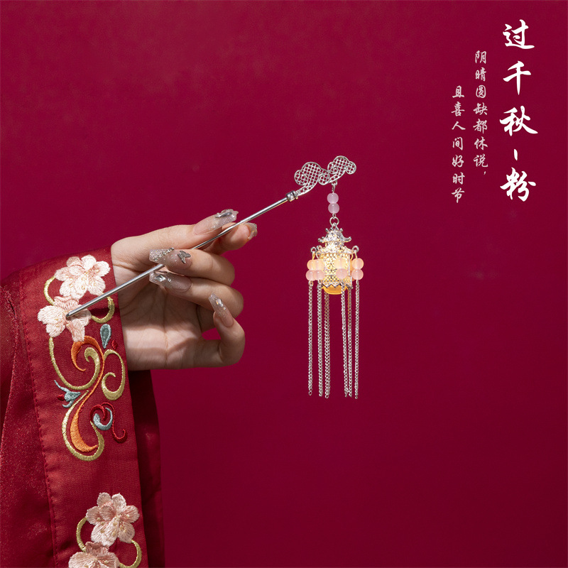 灯笼发簪女古风汉服簪子后脑勺盘发钗新中式头饰发饰发光头饰发簪