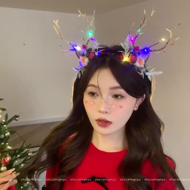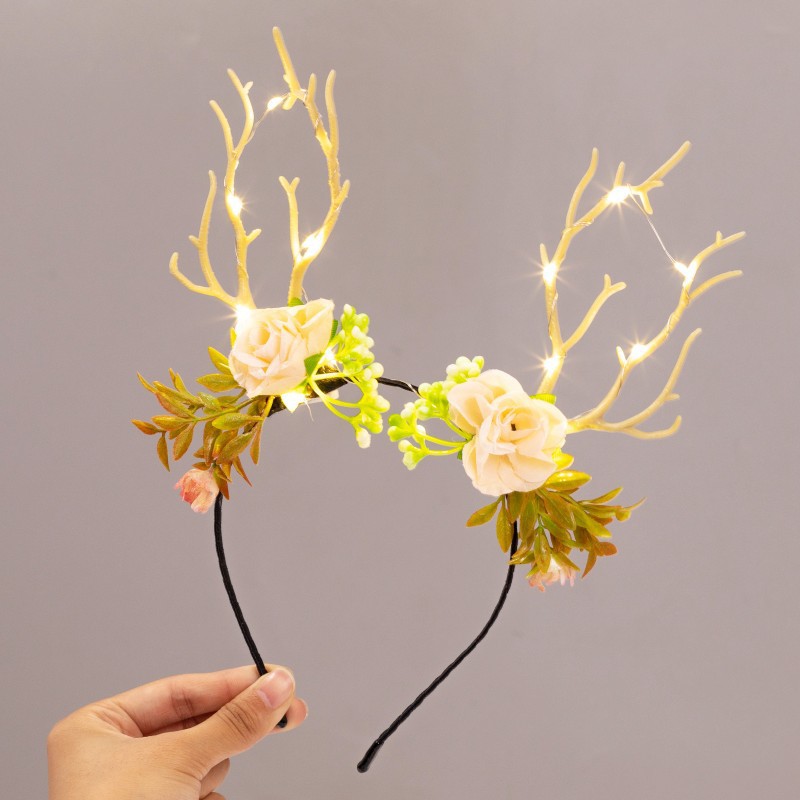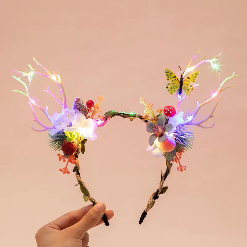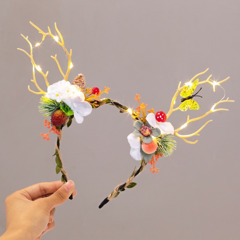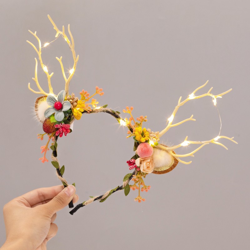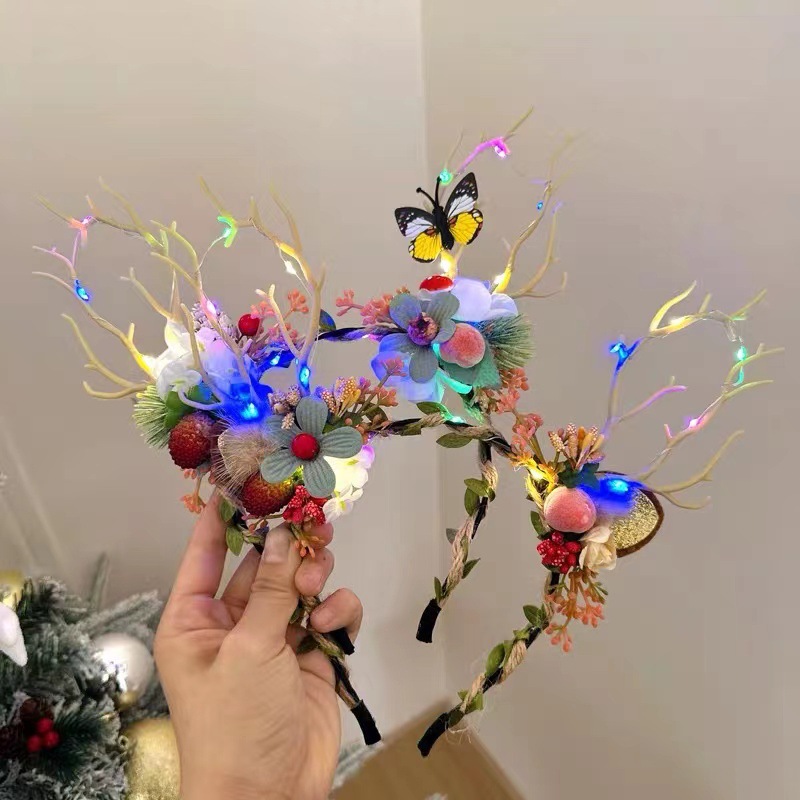 鹿角发箍头饰森系超仙网红发光小鹿精灵拍摄圣诞节发饰发光发箍