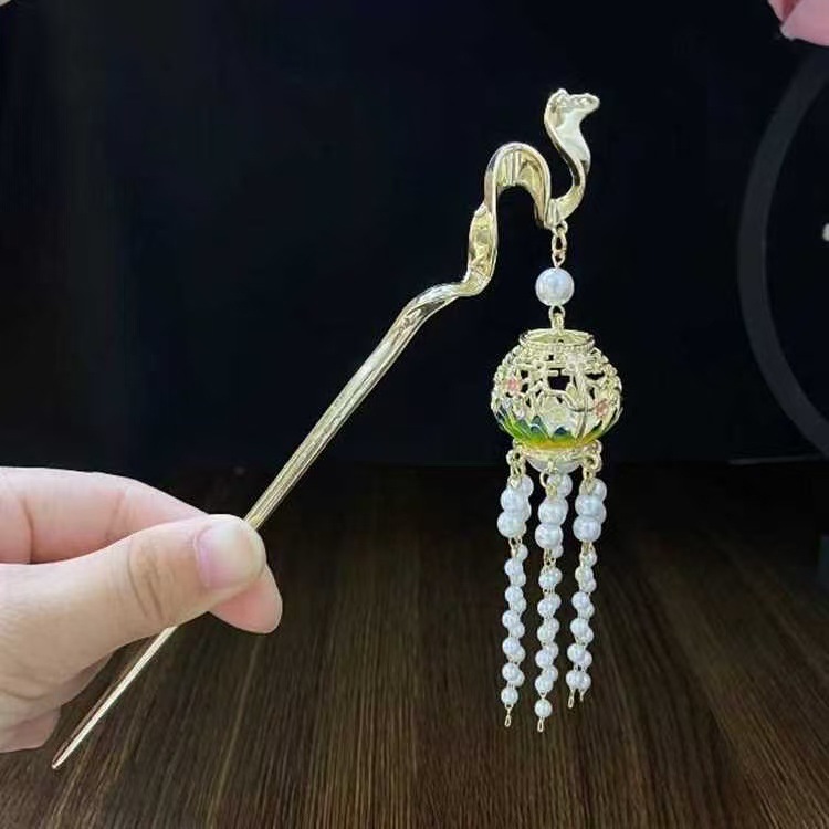 新中式灯笼发簪高级感竹节流苏发光簪子盘发神器发钗古风汉服发饰