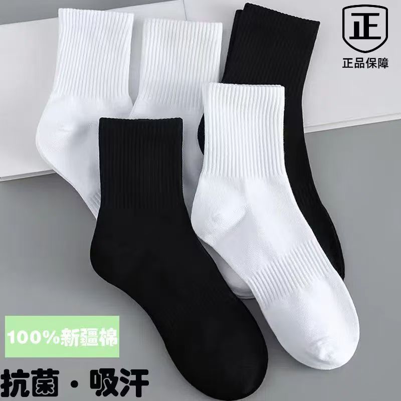 百搭纯色黑白中高筒袜子男士秋冬袜子女生诸暨运动休闲袜批发女袜