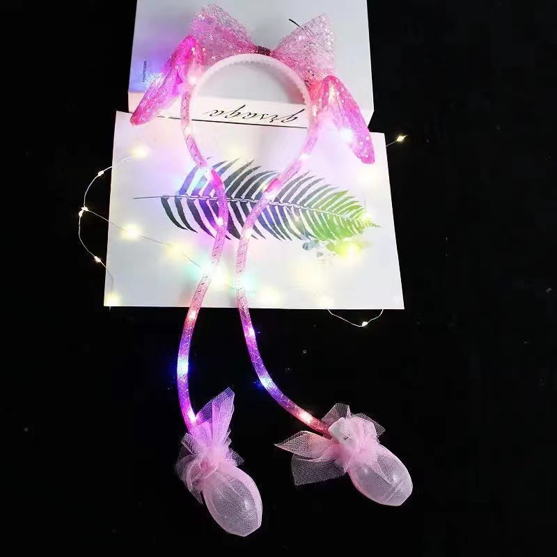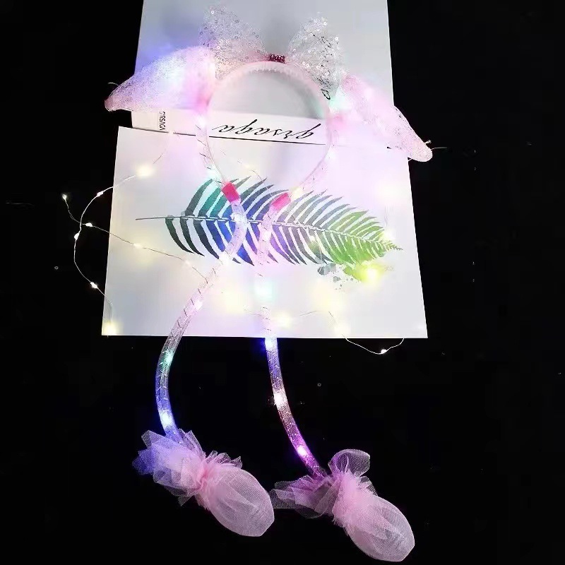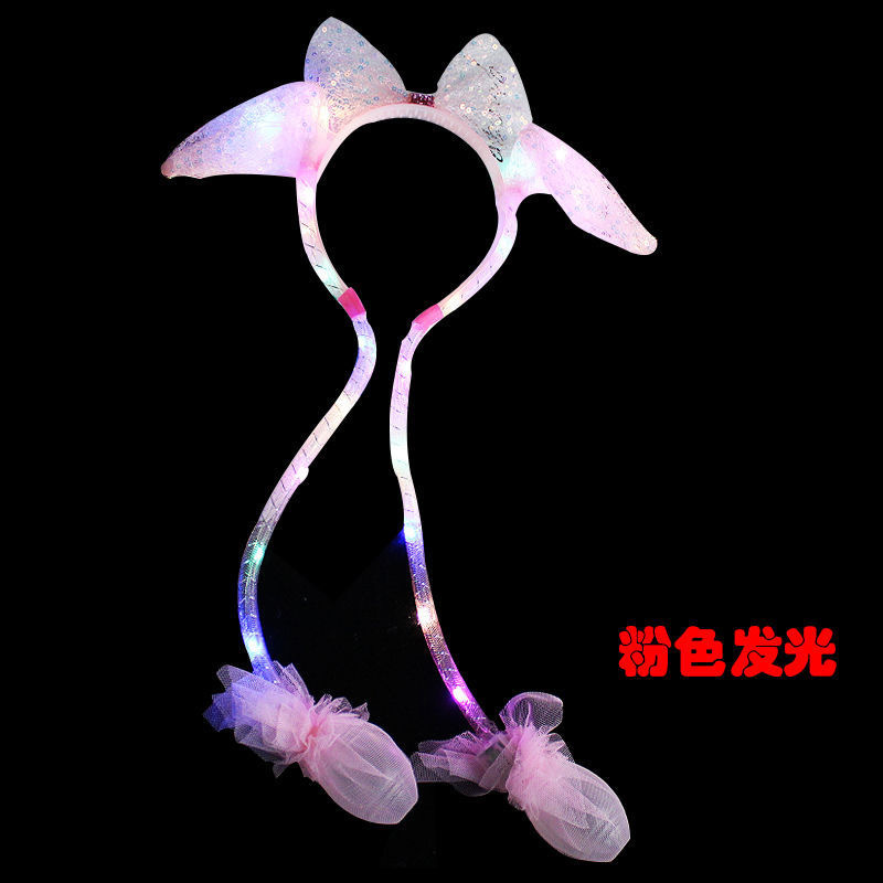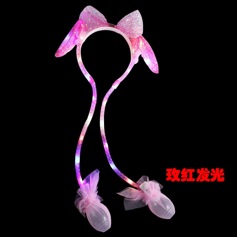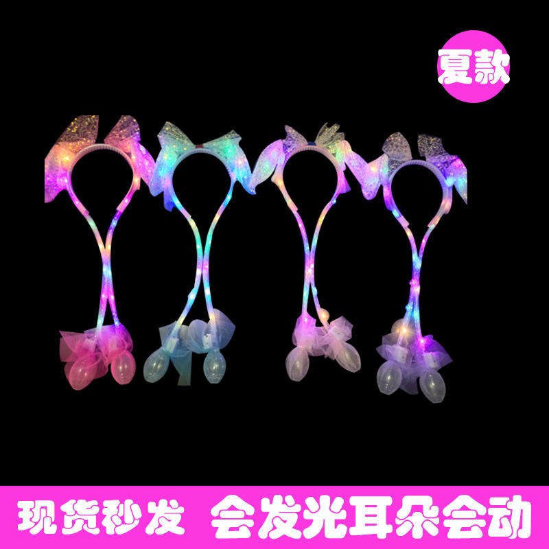 网红发光兔耳朵一捏会动耳朵抖音同款发光兔耳朵头箍新款亮片耳朵