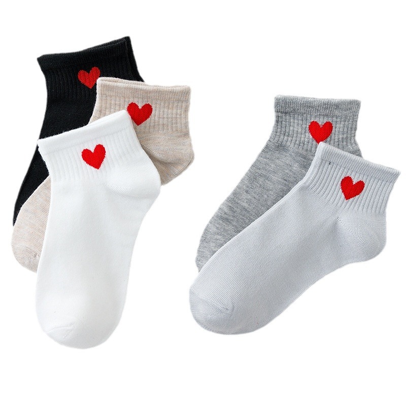 袜子女短筒袜夏季薄款纯色红爱心短袜潮流日系低帮女船袜厂家批发