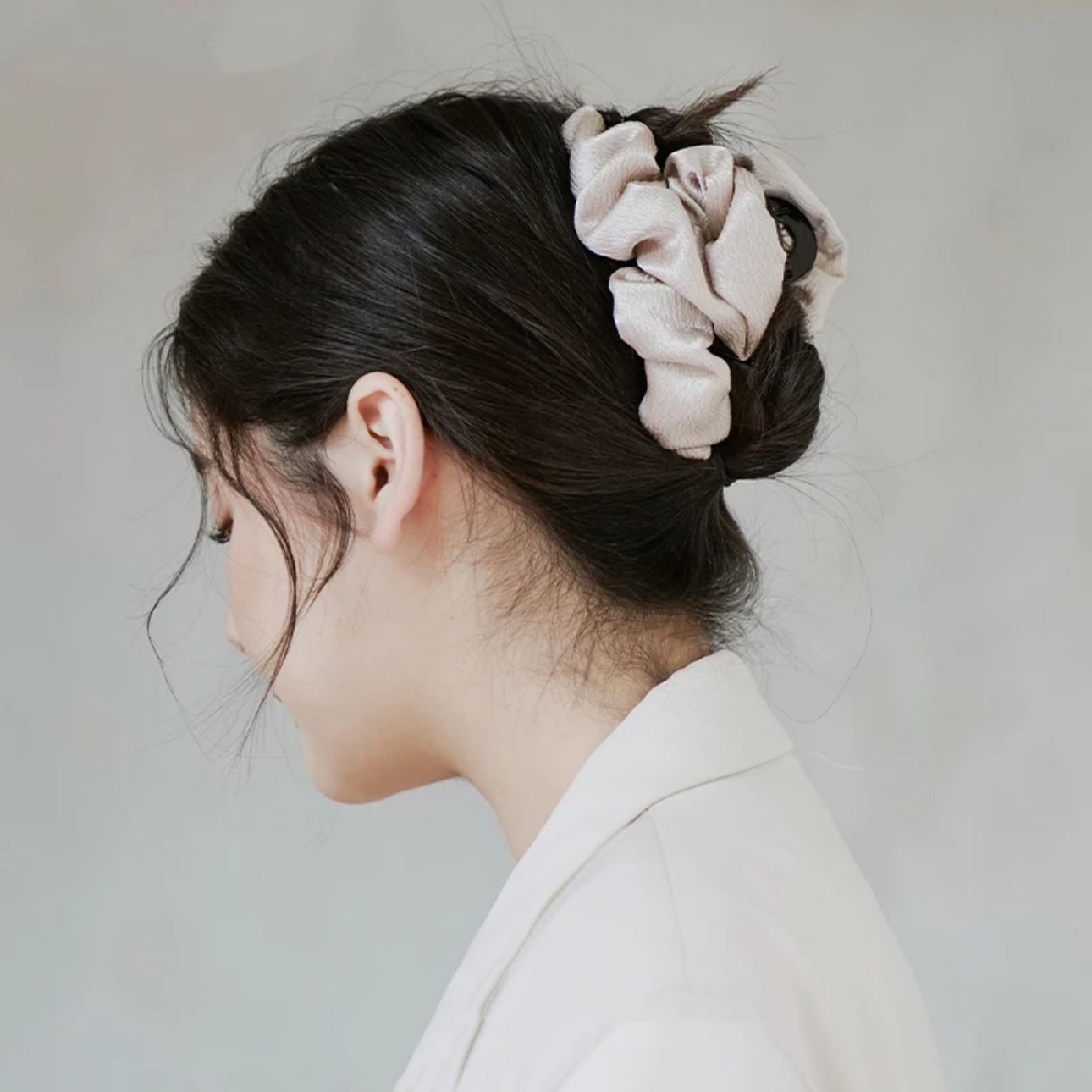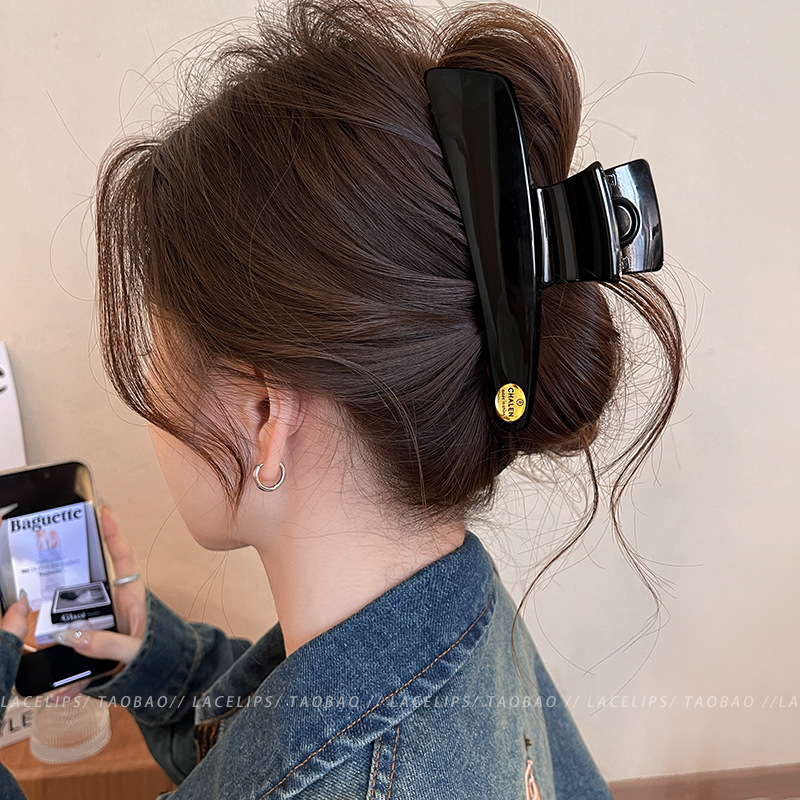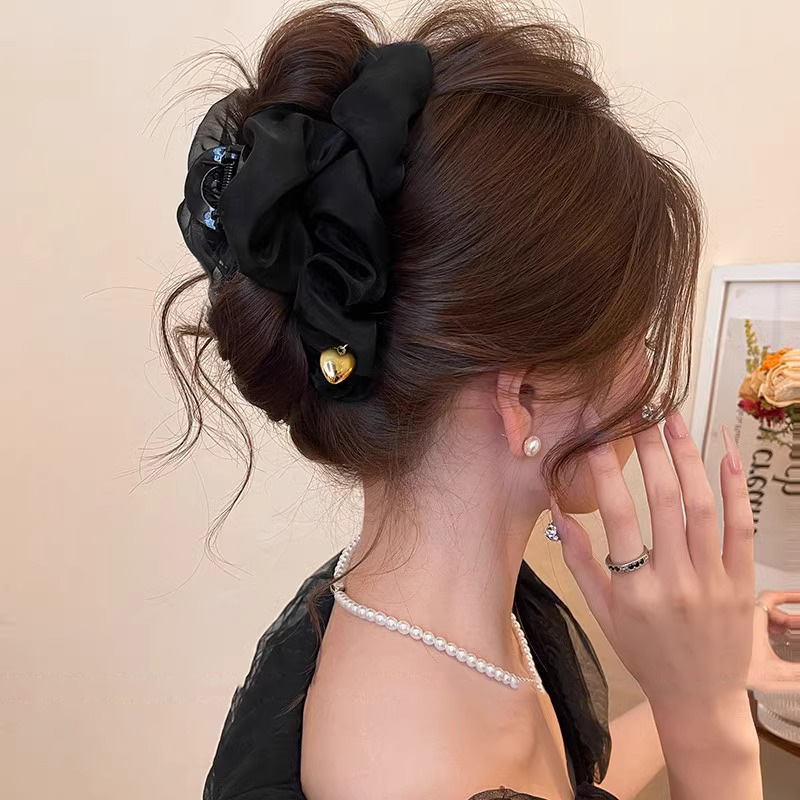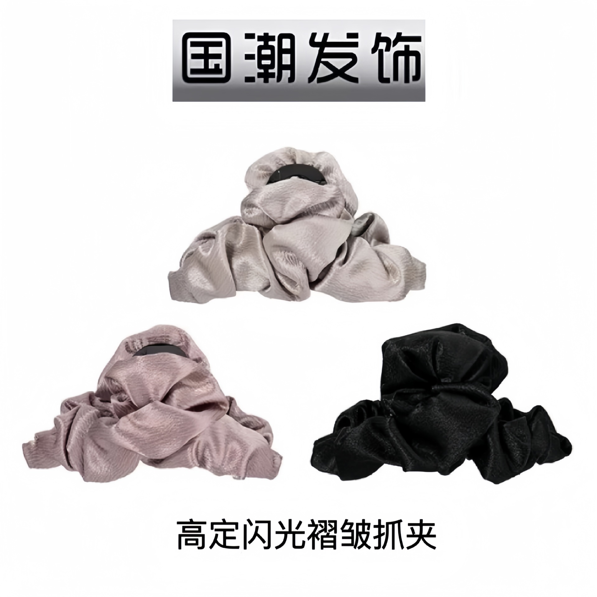 闪光褶皱后脑勺抓夹高级感气质网红发夹女国潮时尚头饰简约鲨鱼夹