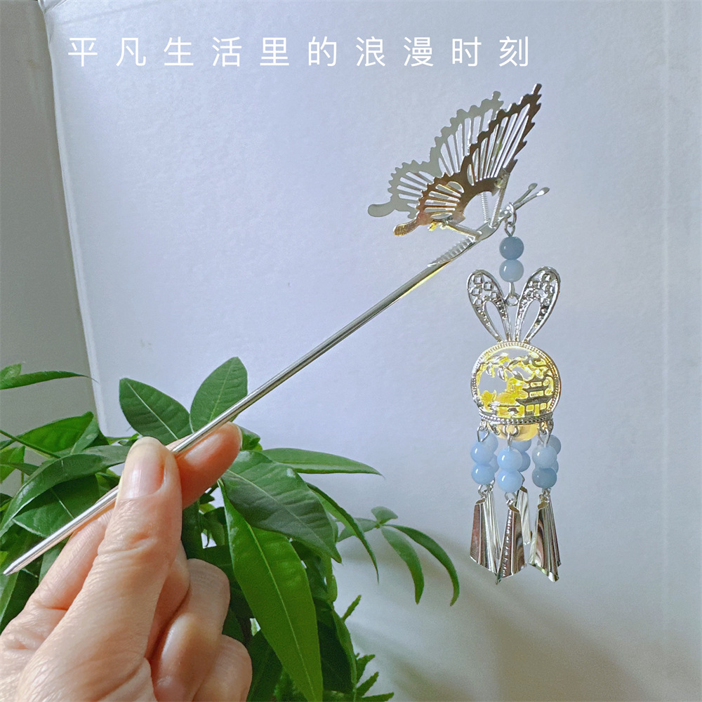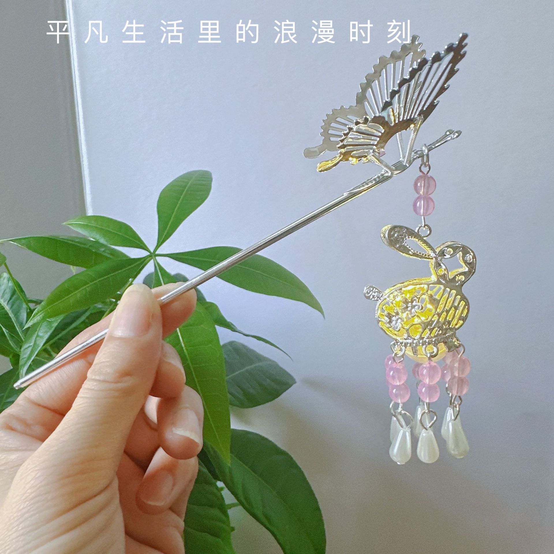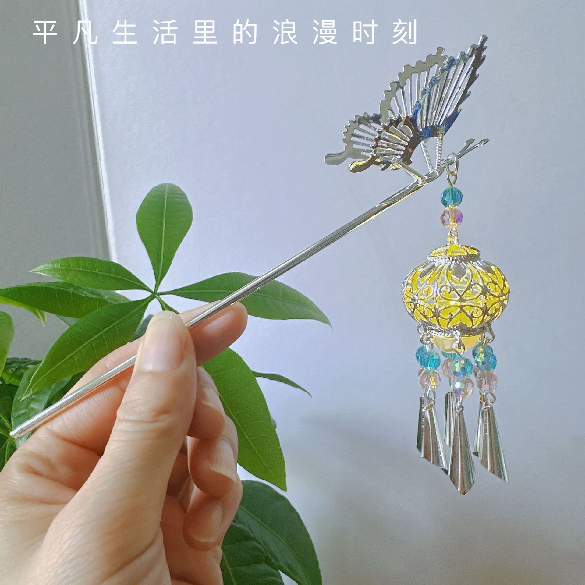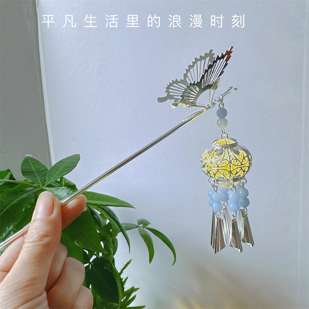 会动的蝴蝶簪子发光凉亭宫灯发簪复古宫廷仙气发光簪子头饰批发
