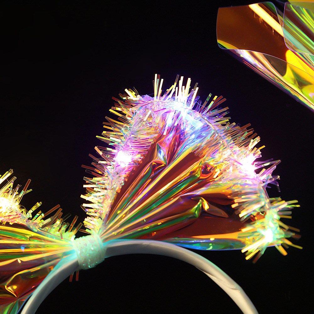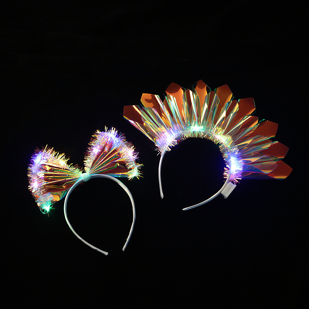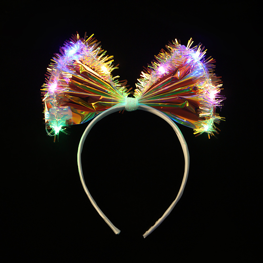 跨境创意发光玩具镭射彩膜蝴蝶结发箍狂欢节聚会派对表演装扮道具