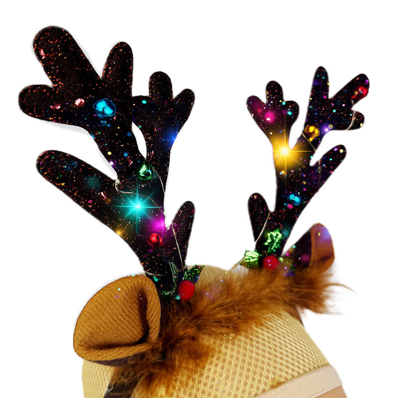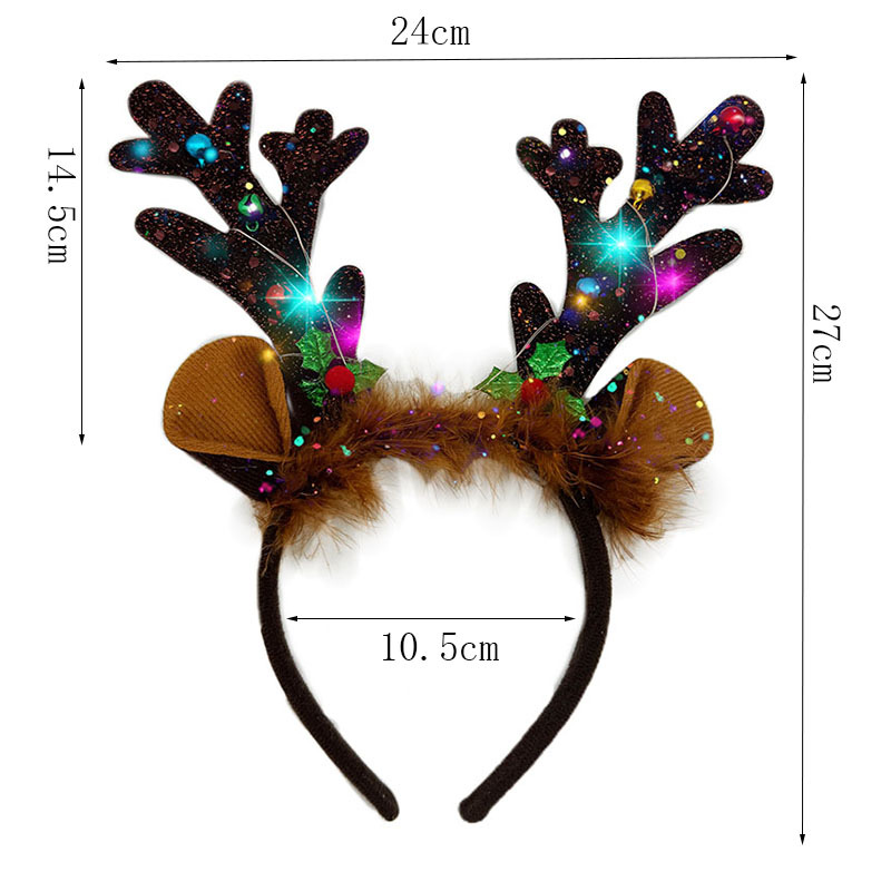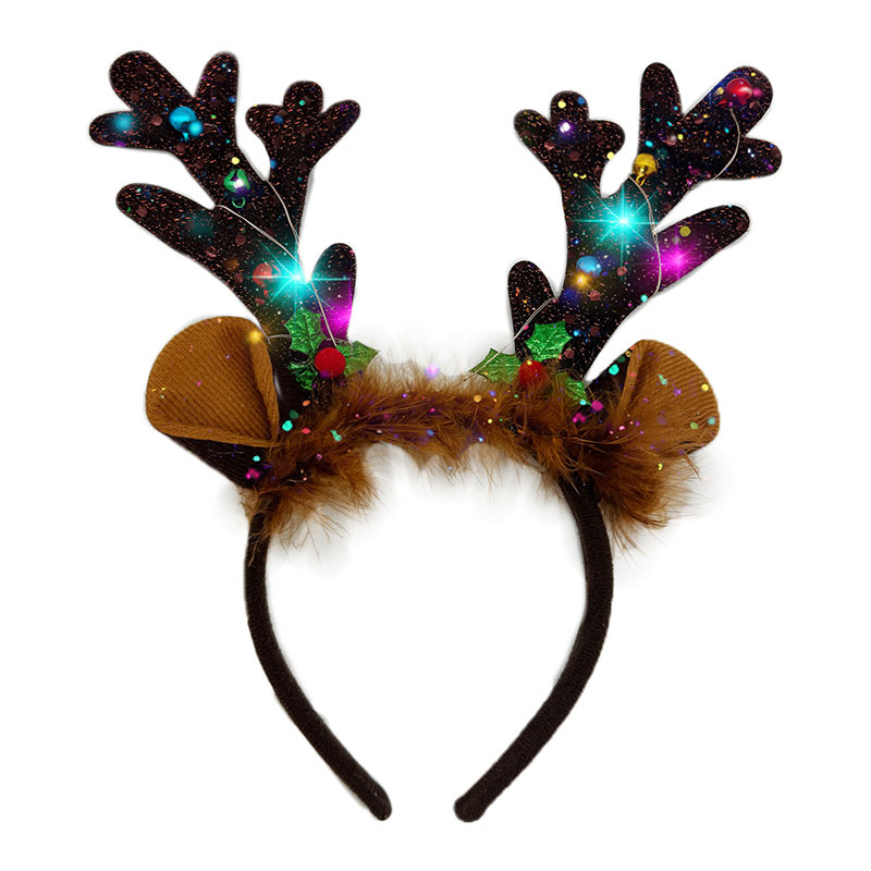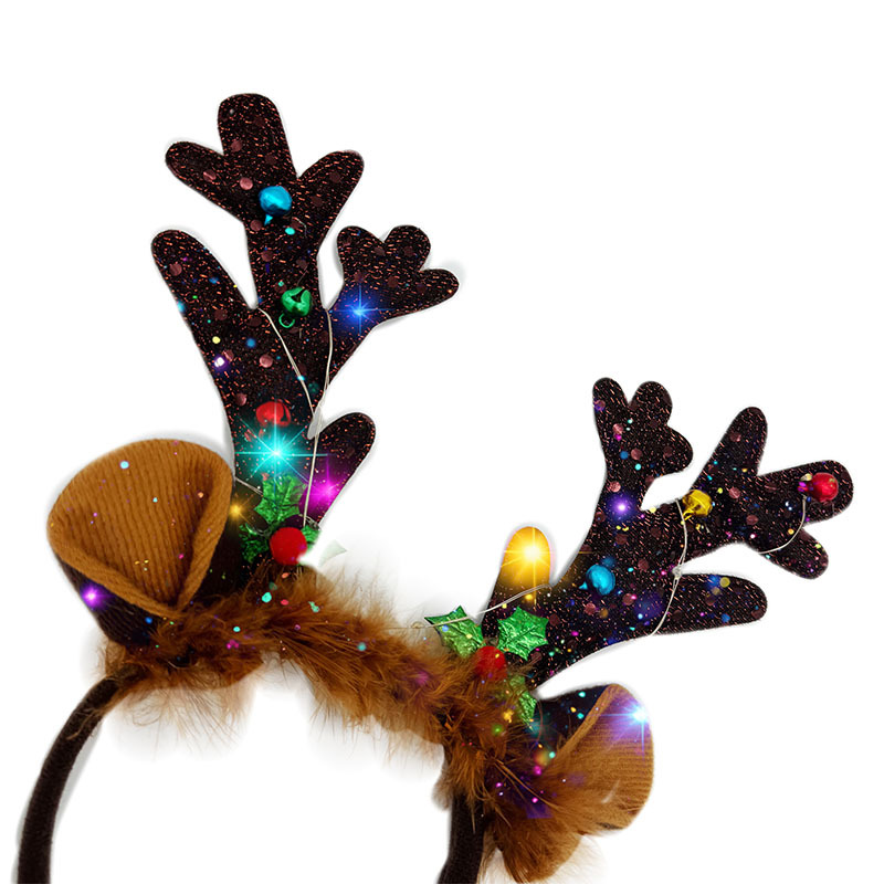 跨境圣诞发箍圣诞铃铛鹿角头饰闪光鹿角头扣可爱舞会派对头饰头箍