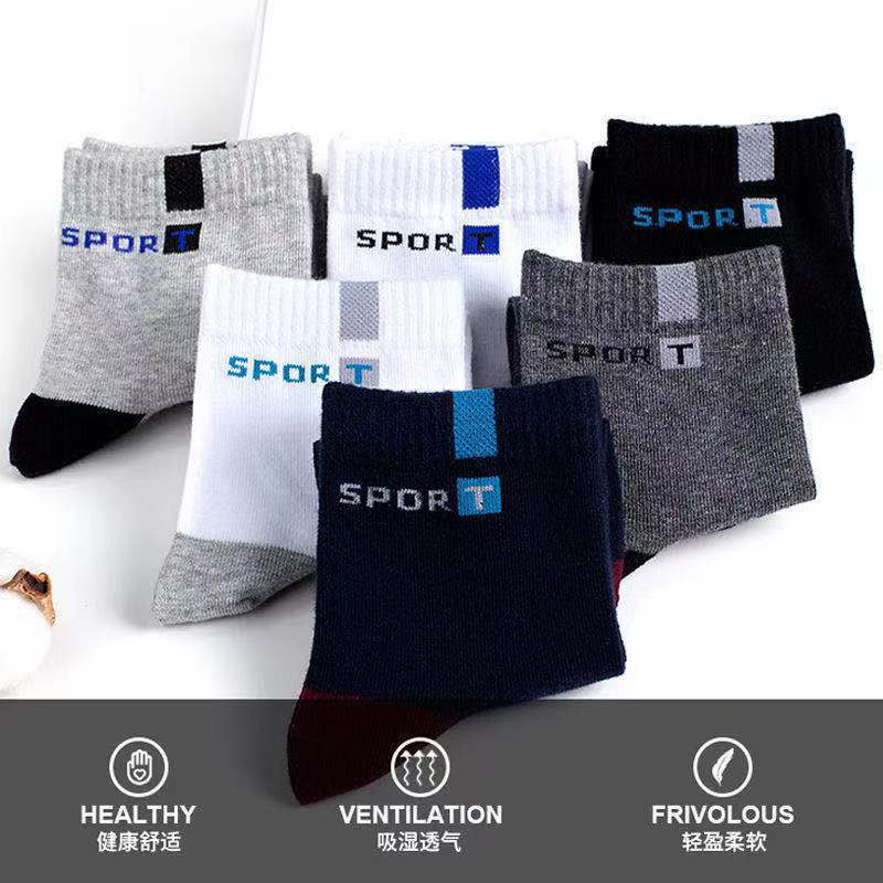 袜子男士中筒字母sport棉袜运动款防臭长袜吸汗透气四季篮球男袜
