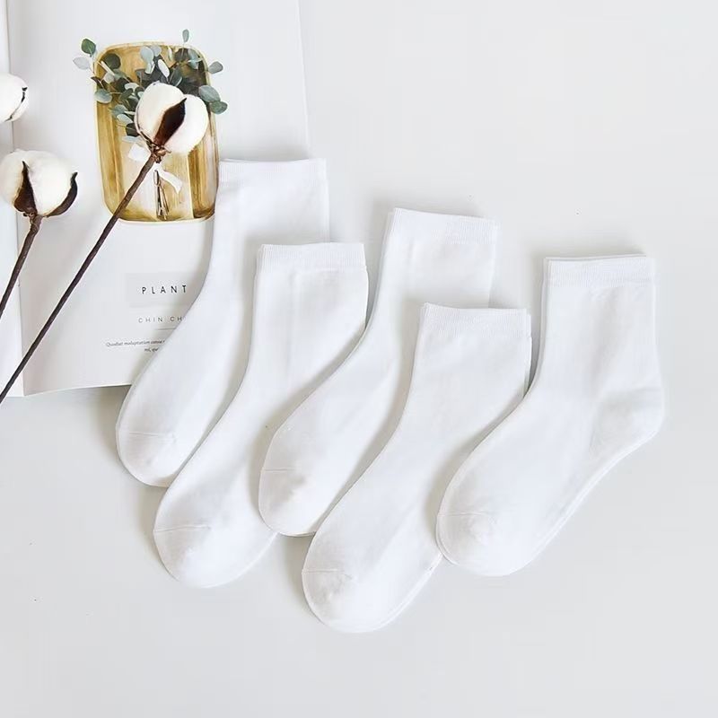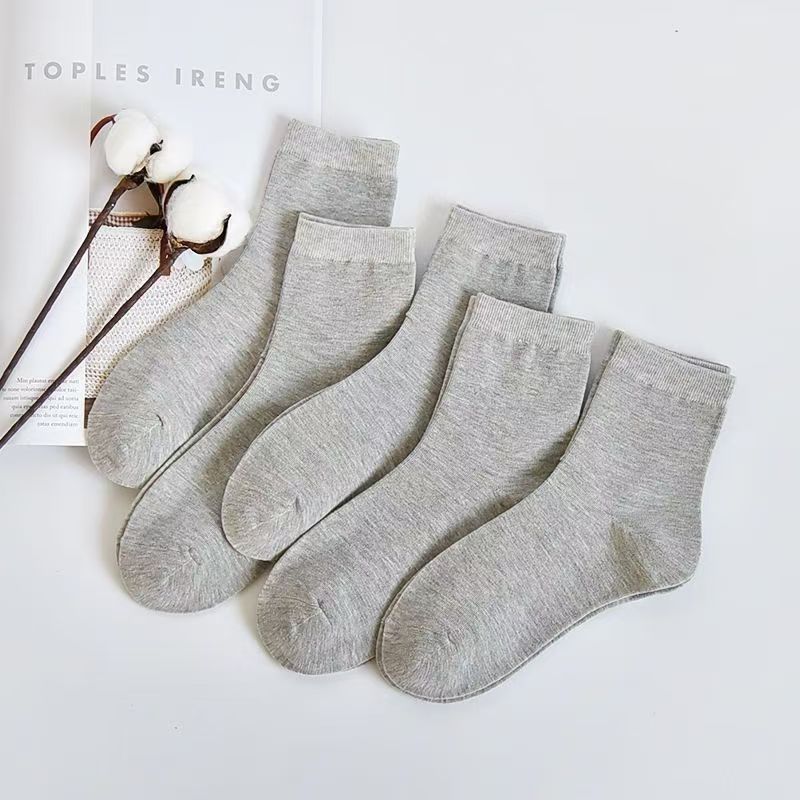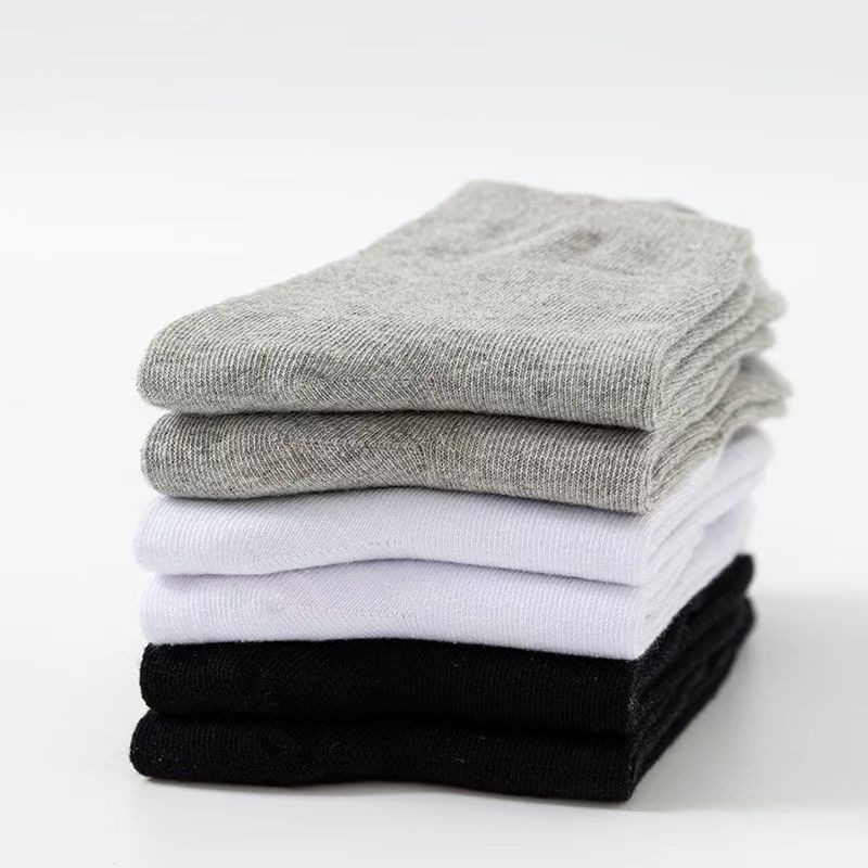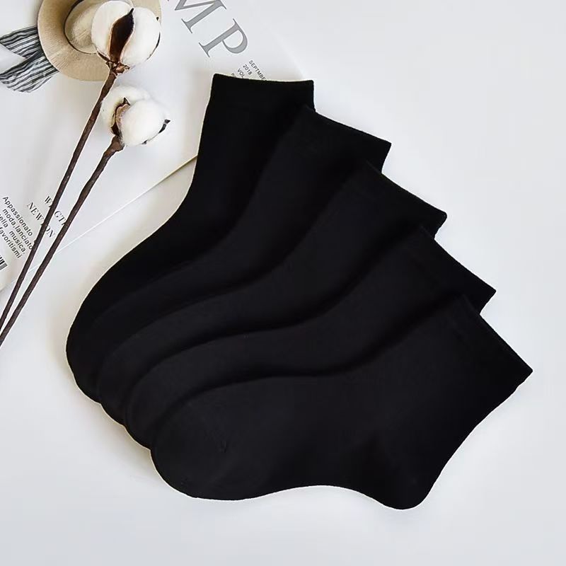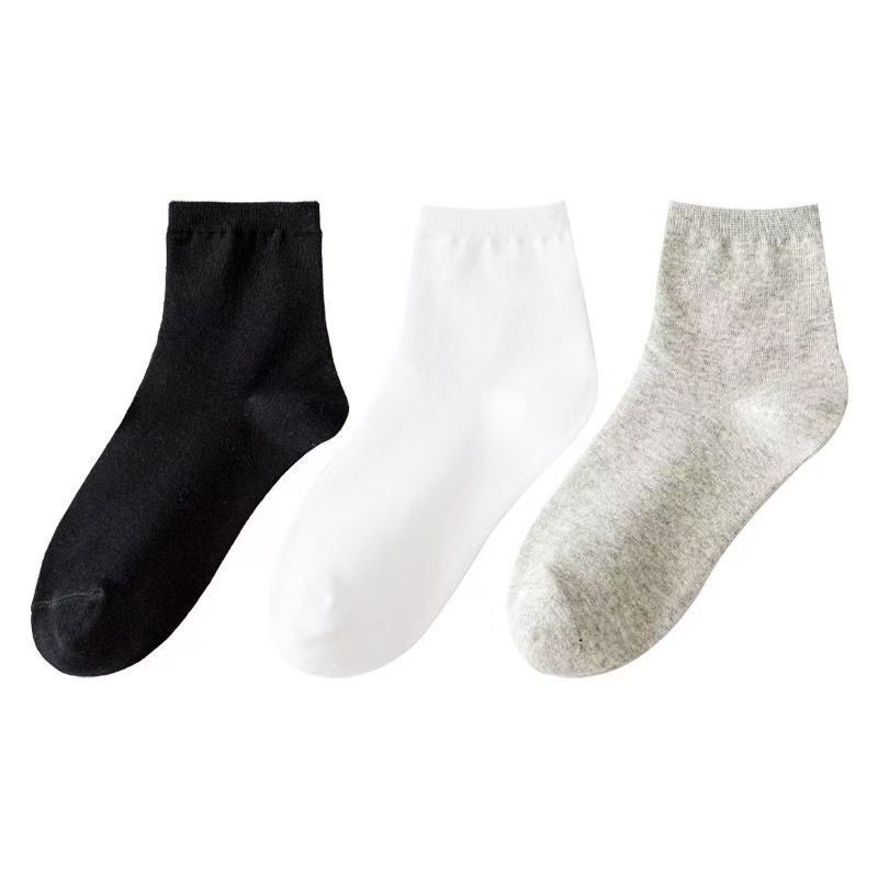 诸暨袜业批发黑白灰中筒袜纯色百搭春秋季男士短袜街潮男袜长袜女