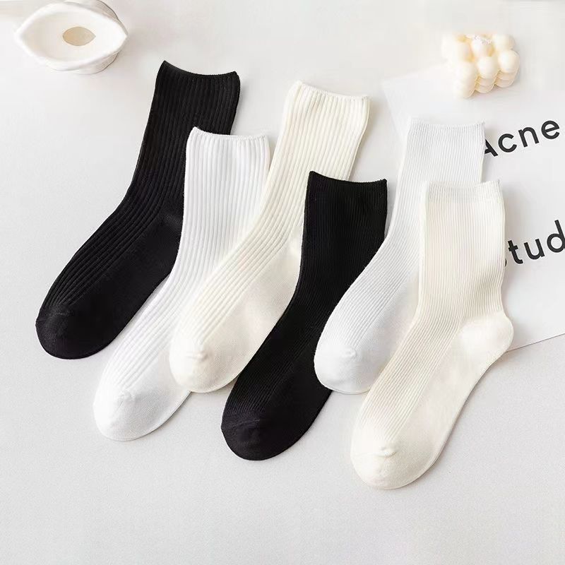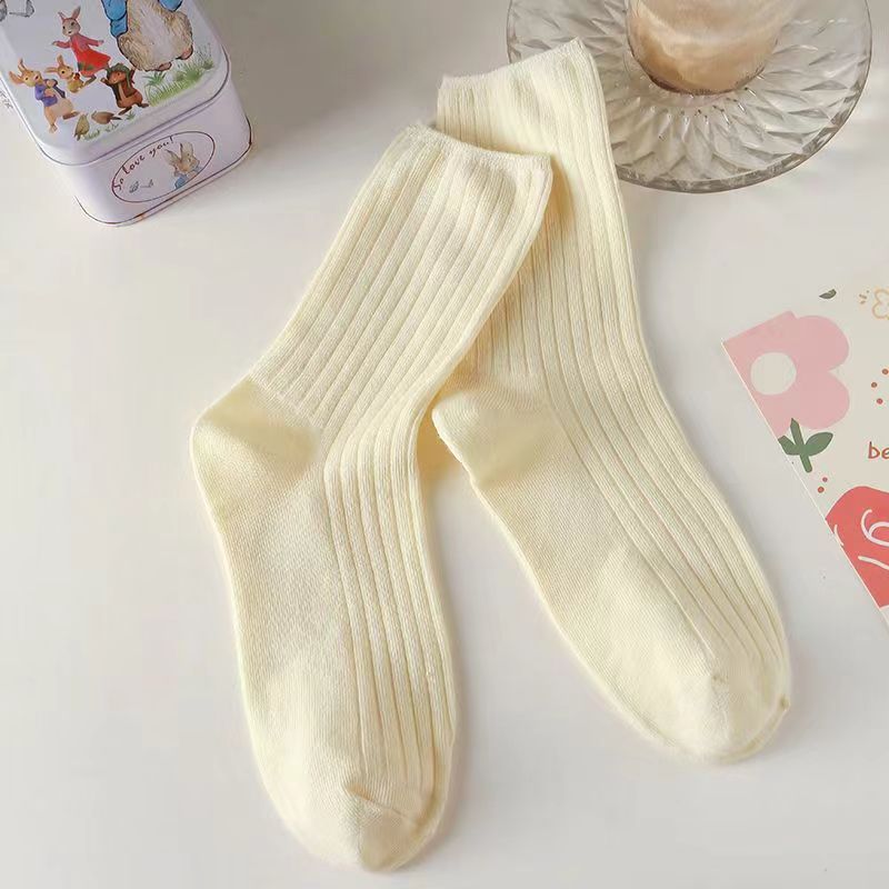 秋冬季节女款中高筒袜子无骨粗针堆堆袜高颜值纯色韩版ins潮长袜