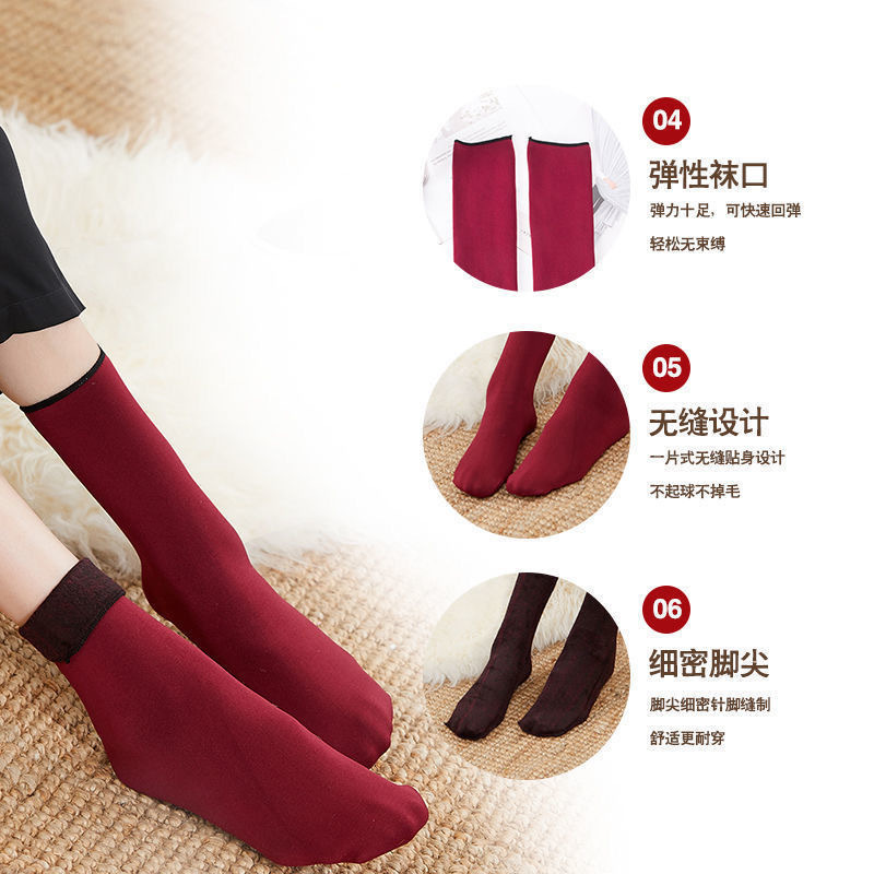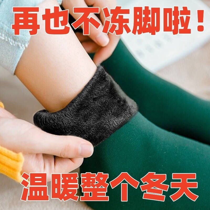 加绒袜子女秋冬季加厚雪地袜防冻中筒保暖耐磨抗寒地板袜发热袜子