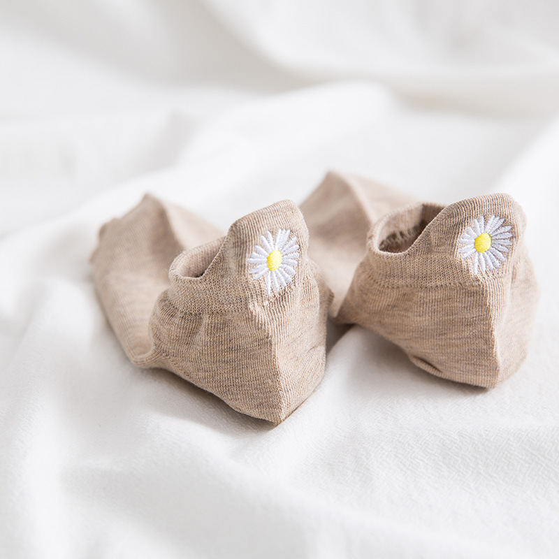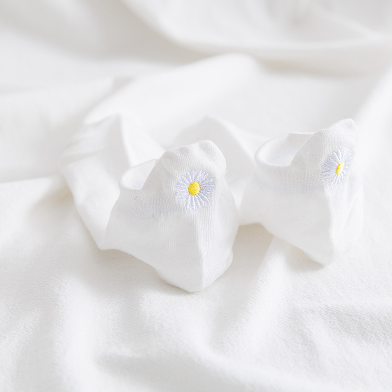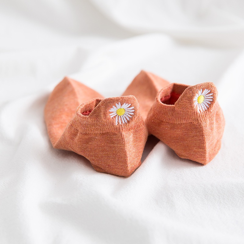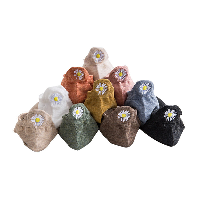 春夏薄款短袜女 后跟刺绣小雏菊女士船袜 潮袜短款棉质浅口隐形袜