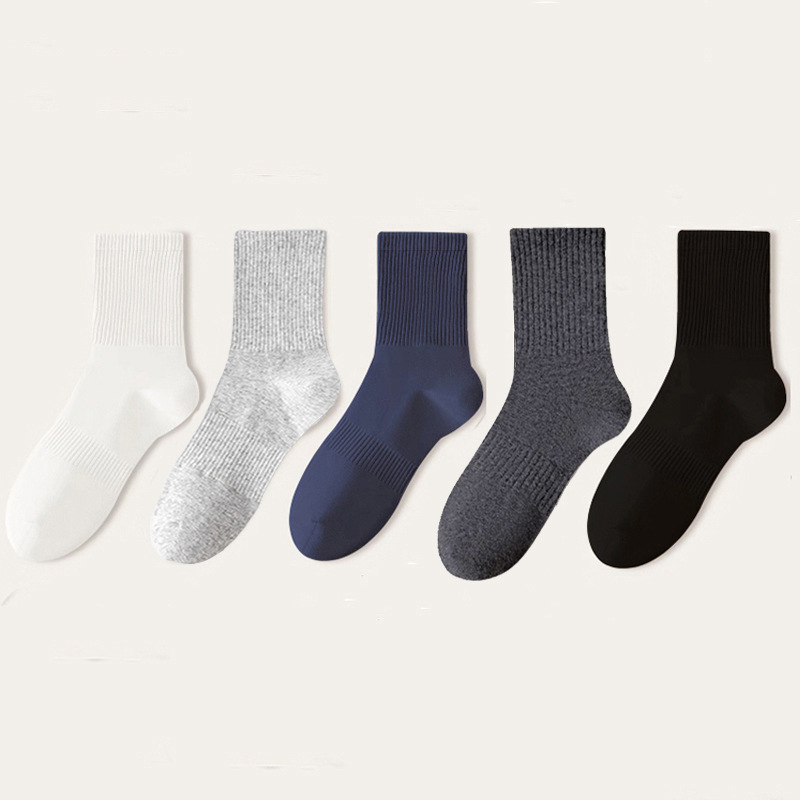 袜子男士中筒袜纯色吸汗防臭春秋季男款休闲运动袜黑白色男生长袜