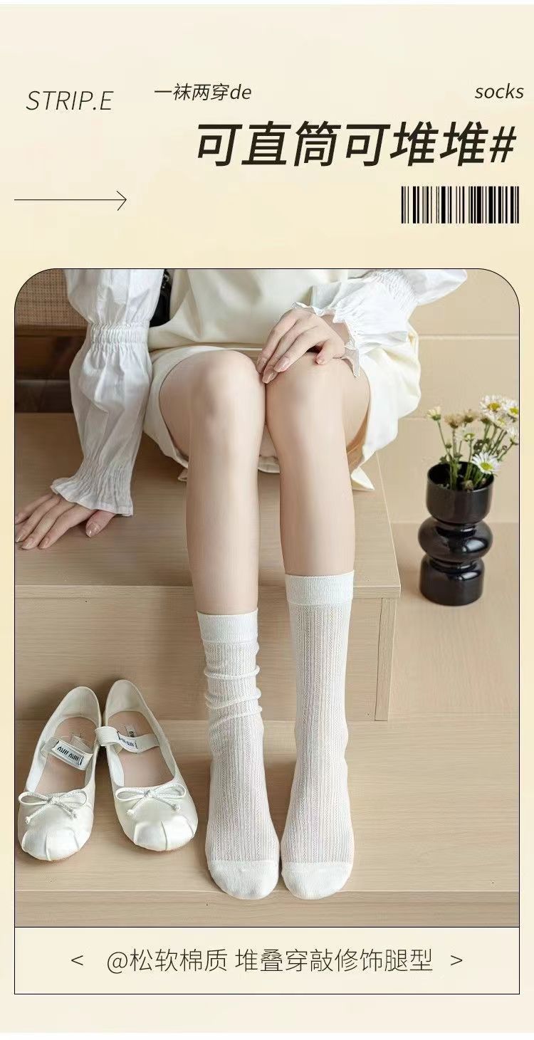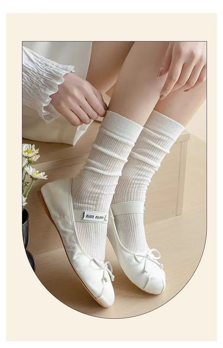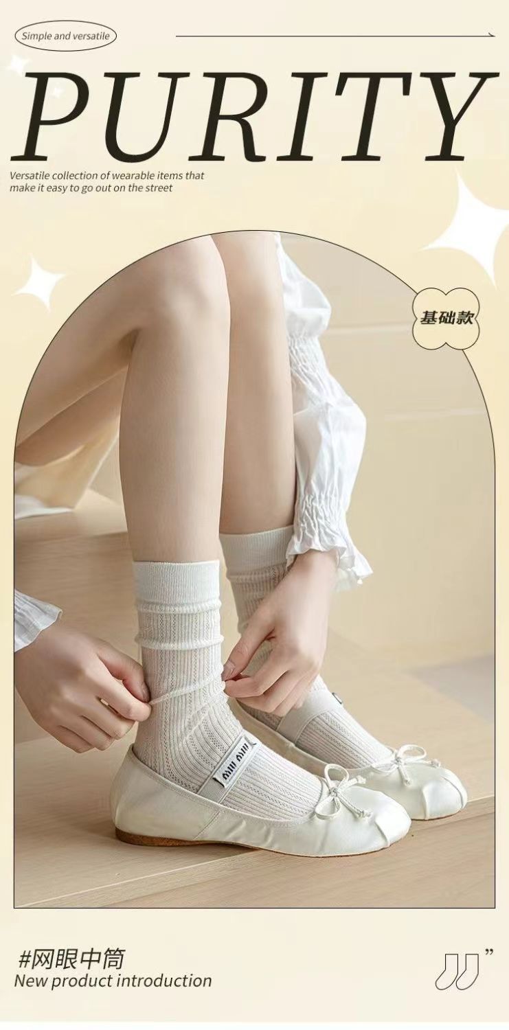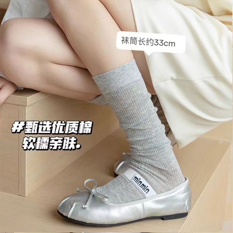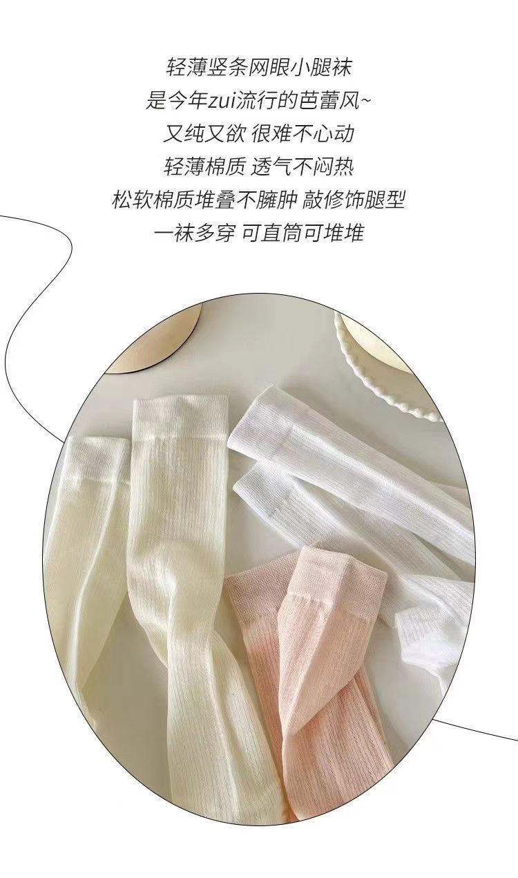 miu芭蕾镂空小腿小腿袜夏季薄款春秋款长筒堆堆袜长网纱灰色袜子