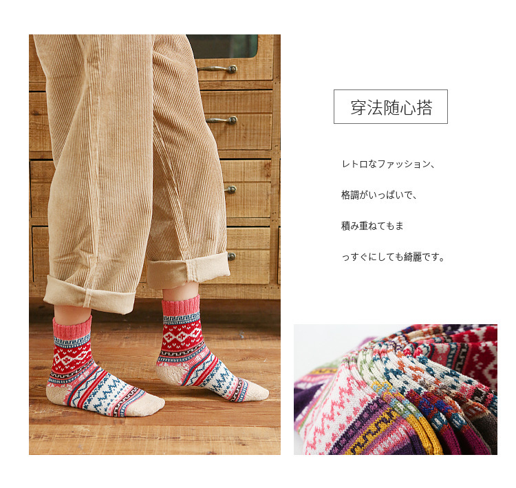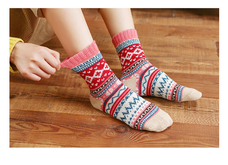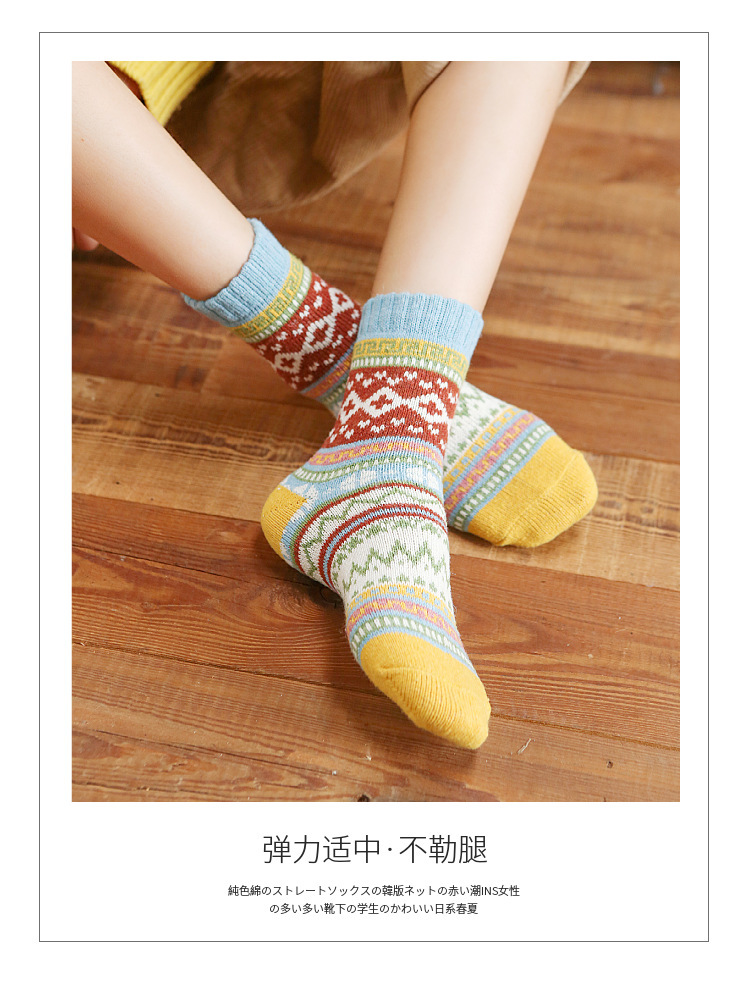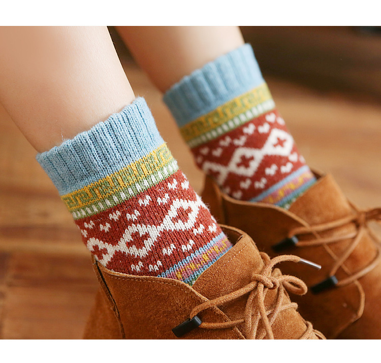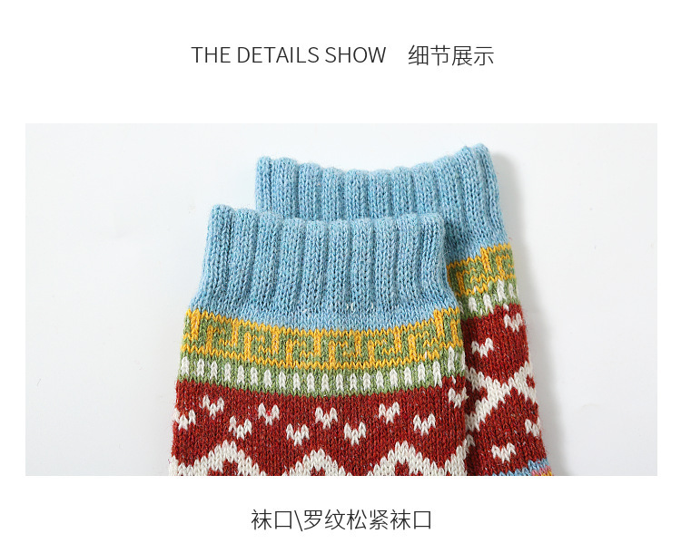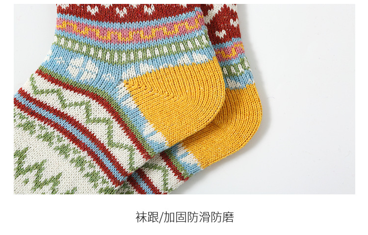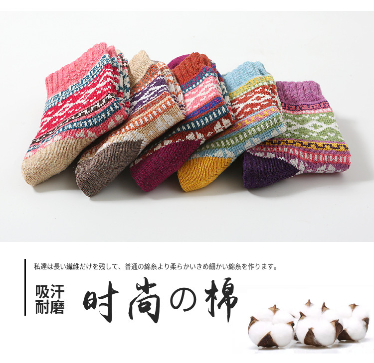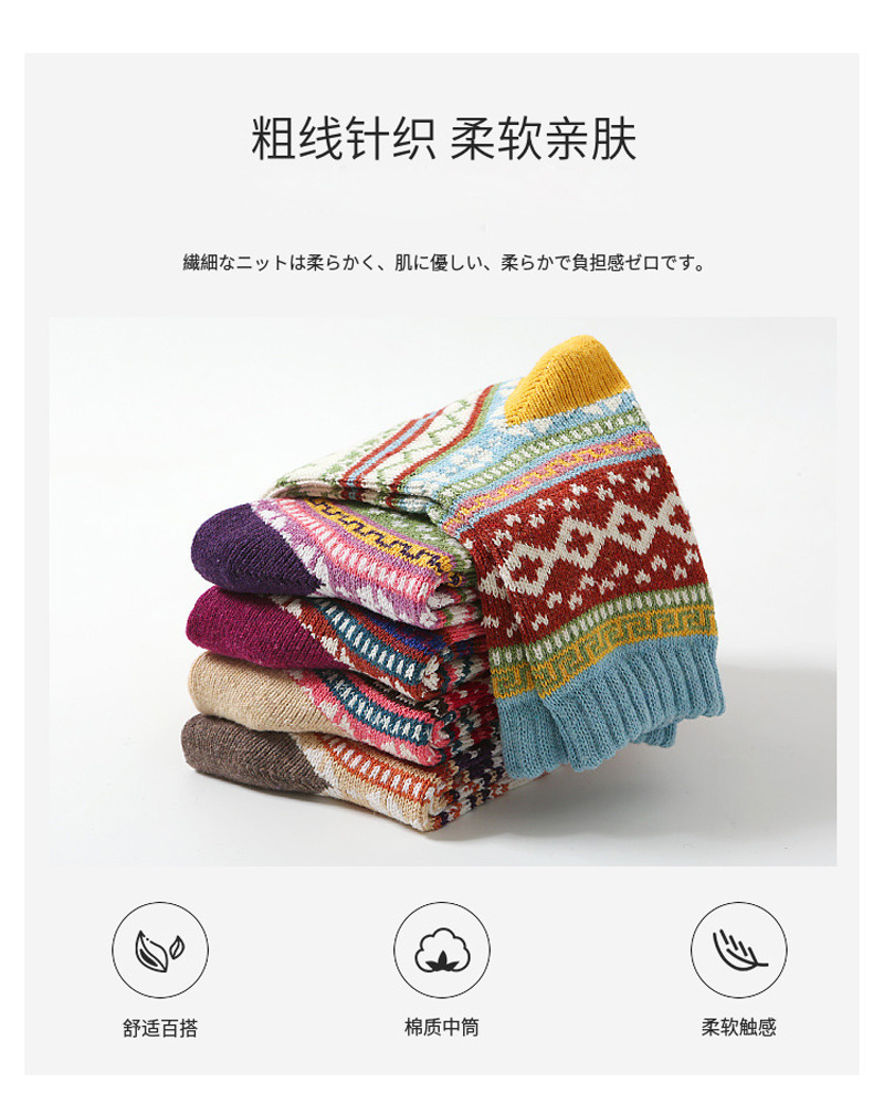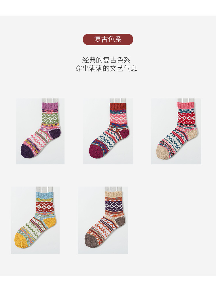 秋冬加厚保暖女袜亚马逊跨境外贸中筒袜民族风复古女士粗线袜子