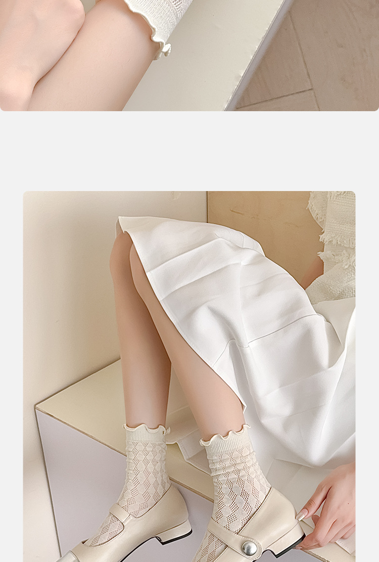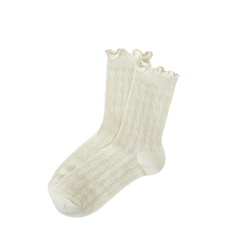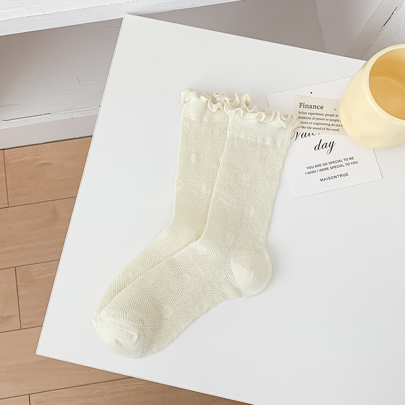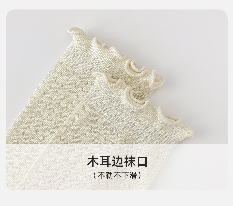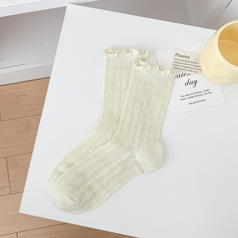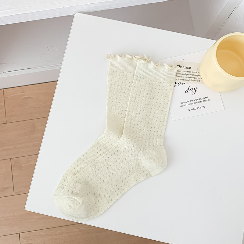 木耳边袜子女春夏季薄款镂空中筒袜透气网眼堆堆袜ins潮白色百搭