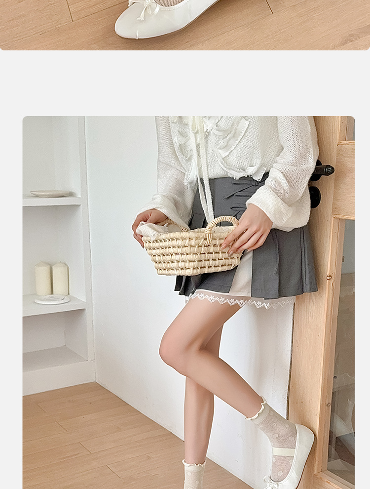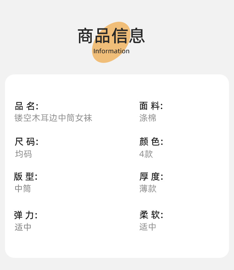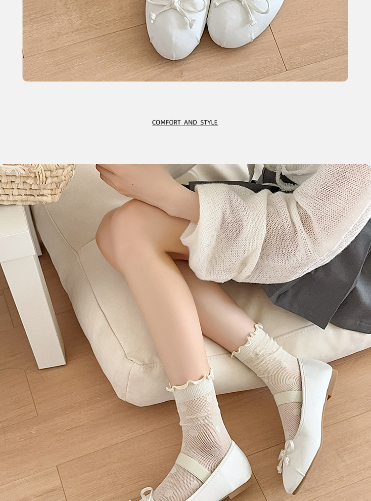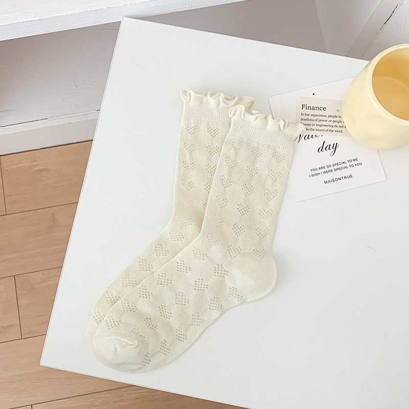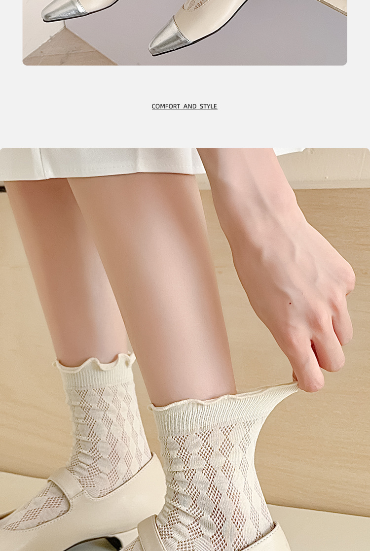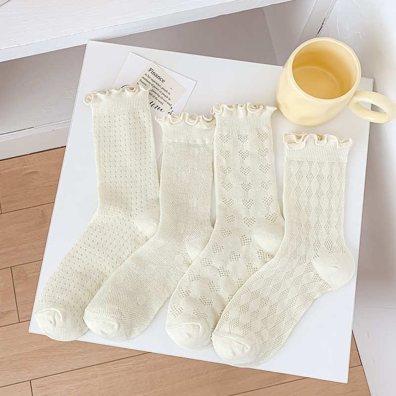 木耳边袜子女春夏季薄款镂空中筒袜透气网眼堆堆袜ins潮白色百搭