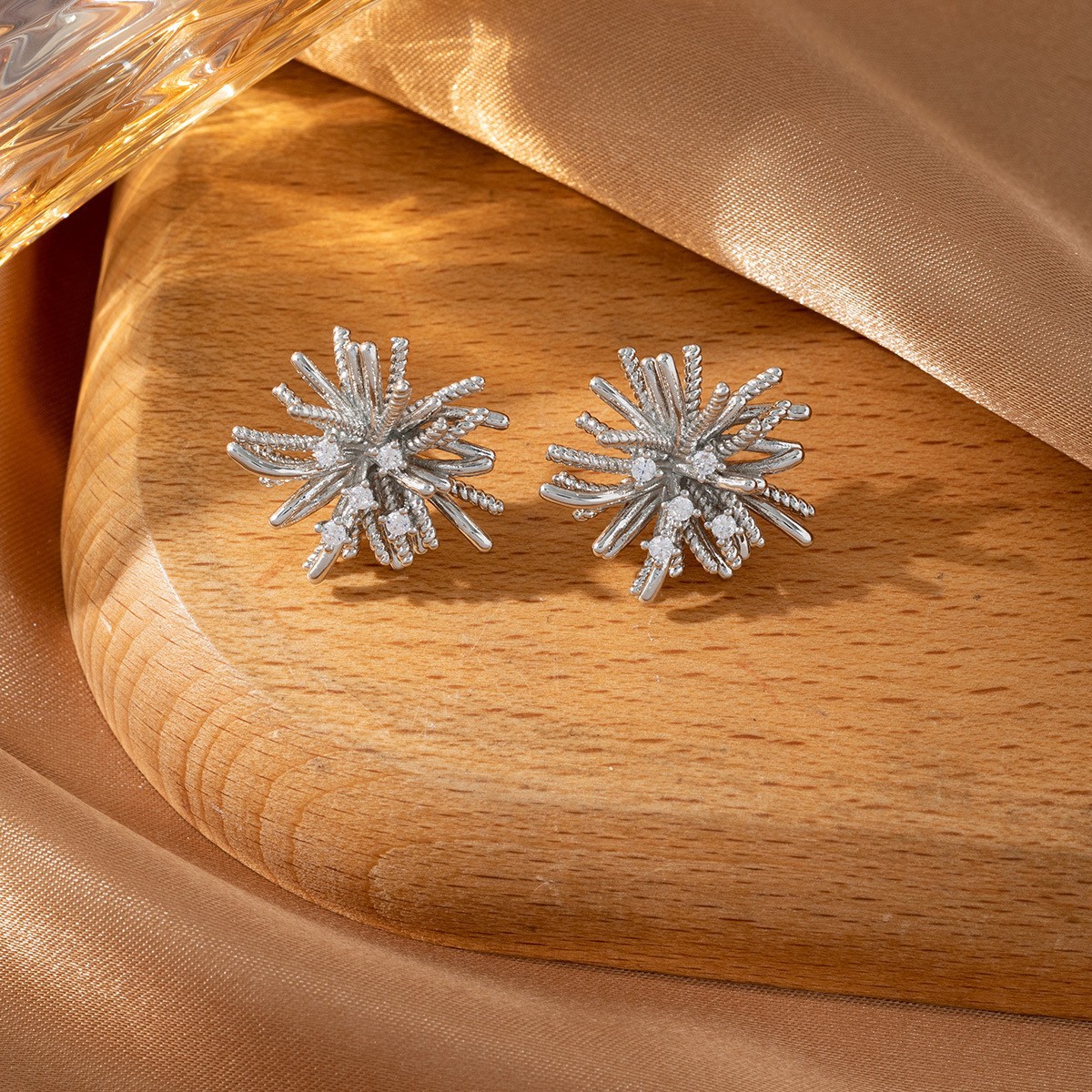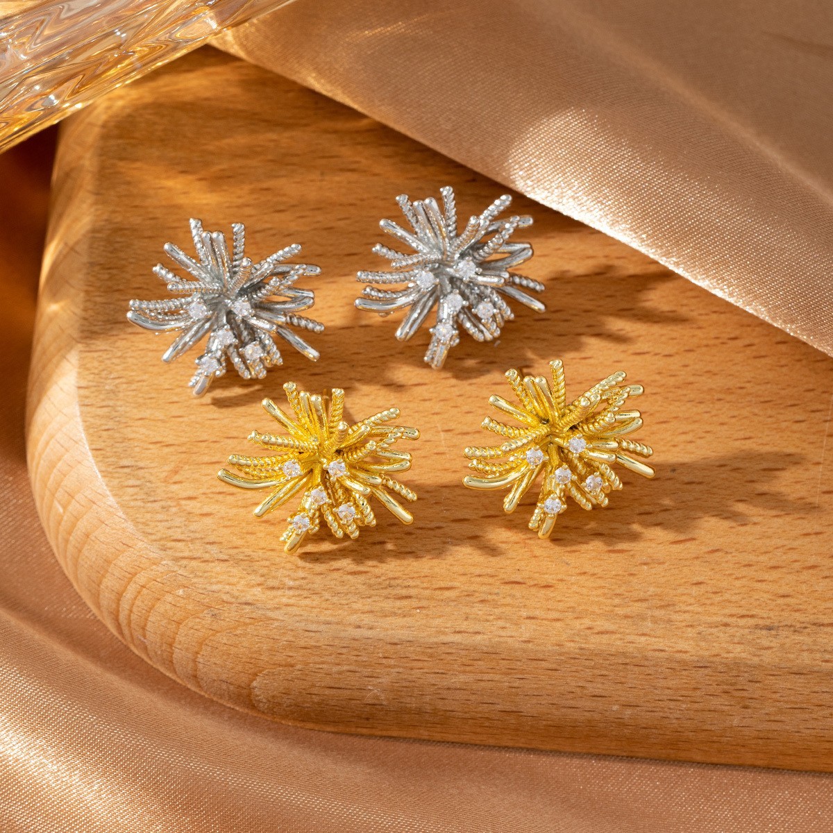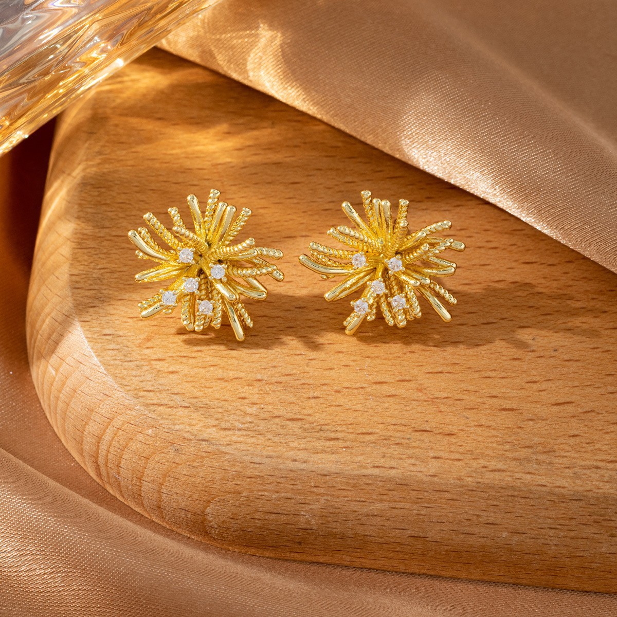 新款金银镶钻蒲公英耳环轻奢高级感时尚百搭小众设计18k金耳钉女