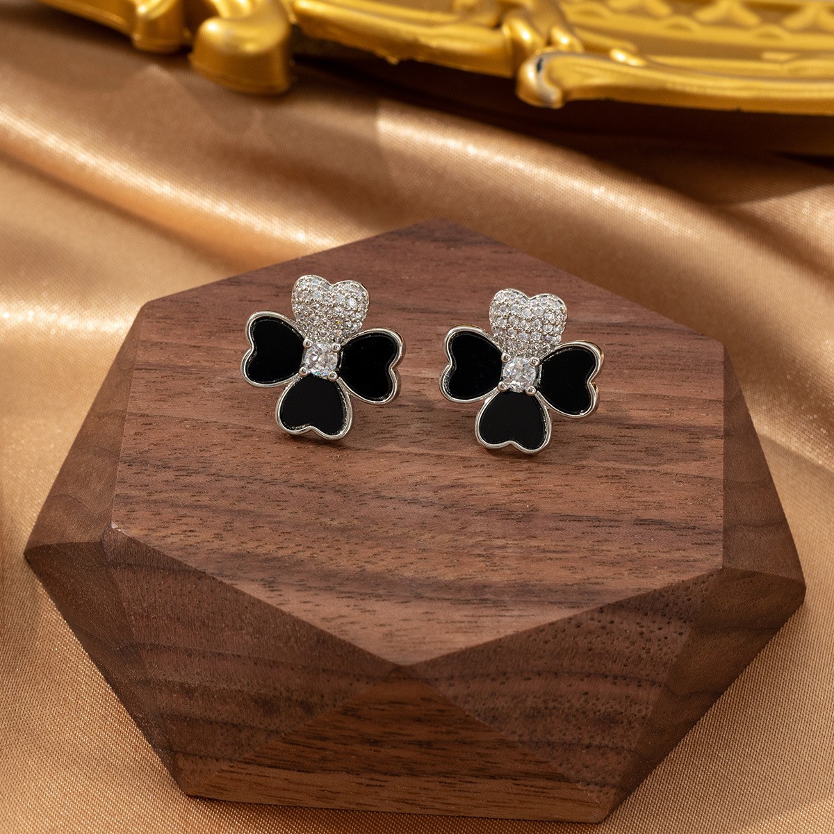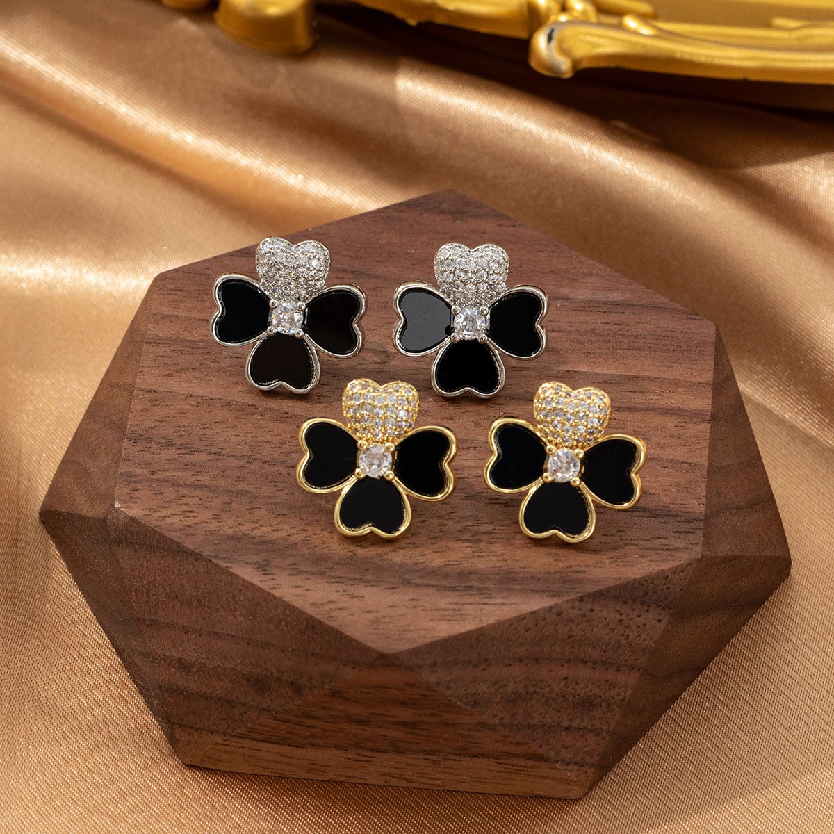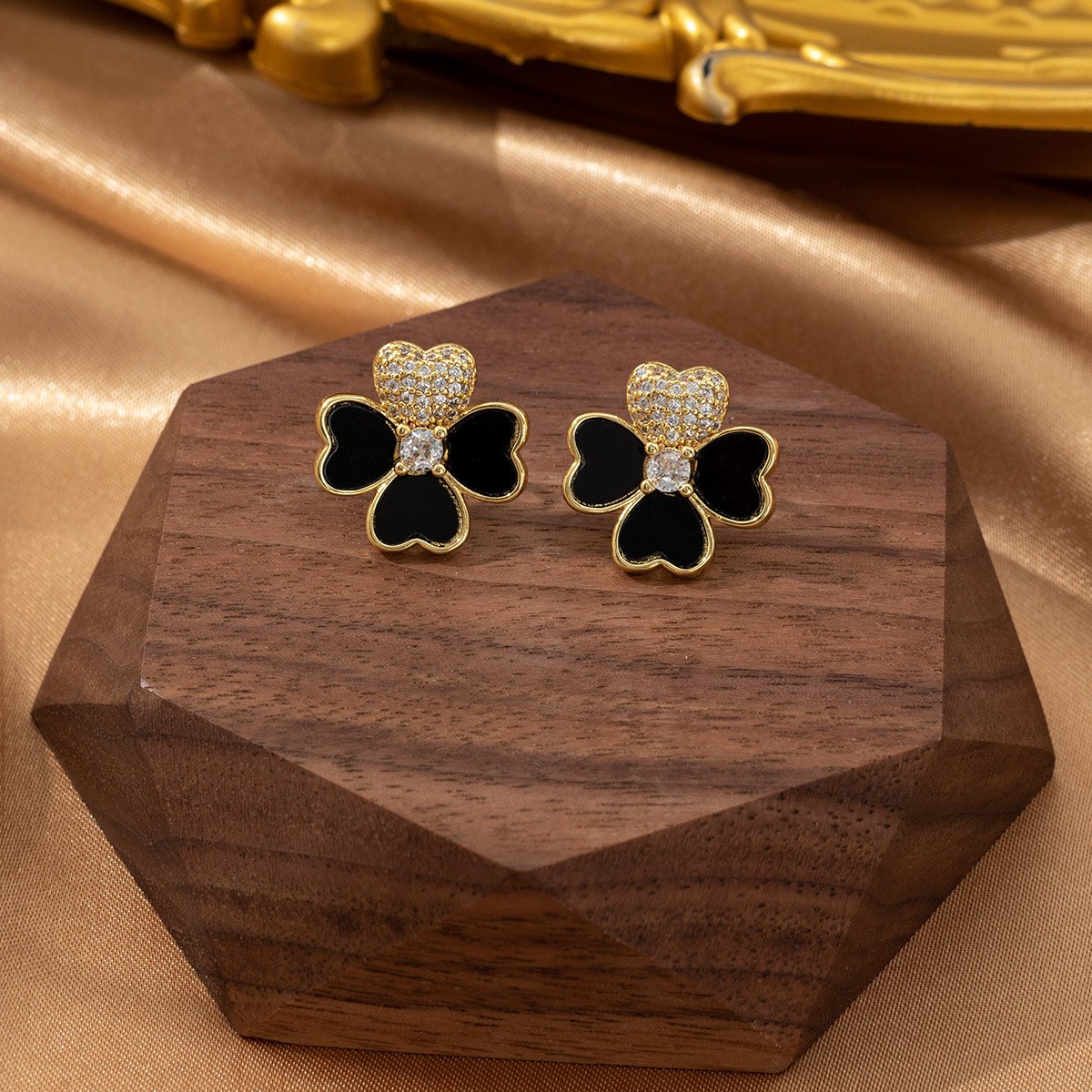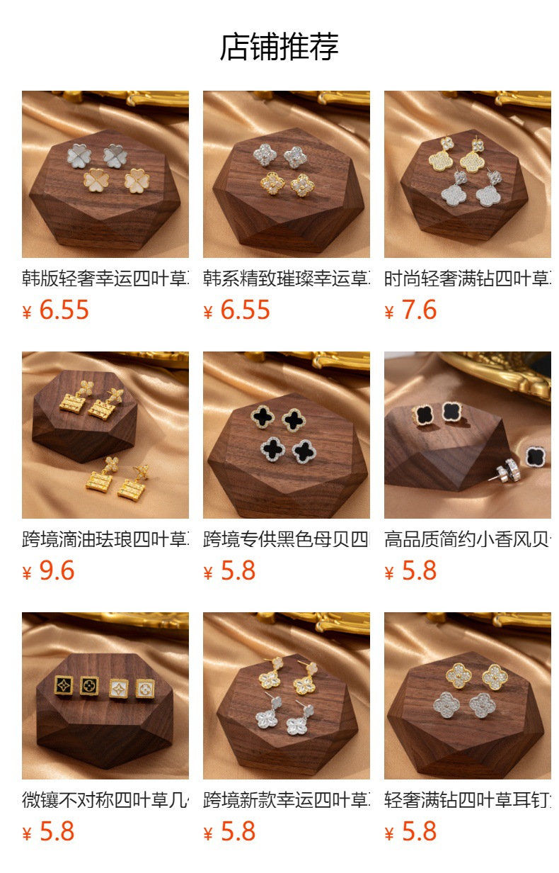 跨境时尚气质幸运四叶草耳环镶钻轻奢高级感时尚小众设计耳钉耳饰