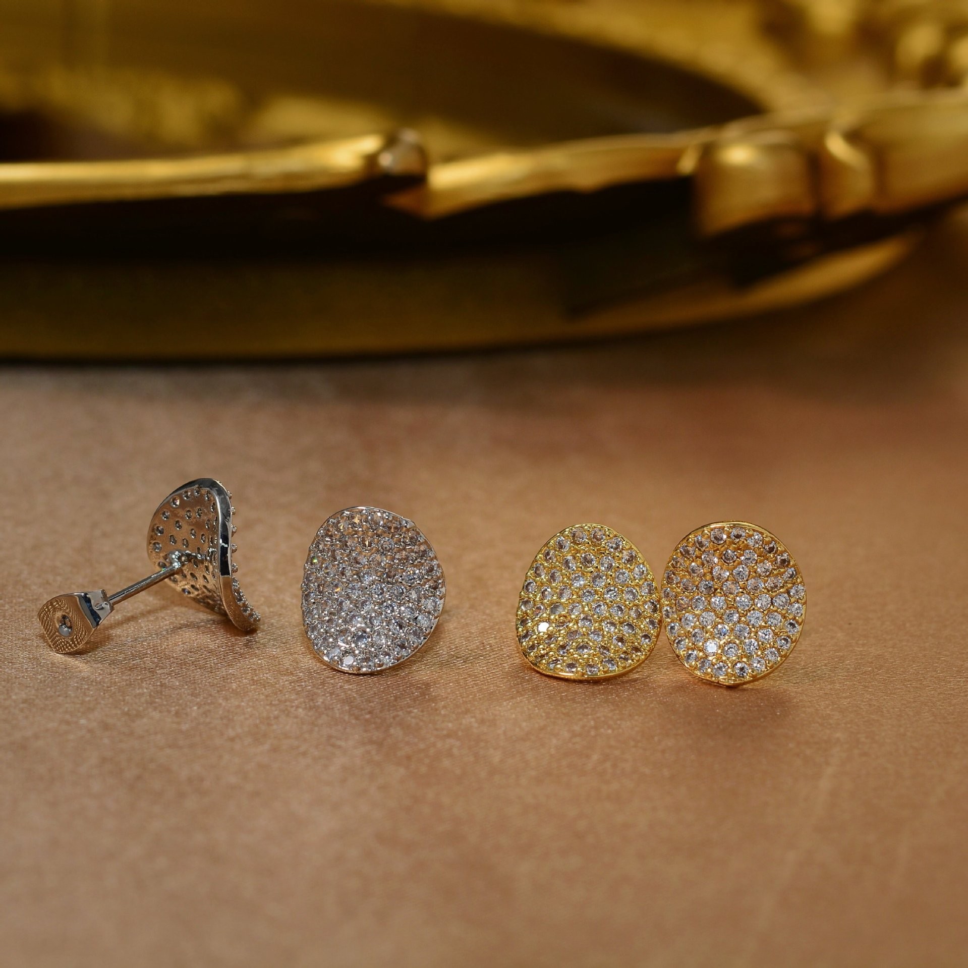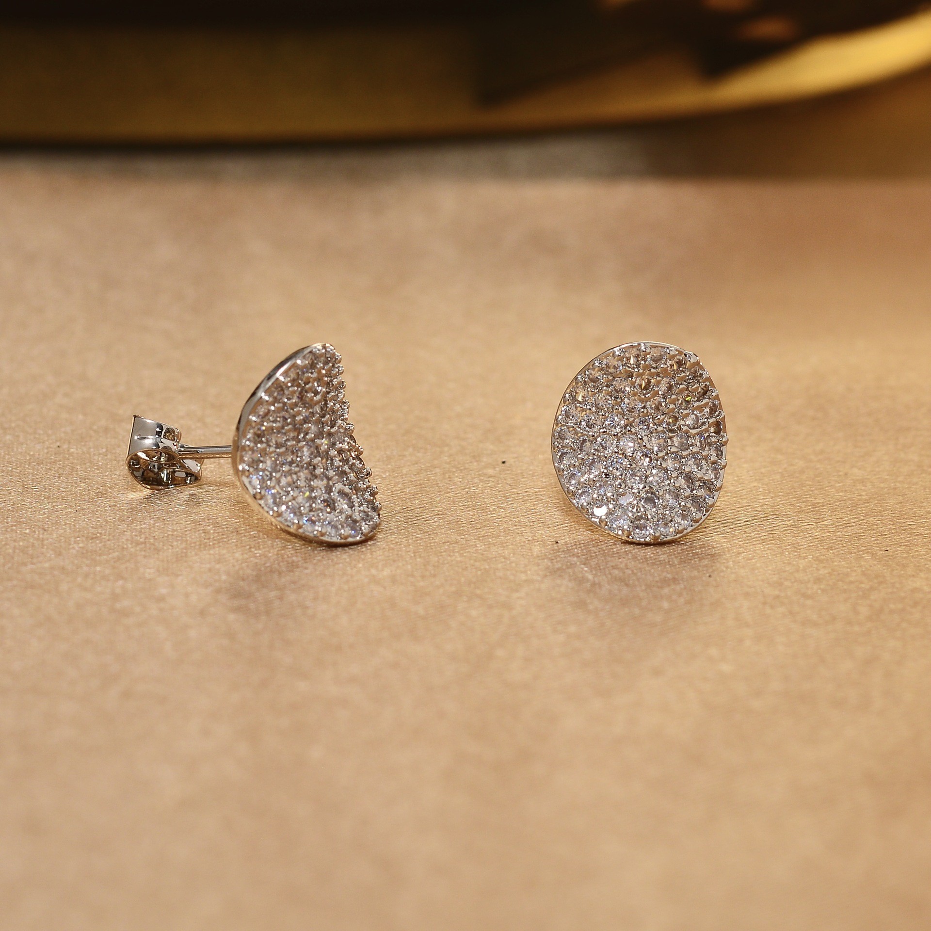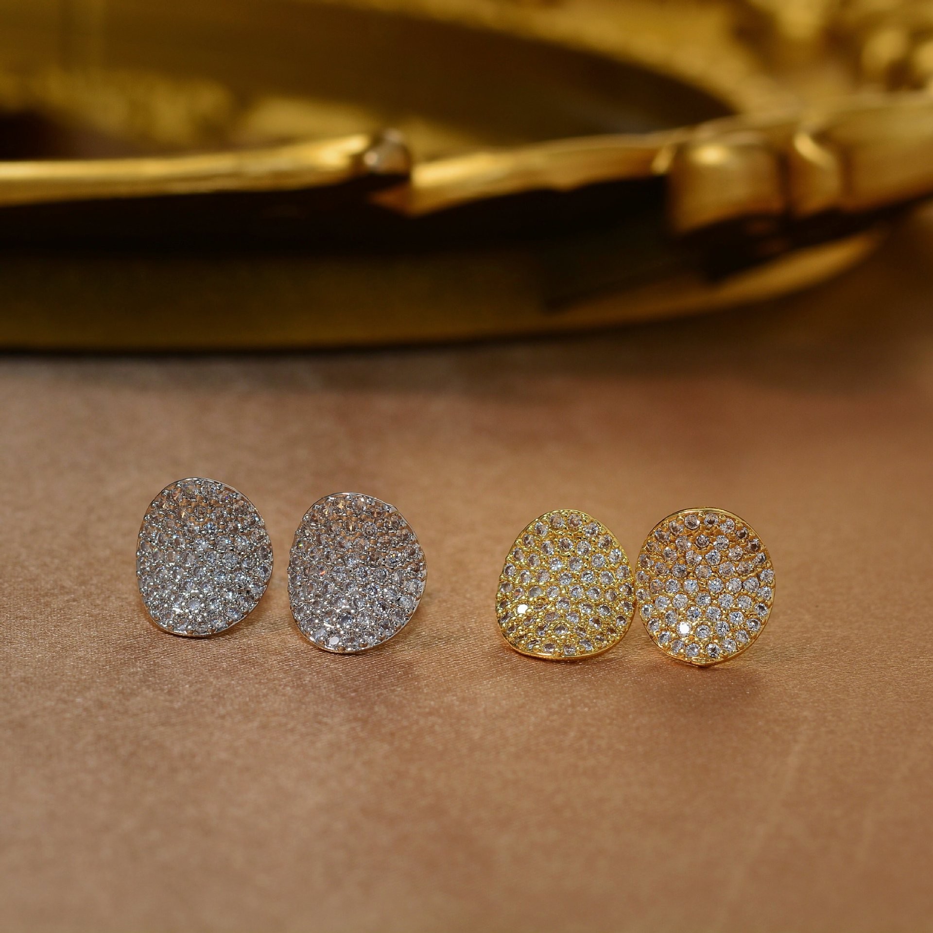 跨境欧美水滴椭圆满钻耳钉个性时尚气质轻奢金属风高级感耳环耳饰