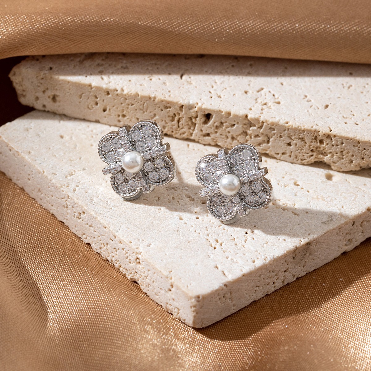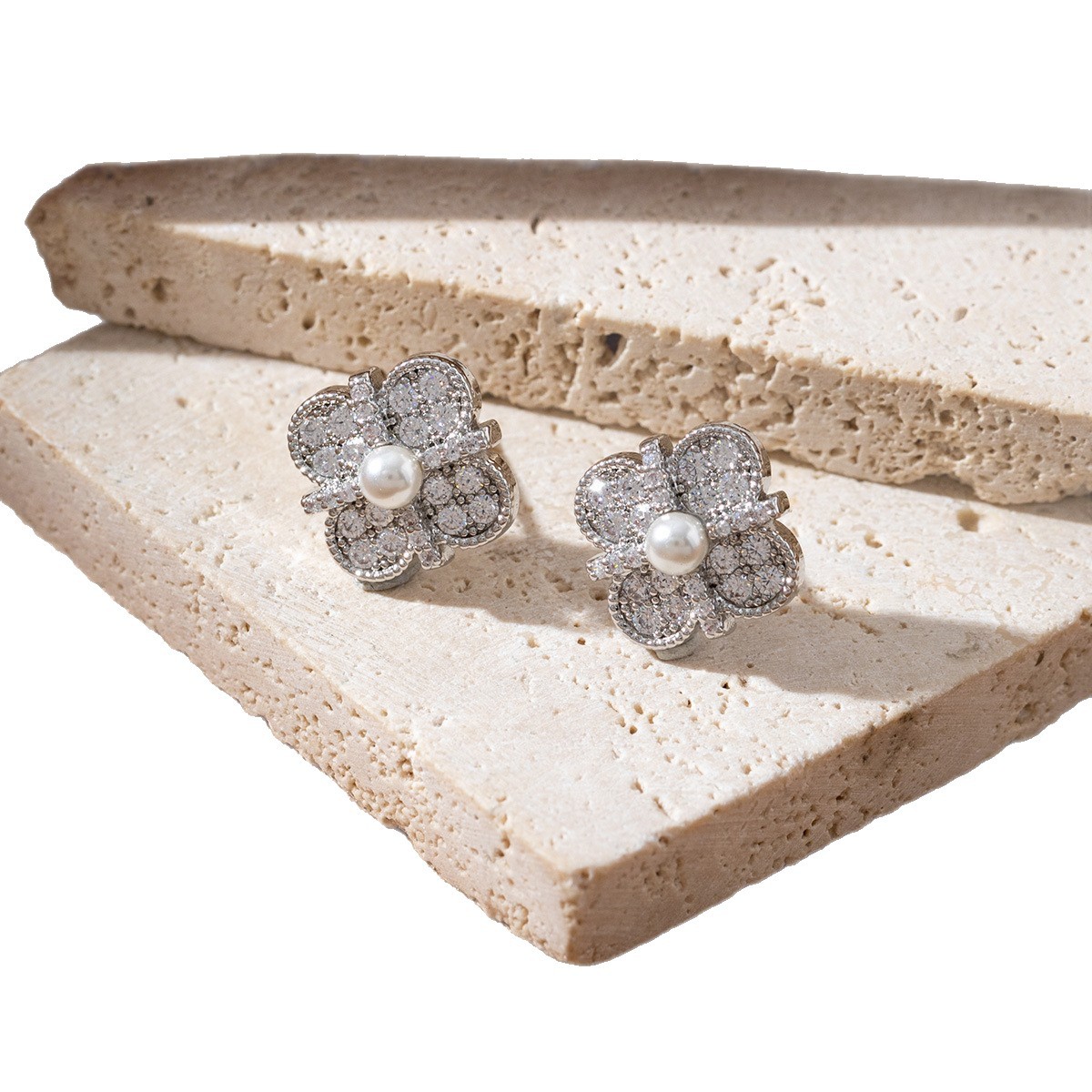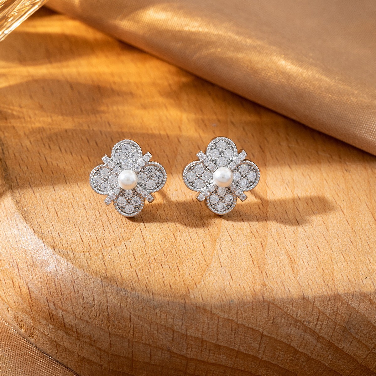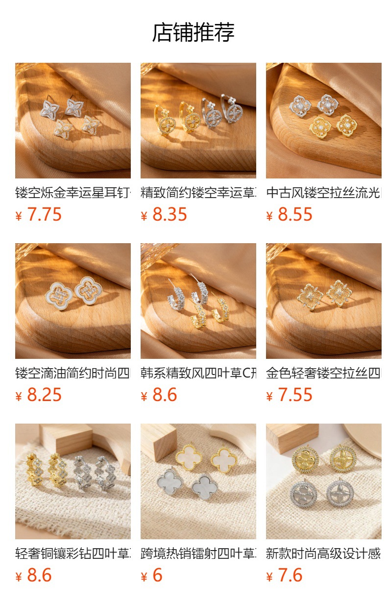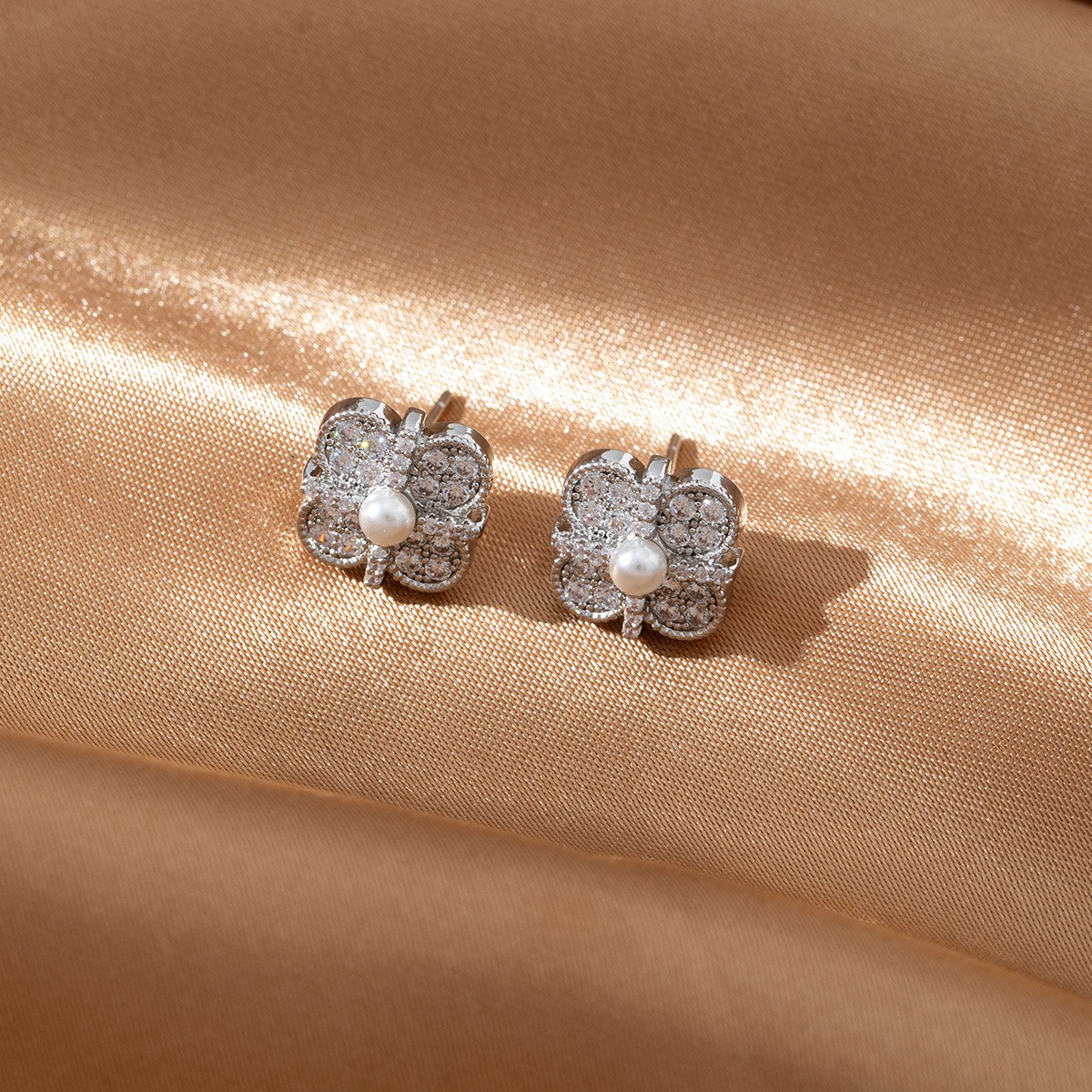 轻奢精致镶钻十字绑带幸运四叶草耳环高级感气质小众设计耳钉耳饰
