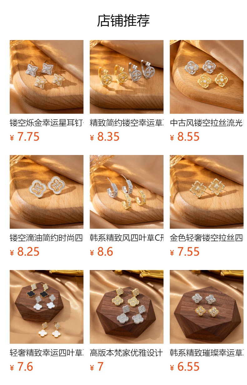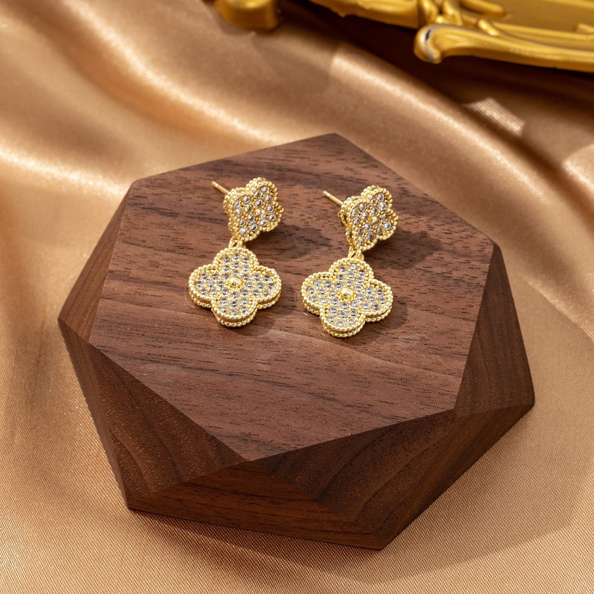 18k镀镶钻幸运四叶草耳环轻奢高级感气质时尚爆闪高版本耳钉耳饰