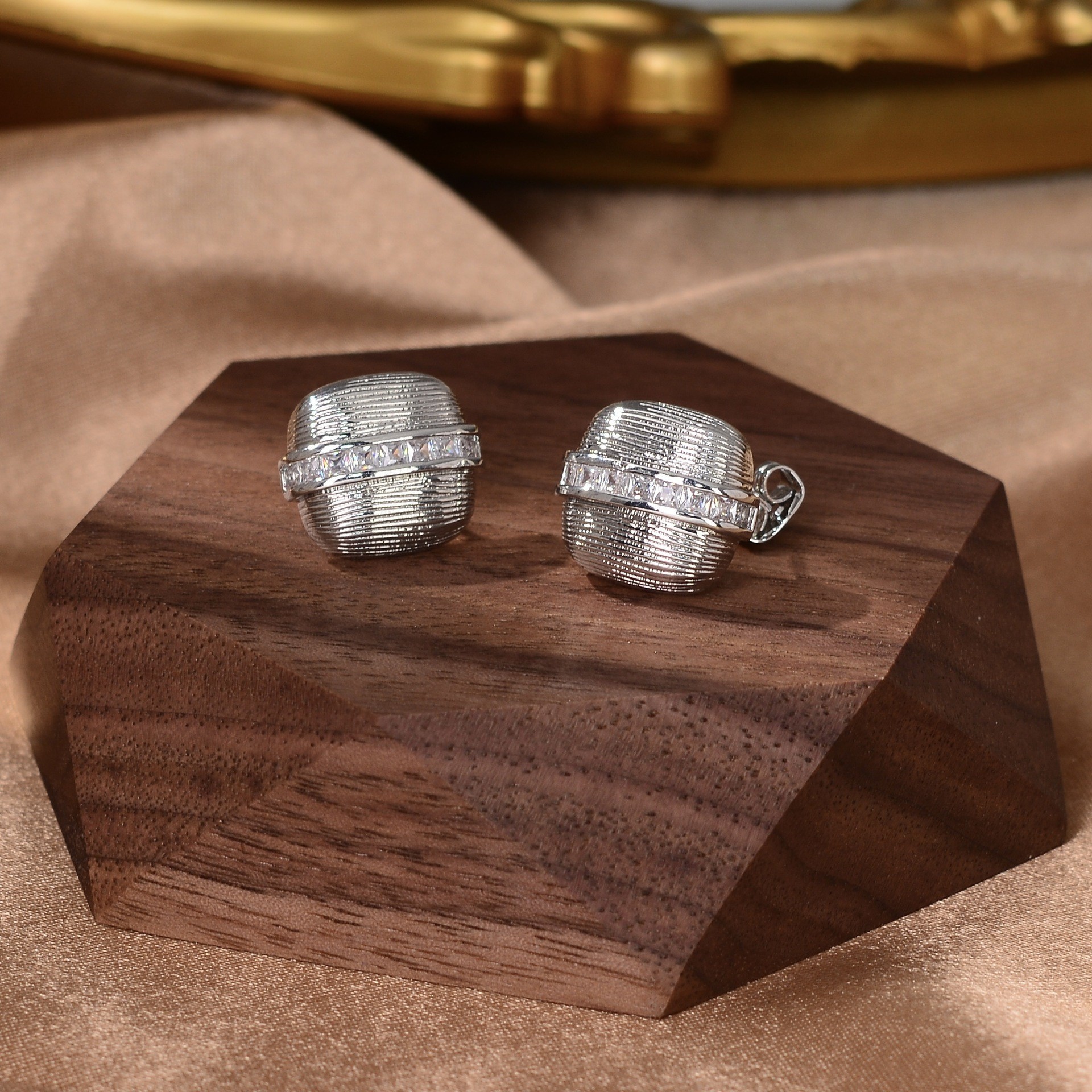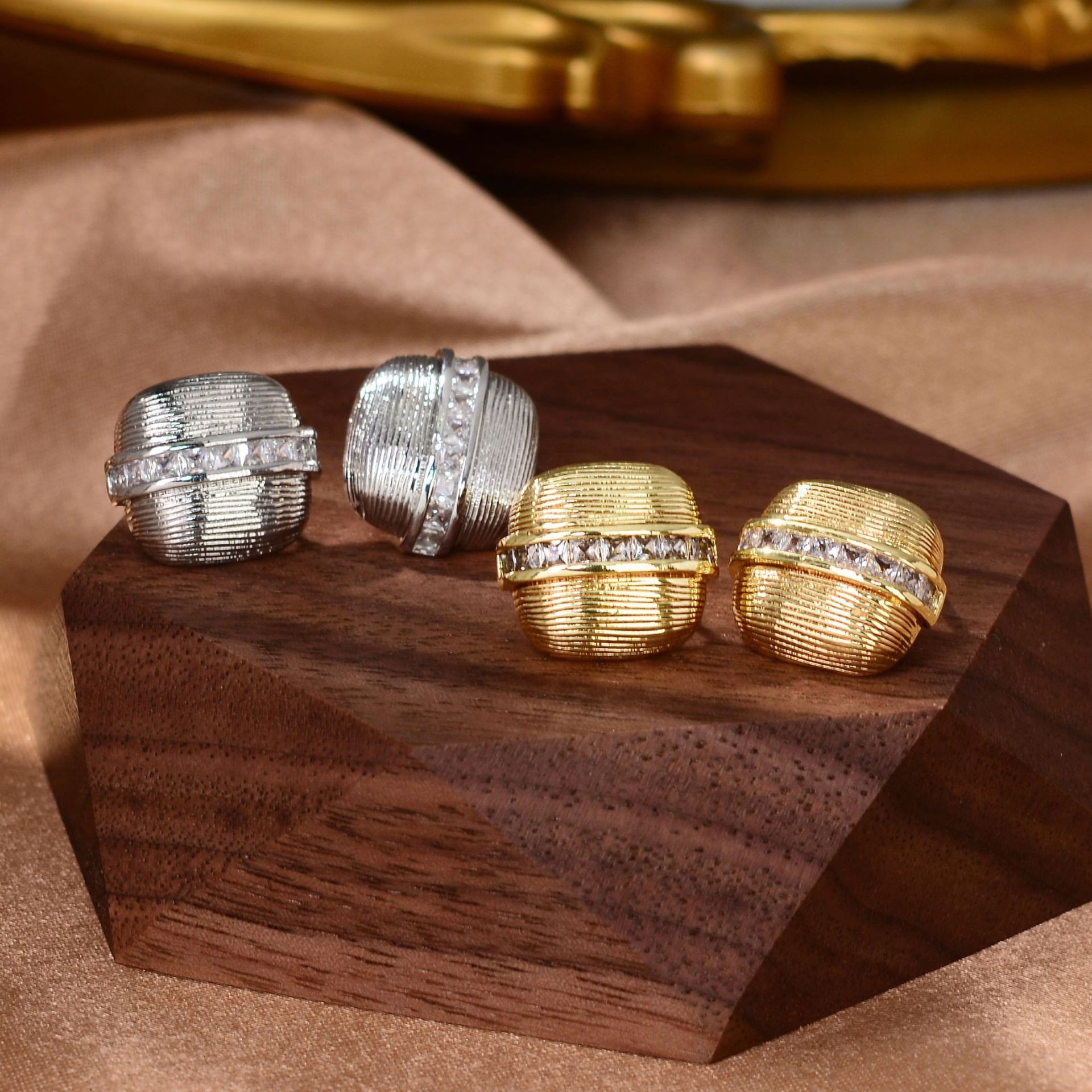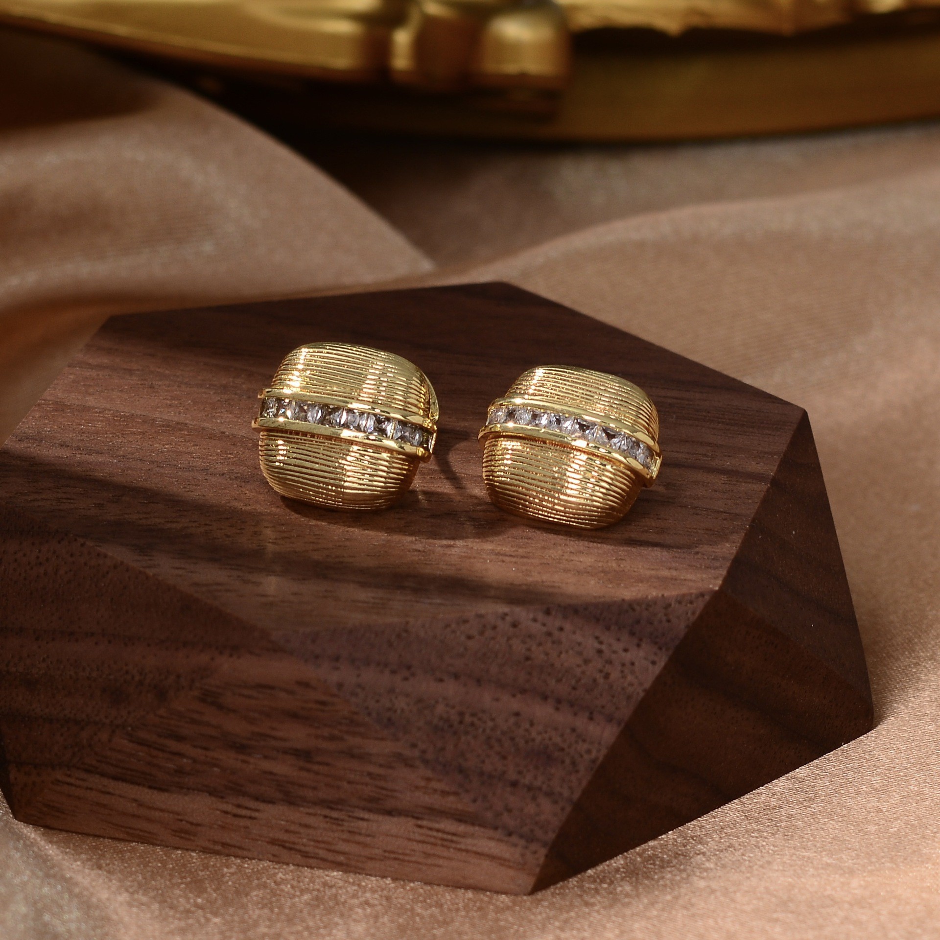法式复古肌理感方形耳钉轻奢拉丝镶钻中古风时尚高级感耳环耳饰女