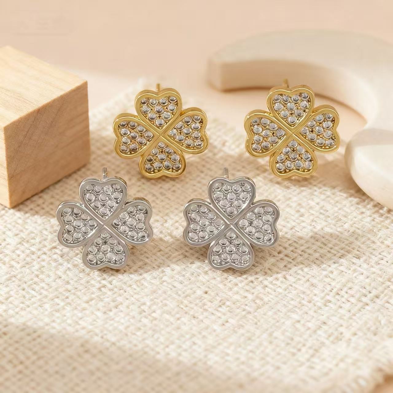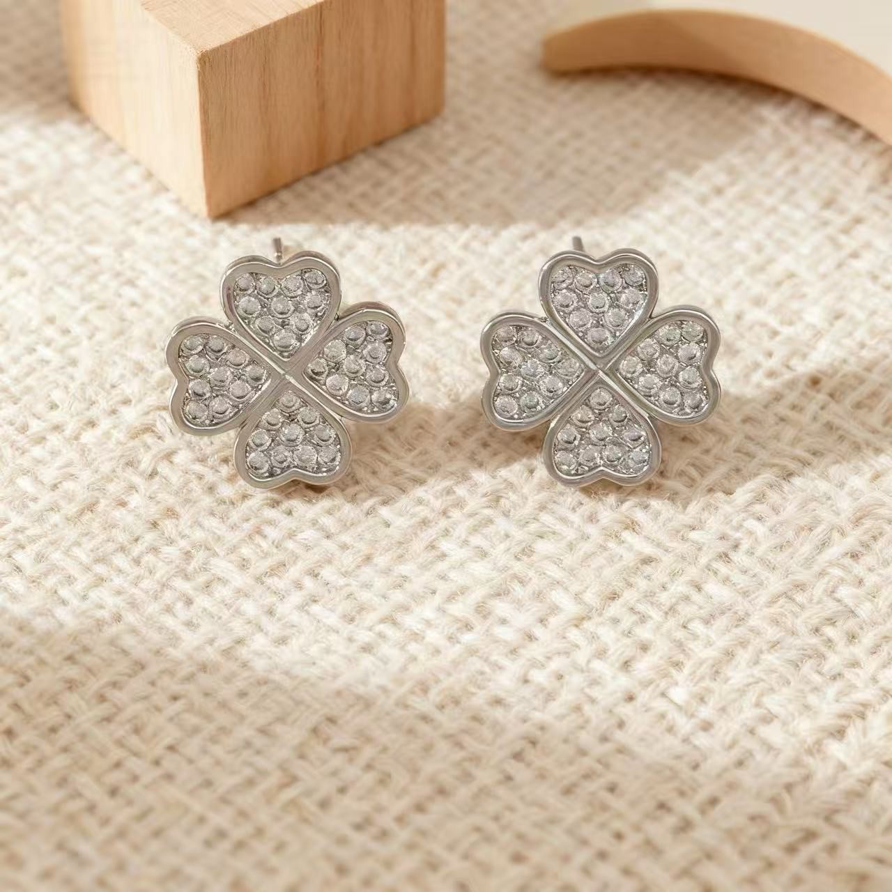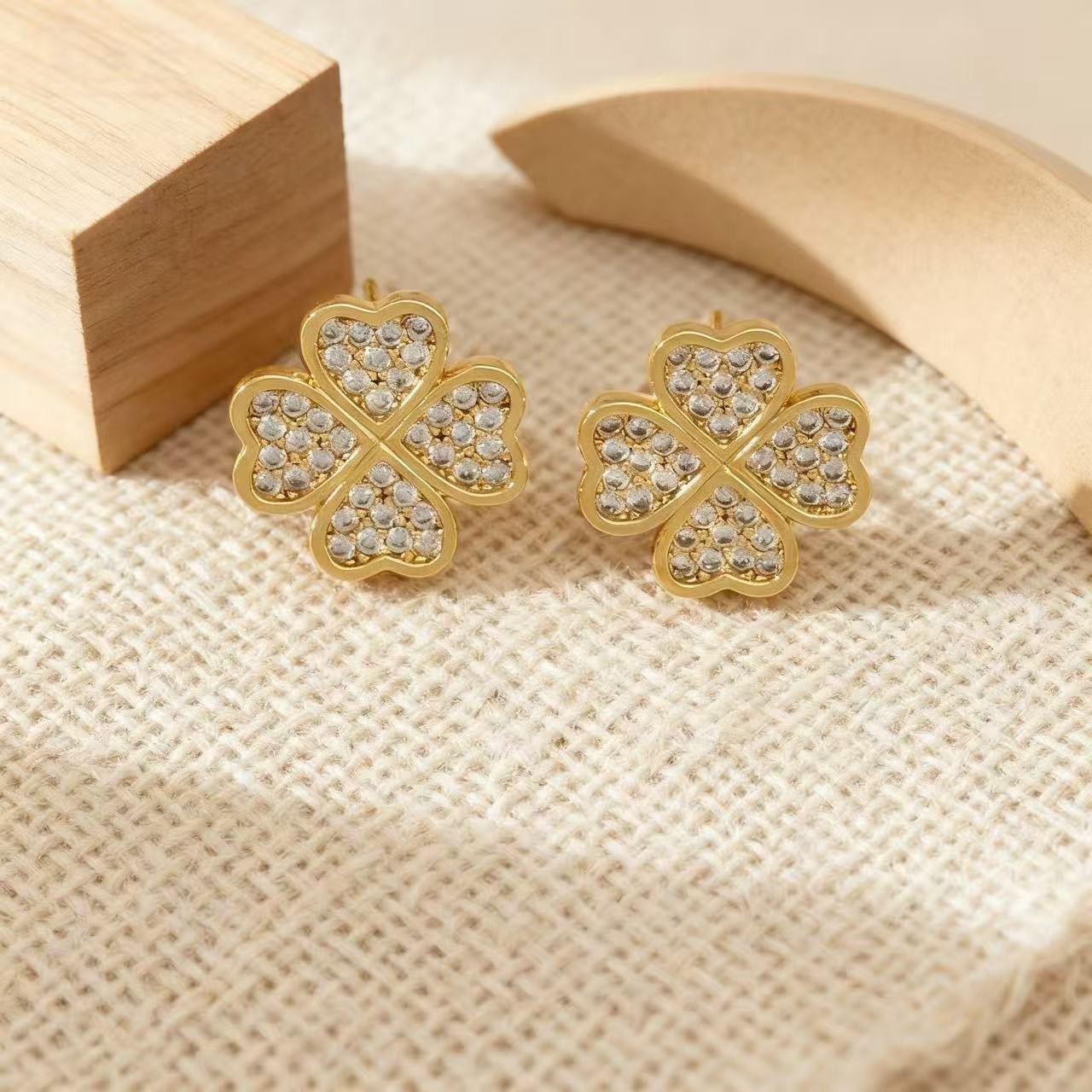 精致镶钻四叶草耳钉韩版小众满钻幸运草轻奢高级感时尚气质耳环女