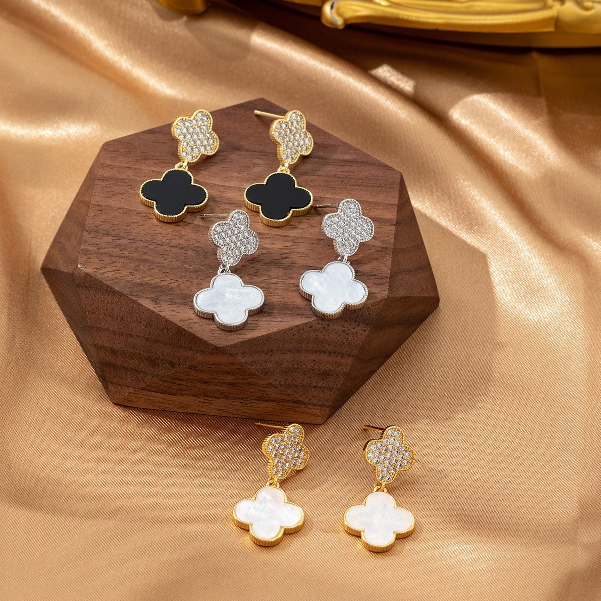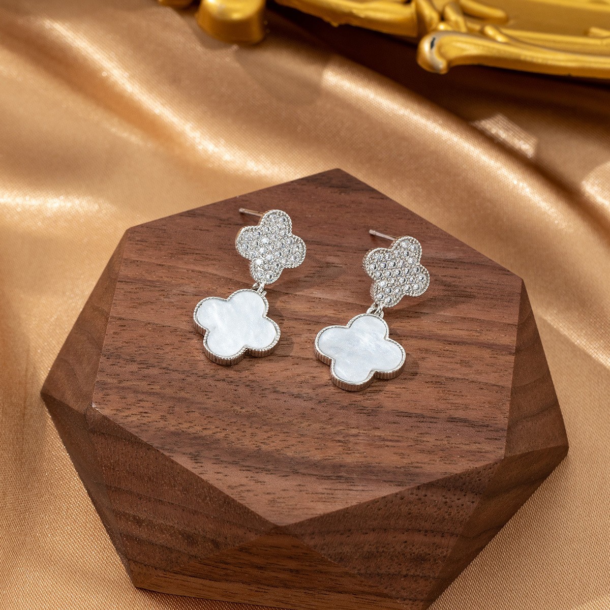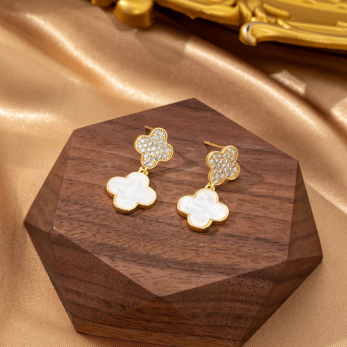 精致镶钻幸运四叶草贝母耳环轻奢高级感气质经典四叶花耳钉耳饰女