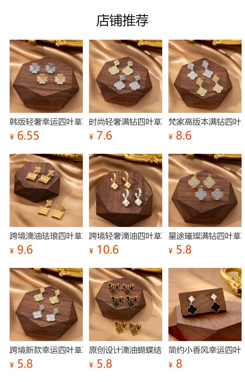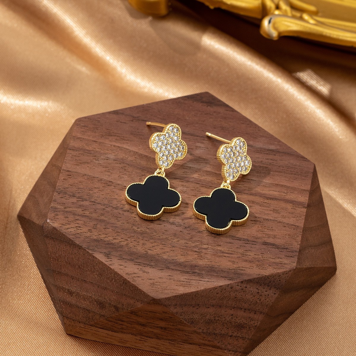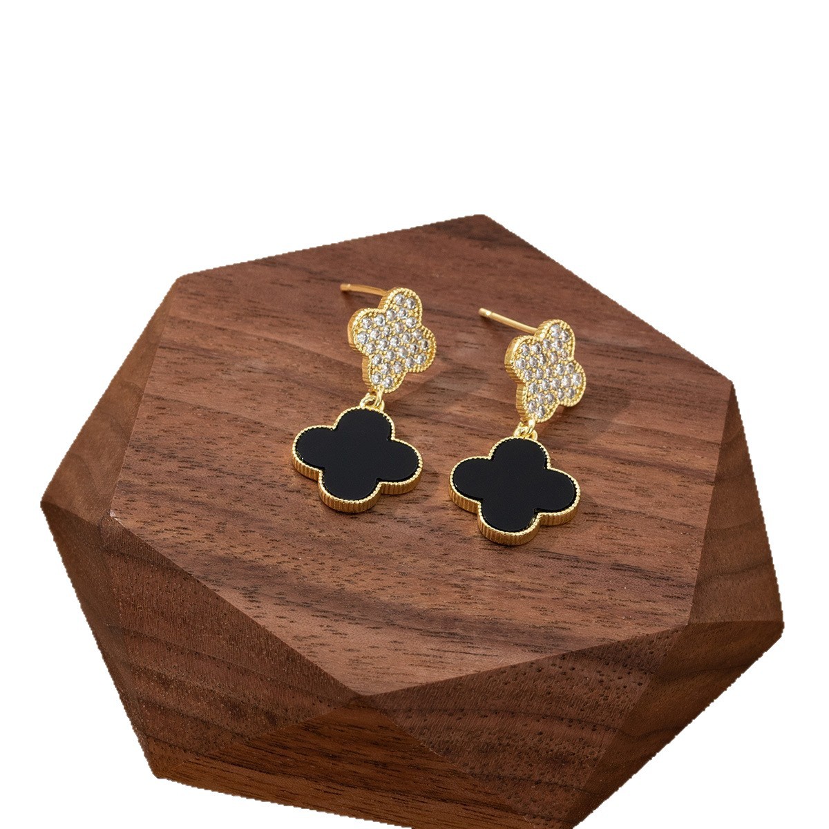 精致镶钻幸运四叶草贝母耳环轻奢高级感气质经典四叶花耳钉耳饰女