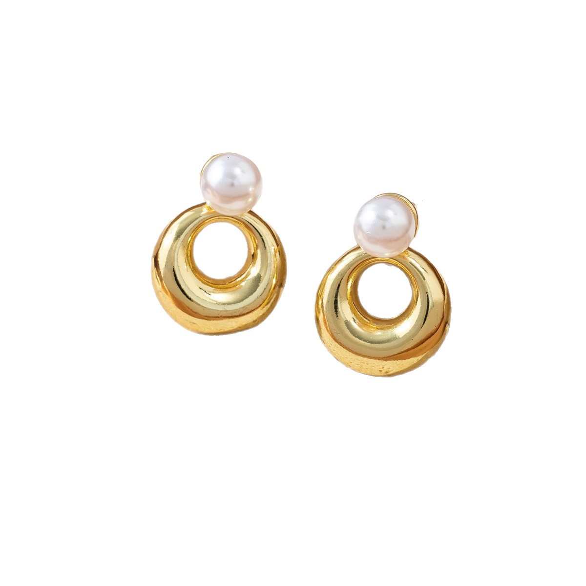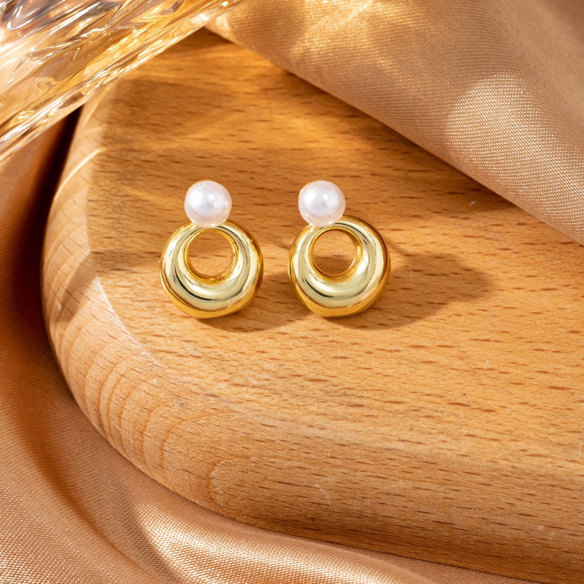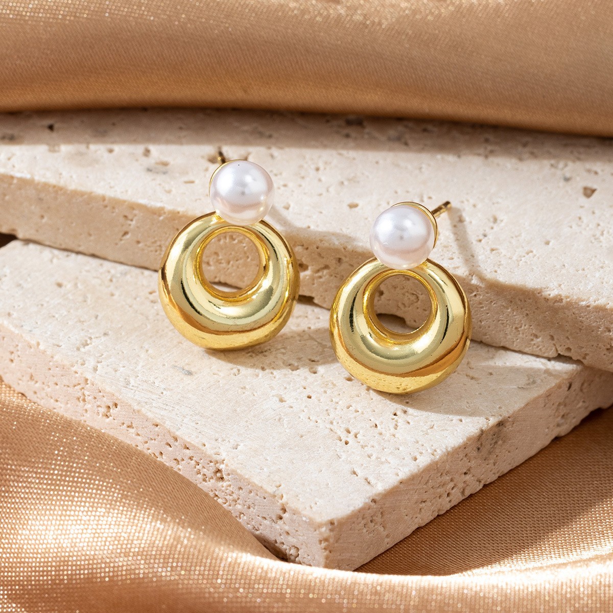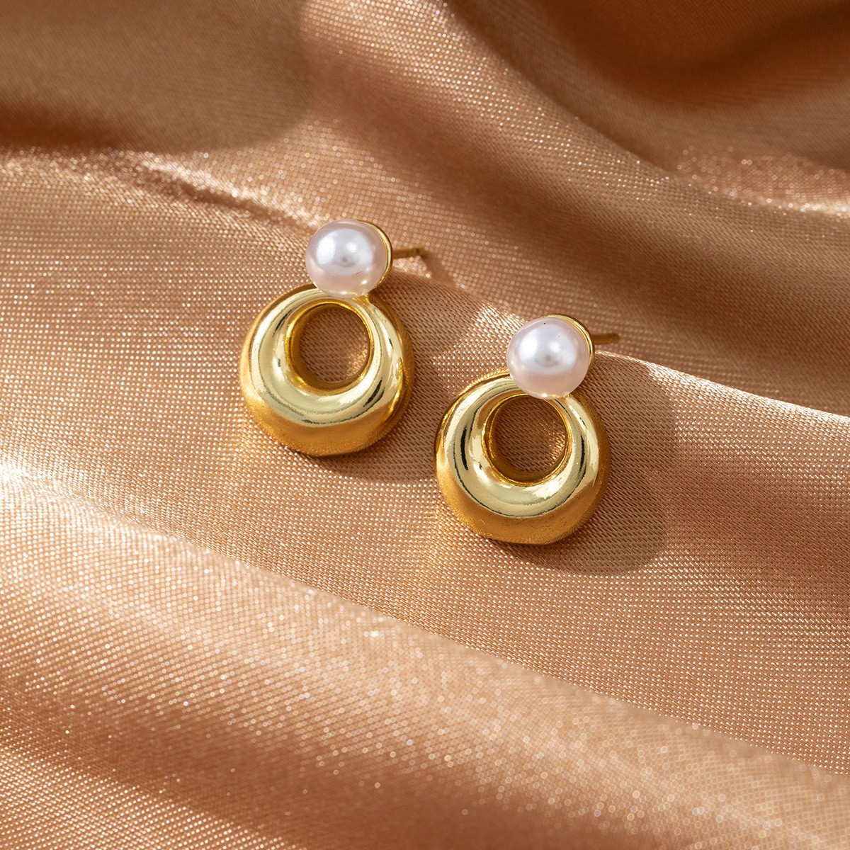 跨境欧美简约珍珠圆圈耳环轻奢复古高级感金属风时尚百搭耳钉耳饰