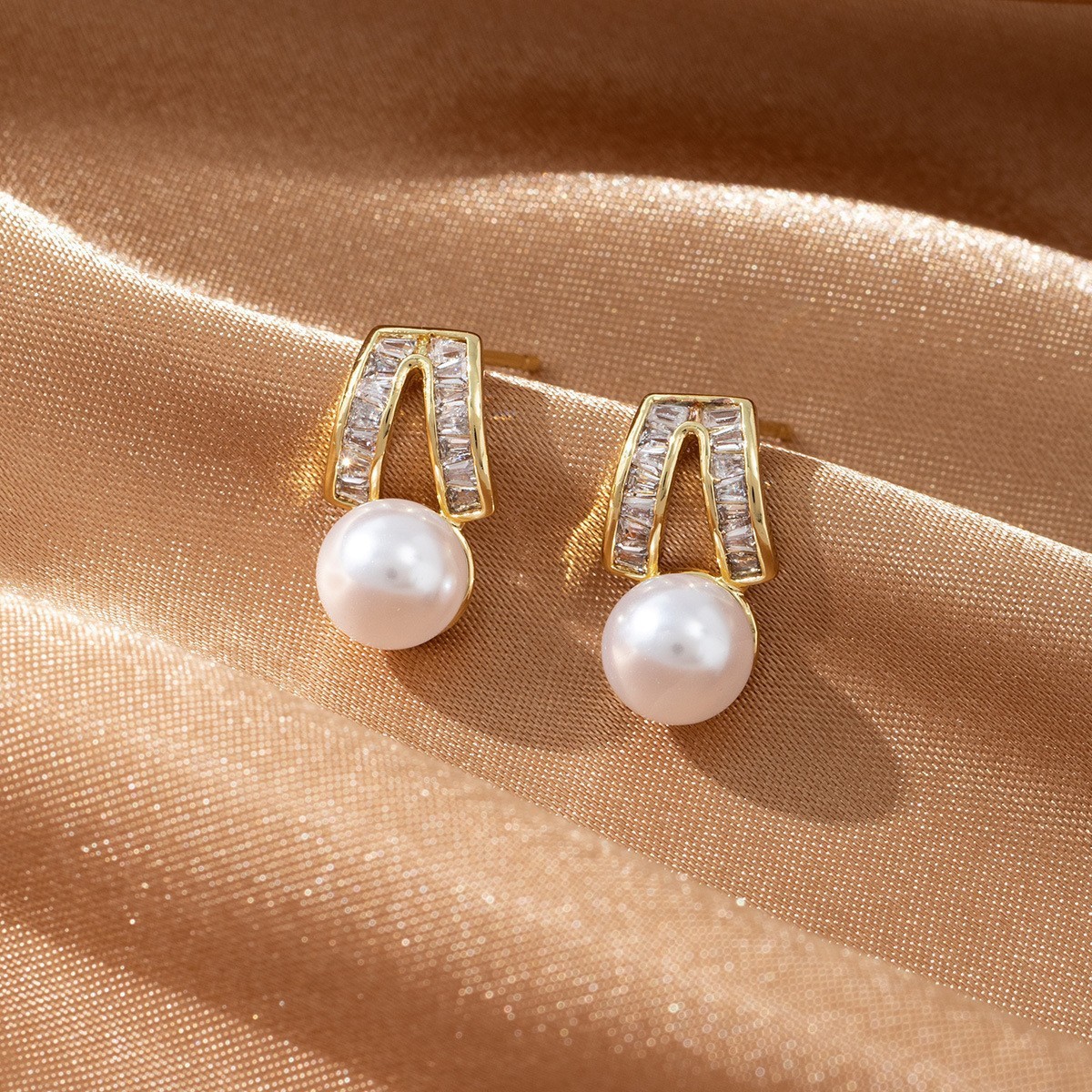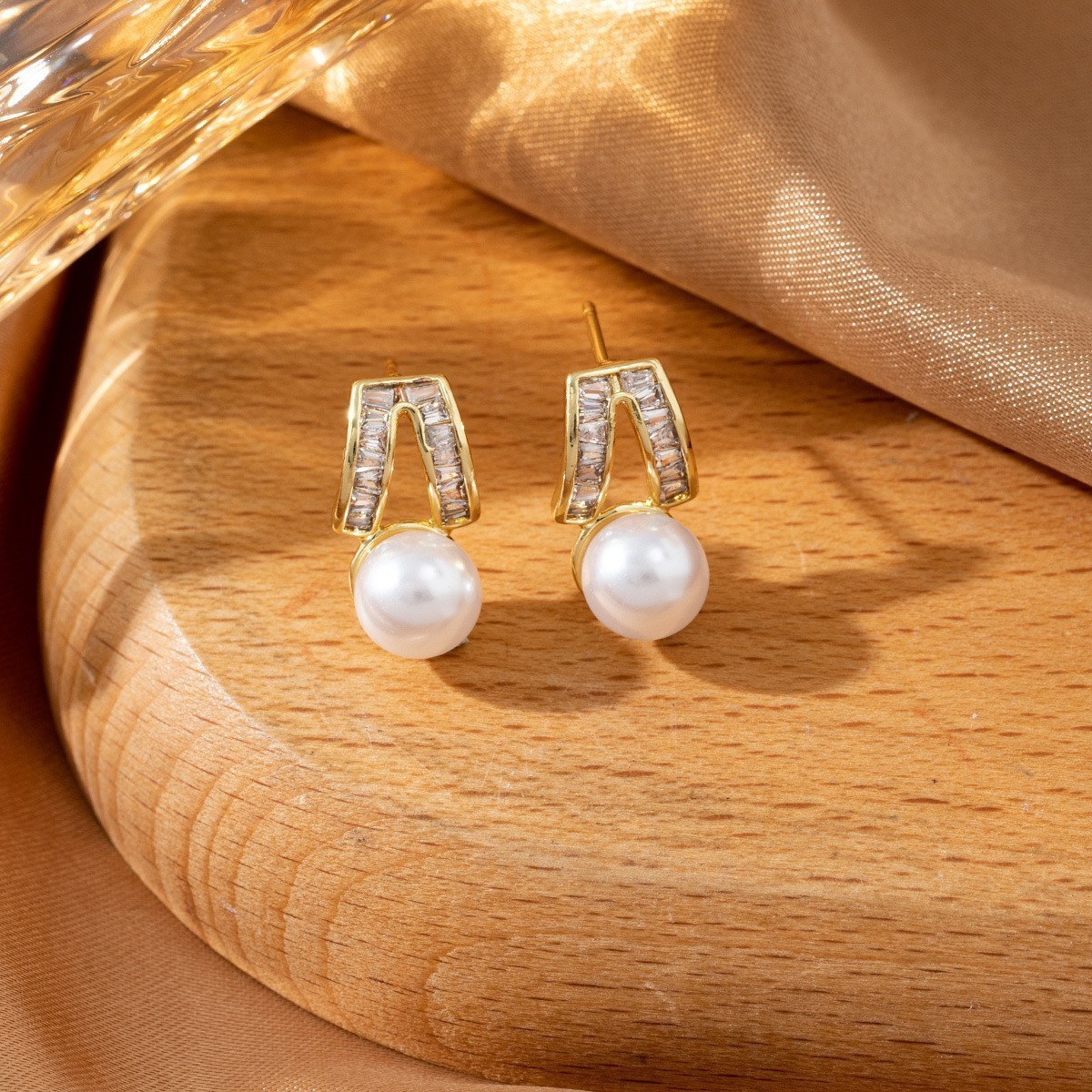 法式复古珍珠高级感耳钉批发小众设计轻奢气质镶钻高级感百搭耳饰