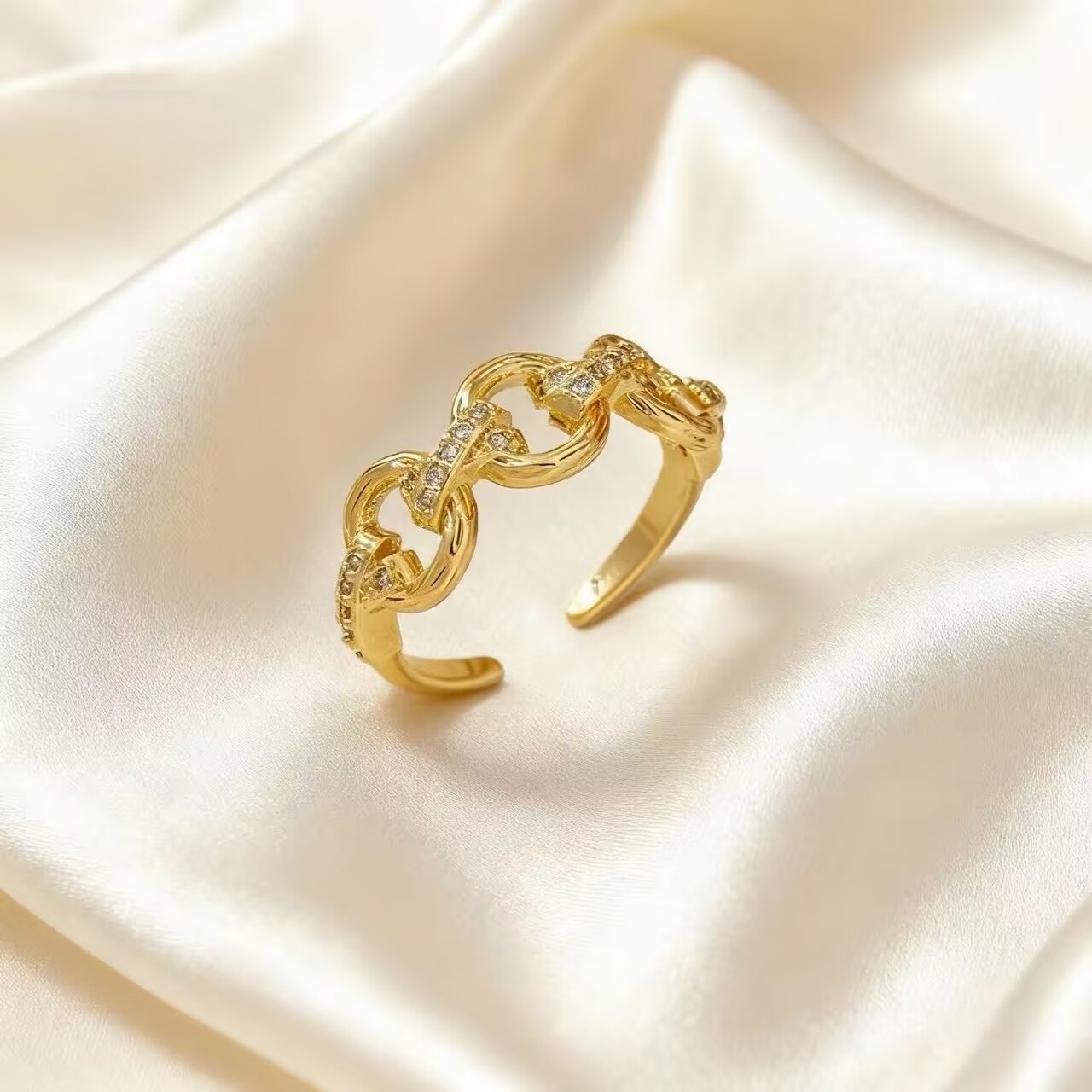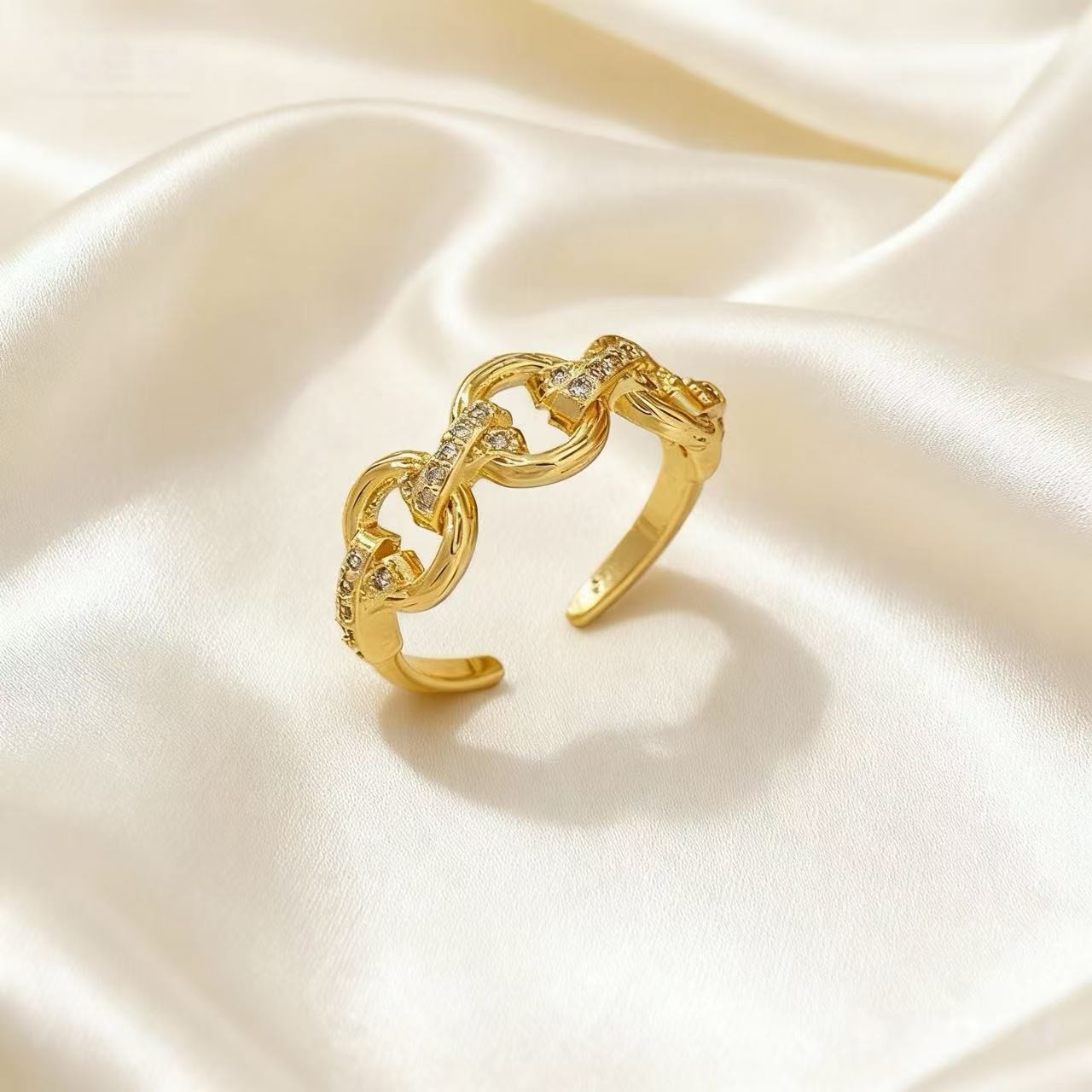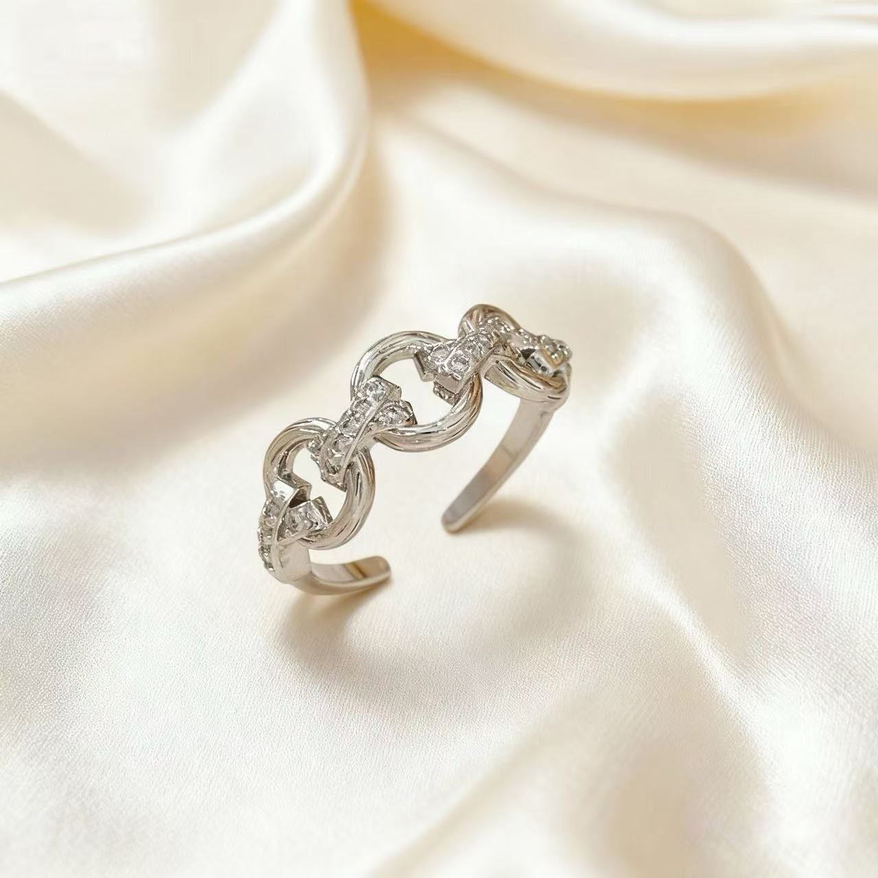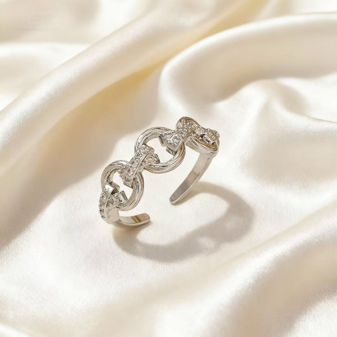 跨境新款马蹄扣镶钻戒指精致叠戴链条高级感开口可调节环扣指环