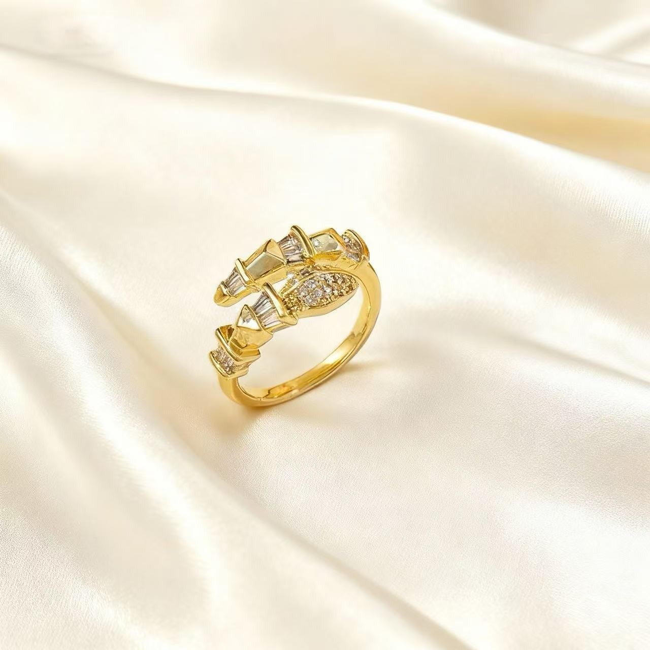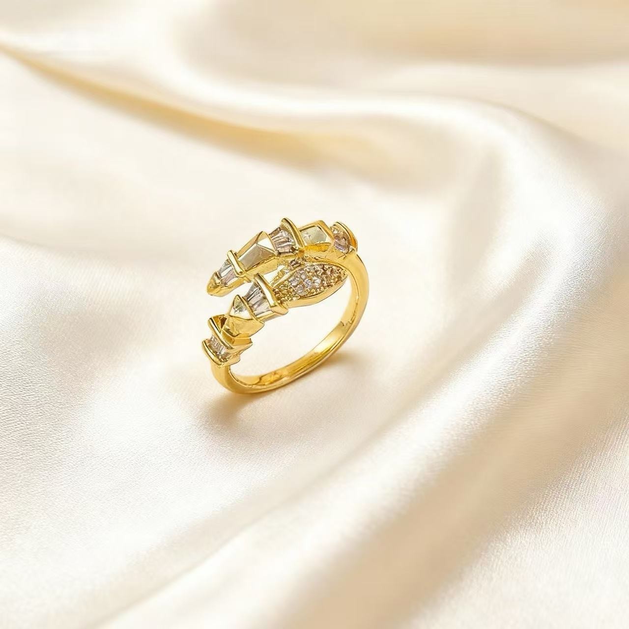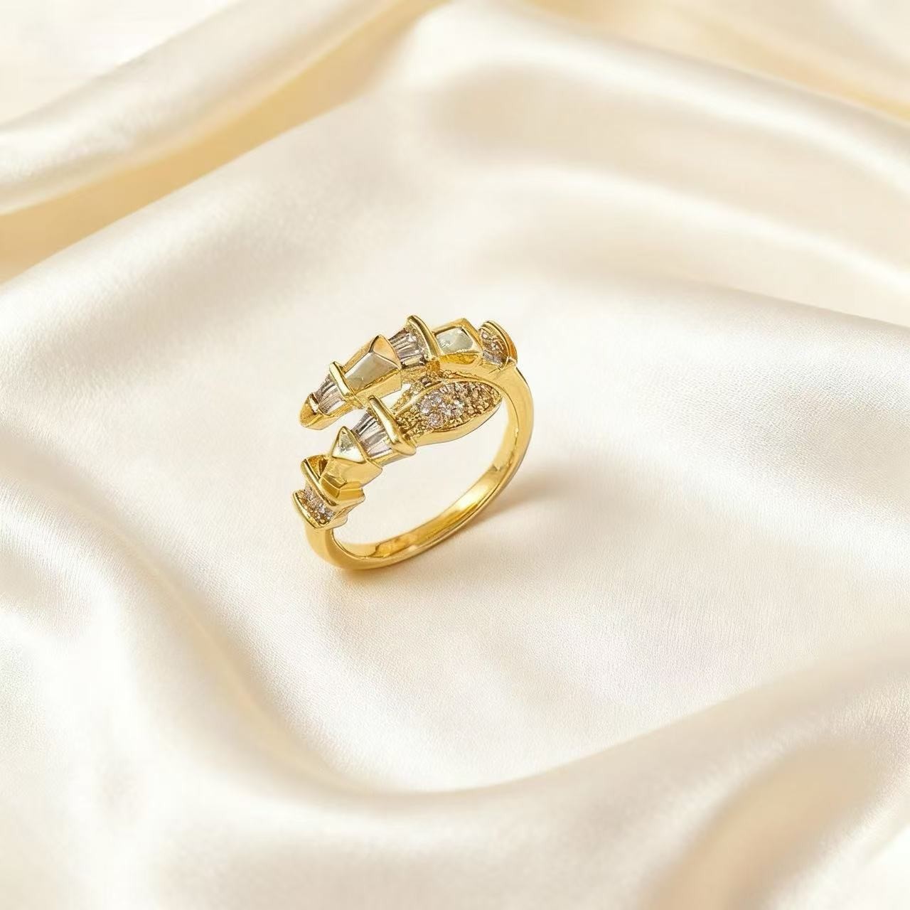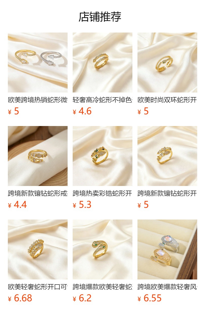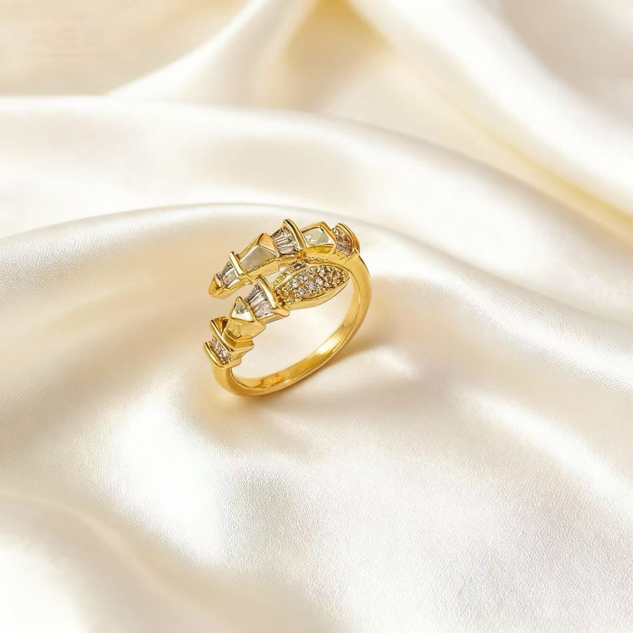 轻奢镶钻蛇形戒指小众设计高级感时尚气质百搭开口可调节尾戒指环