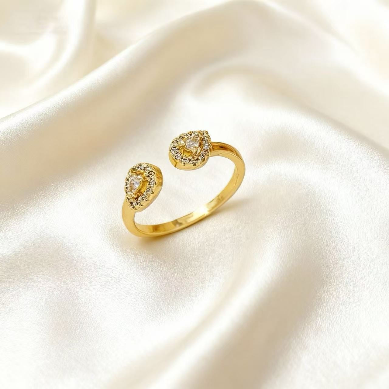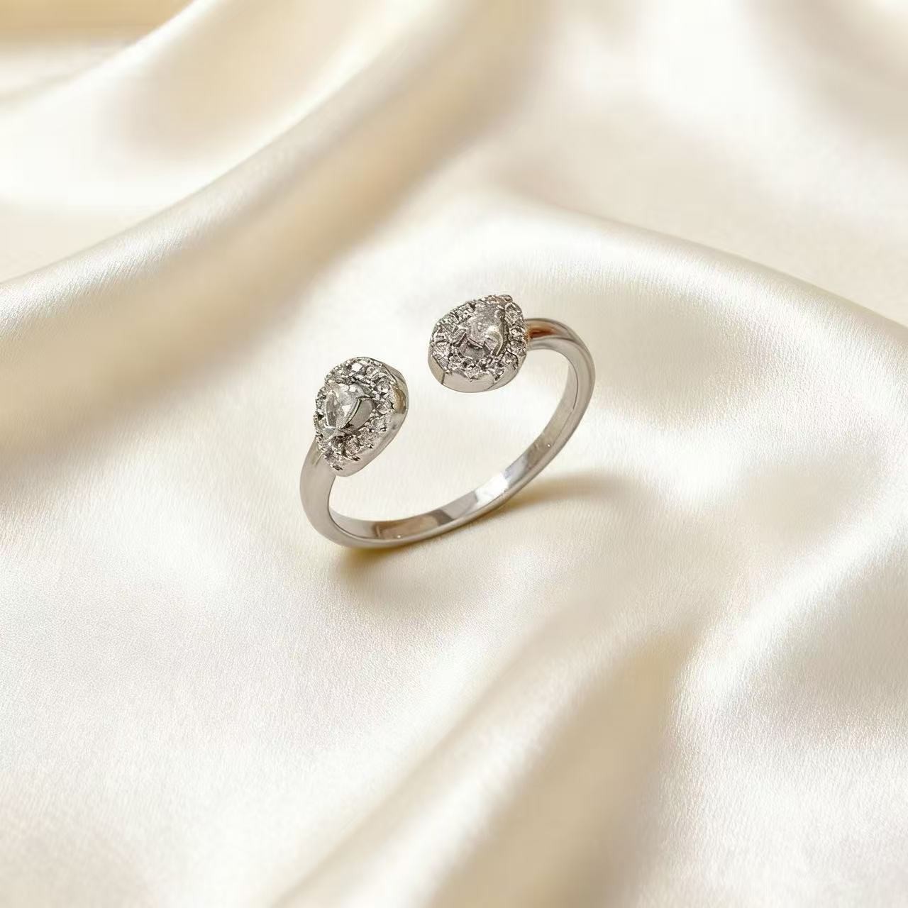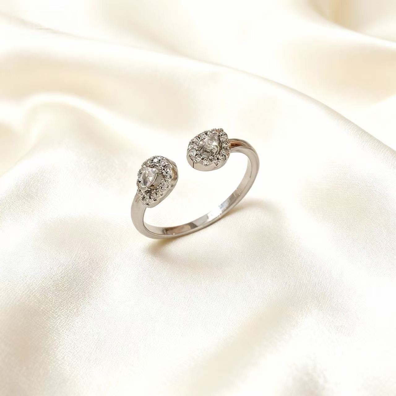 时尚简约镶钻水滴开口戒指轻奢高级感小众设计跨境热销可调节指环
