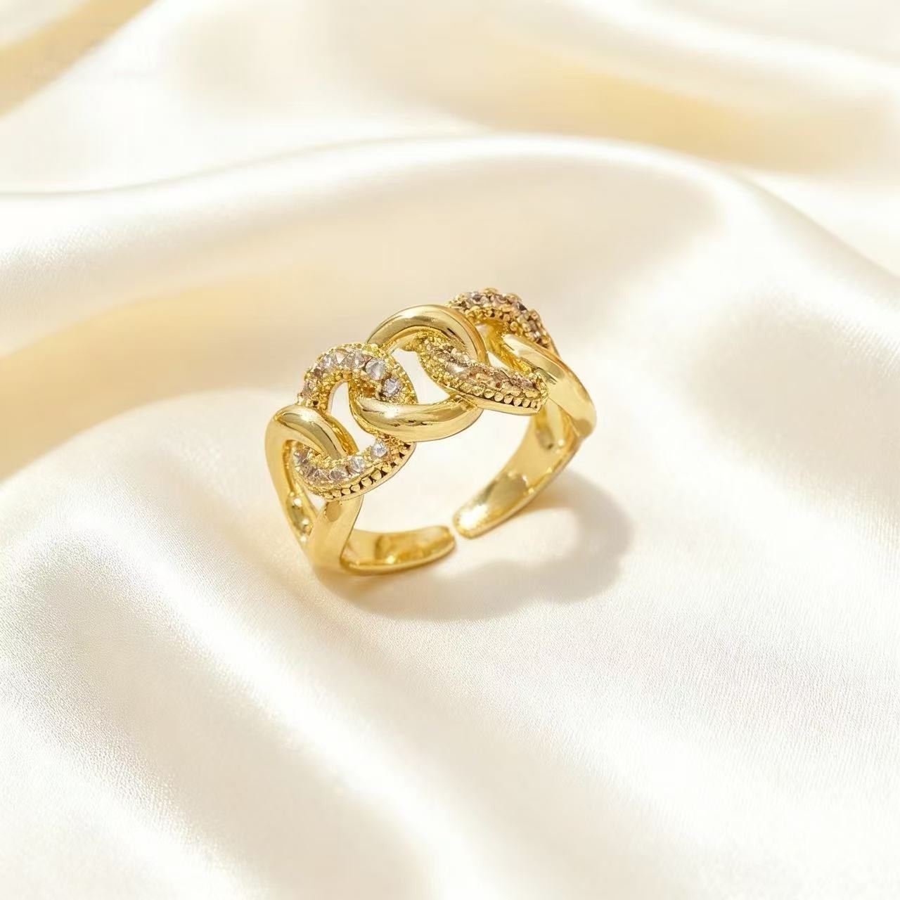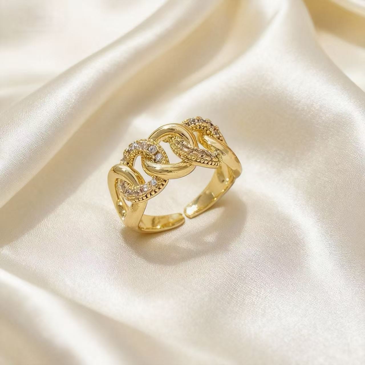 法式镂空环链条戒指女轻奢小众设计金色宽面开口指环高级感指环