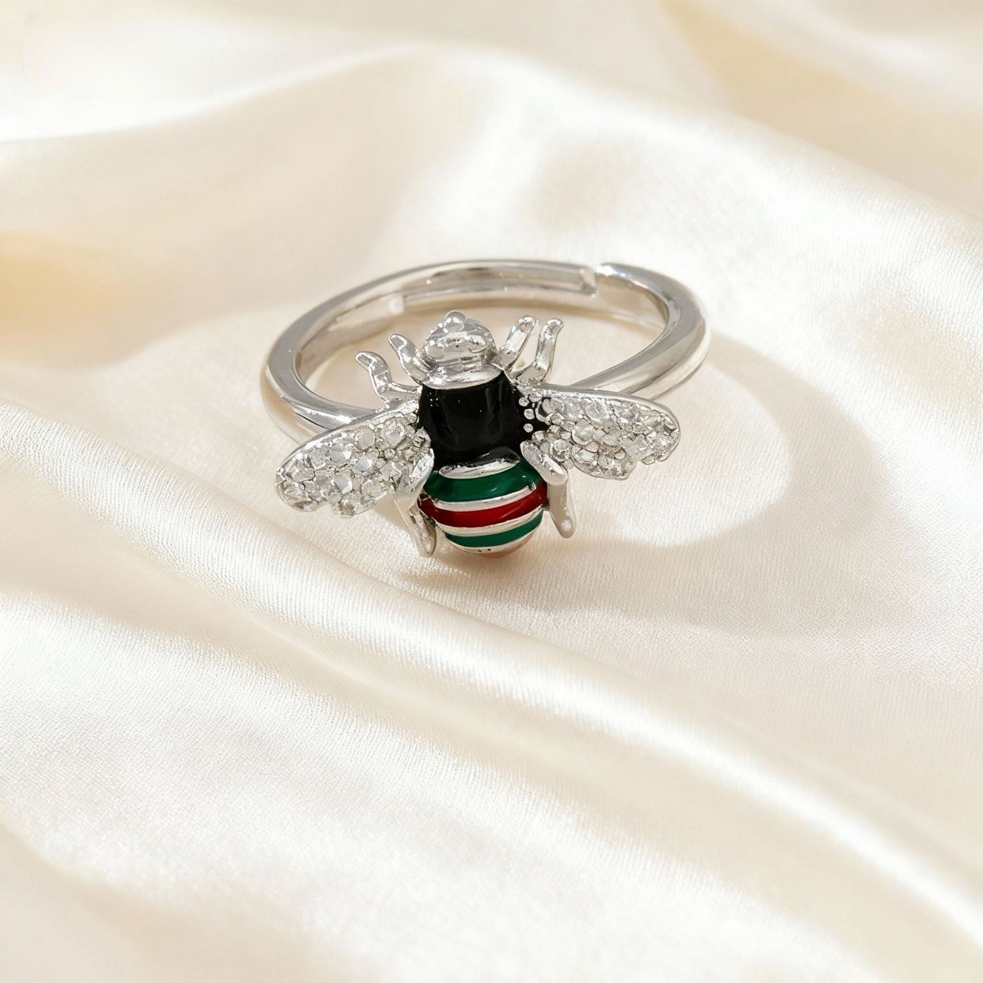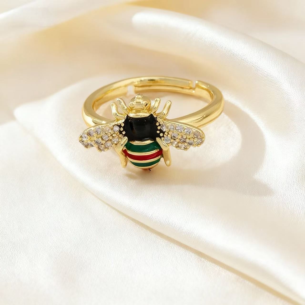 欧美复古新品蜜蜂戒指创意个性昆虫动物设计开口可调节食指戒指环