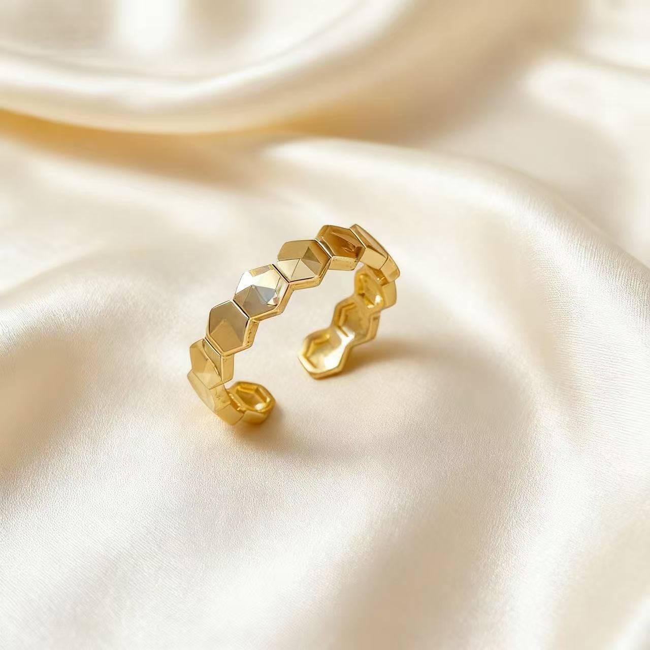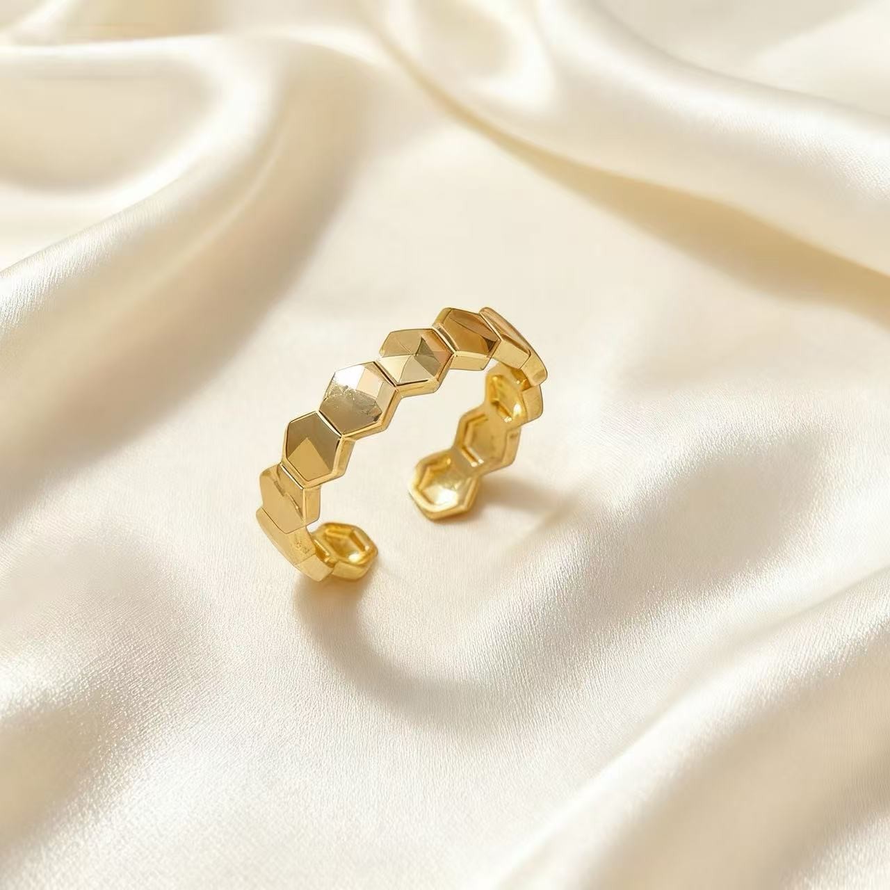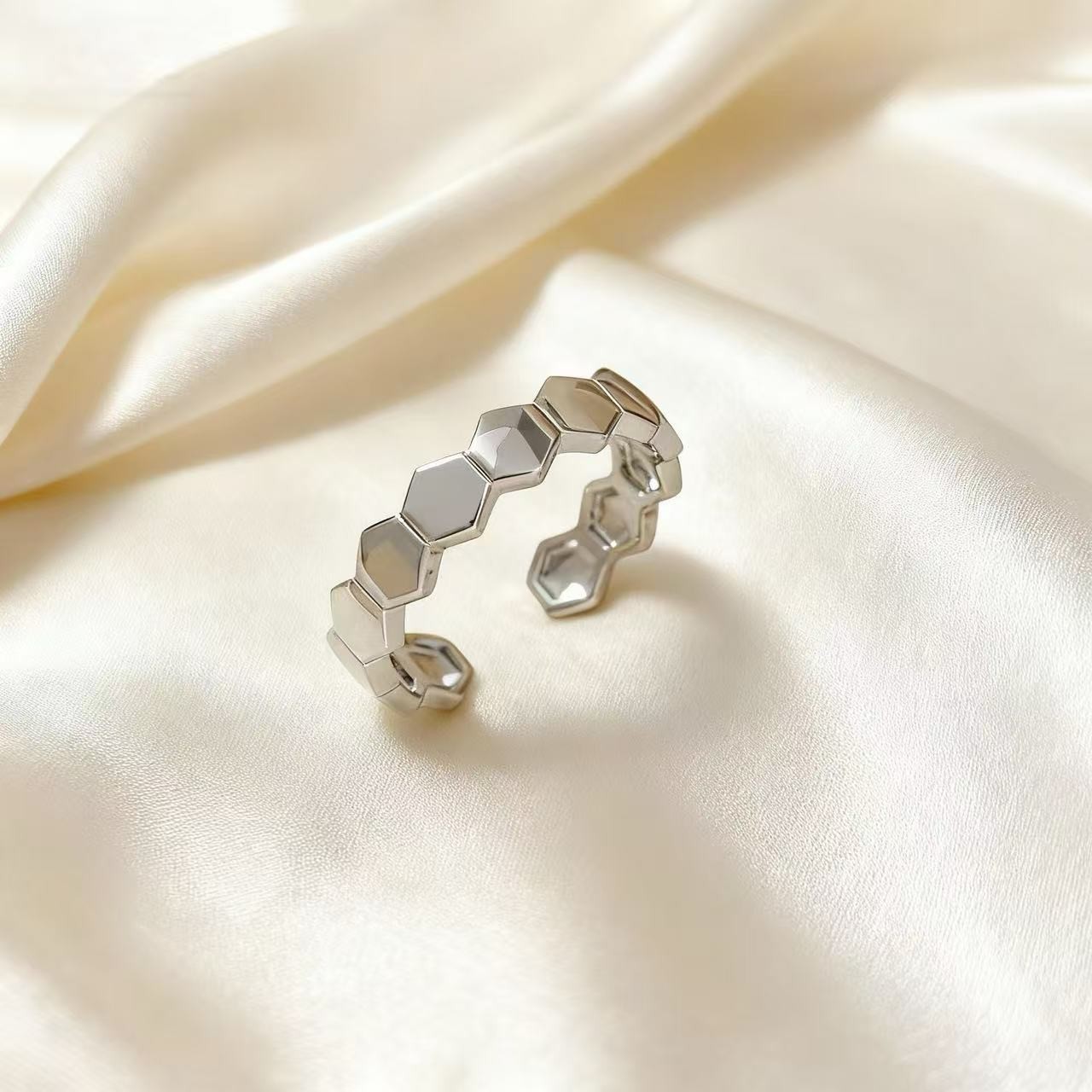 简约六边形蜂巢戒指经典素高级感小众设计开口可调节食指戒指环