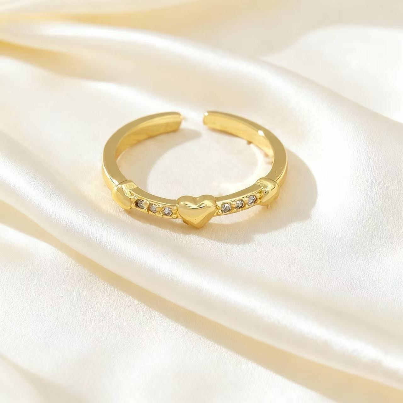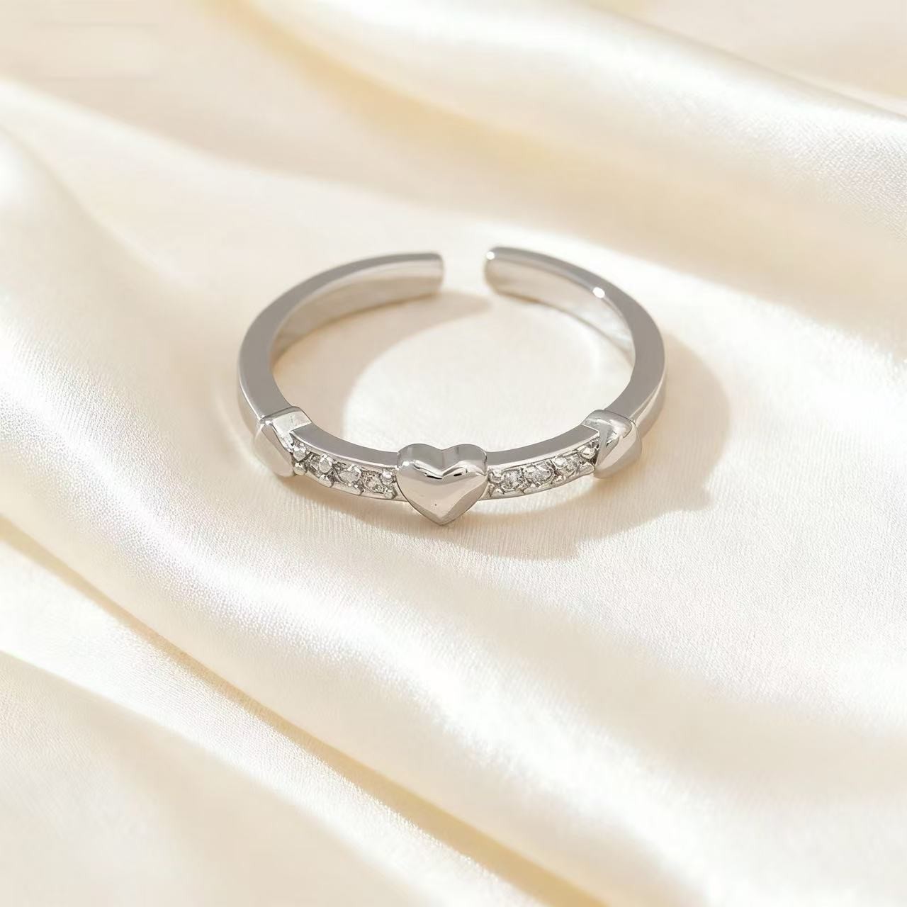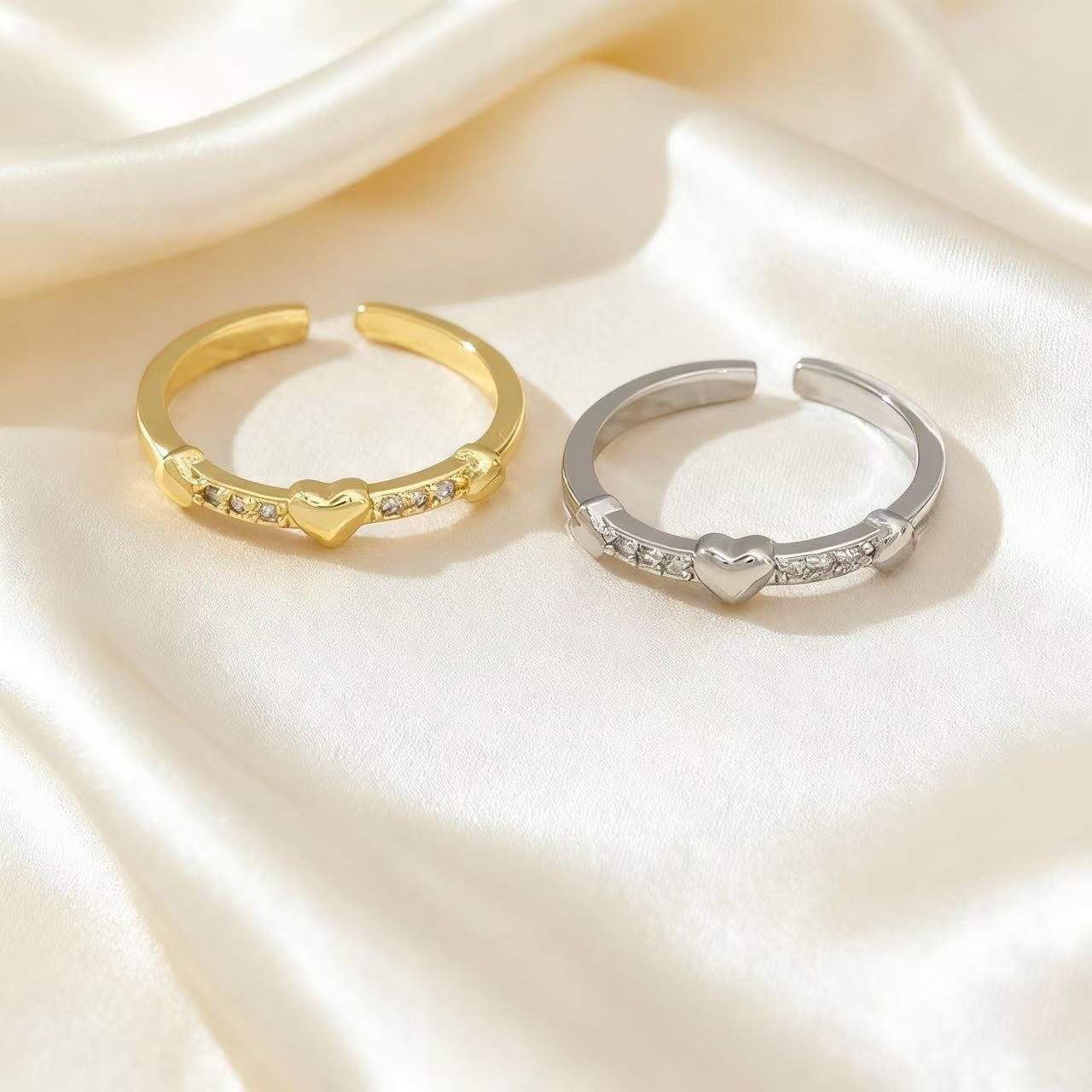 韩系精致爱心叠戴戒指女甜美风心形百搭素圈开口可调节食指戒指环