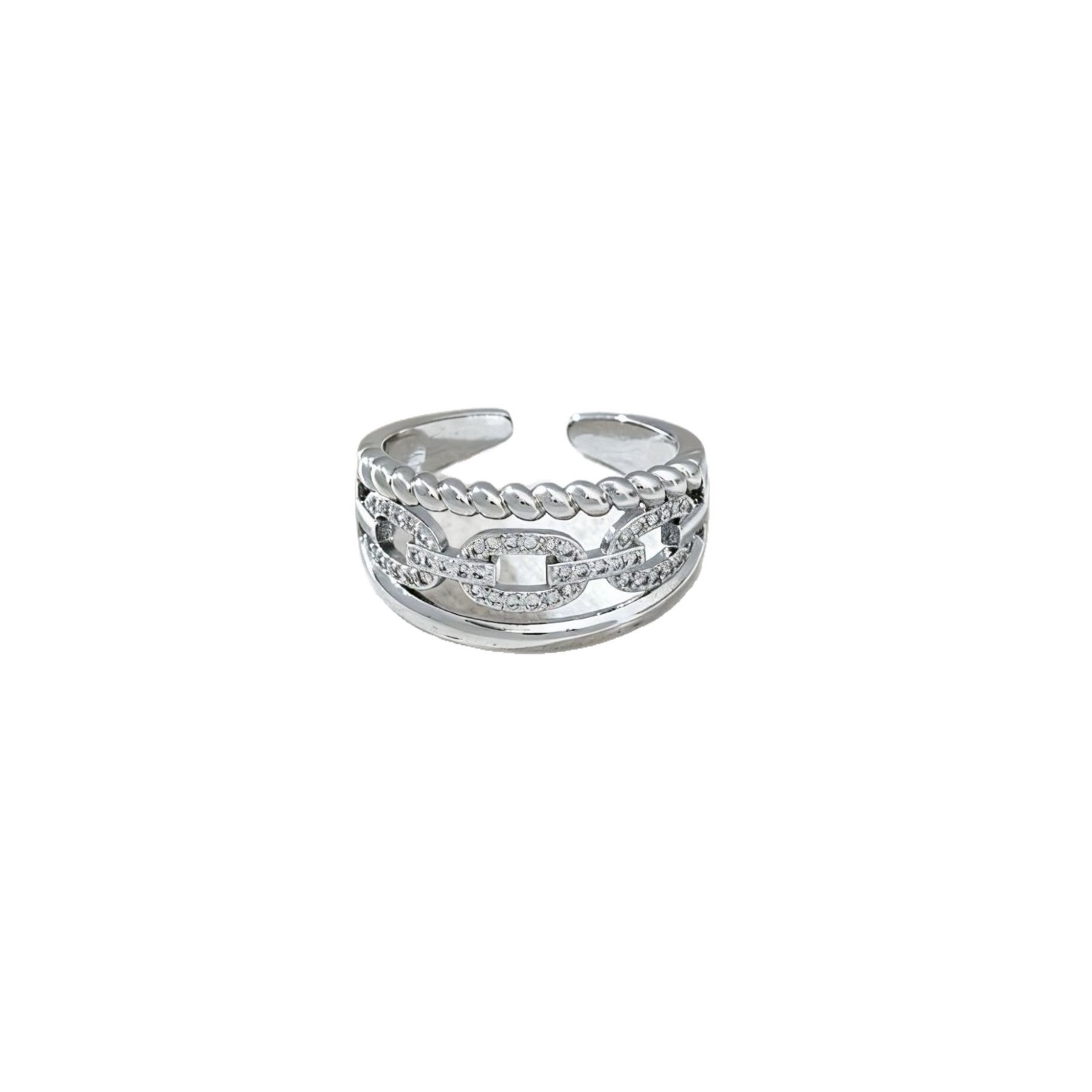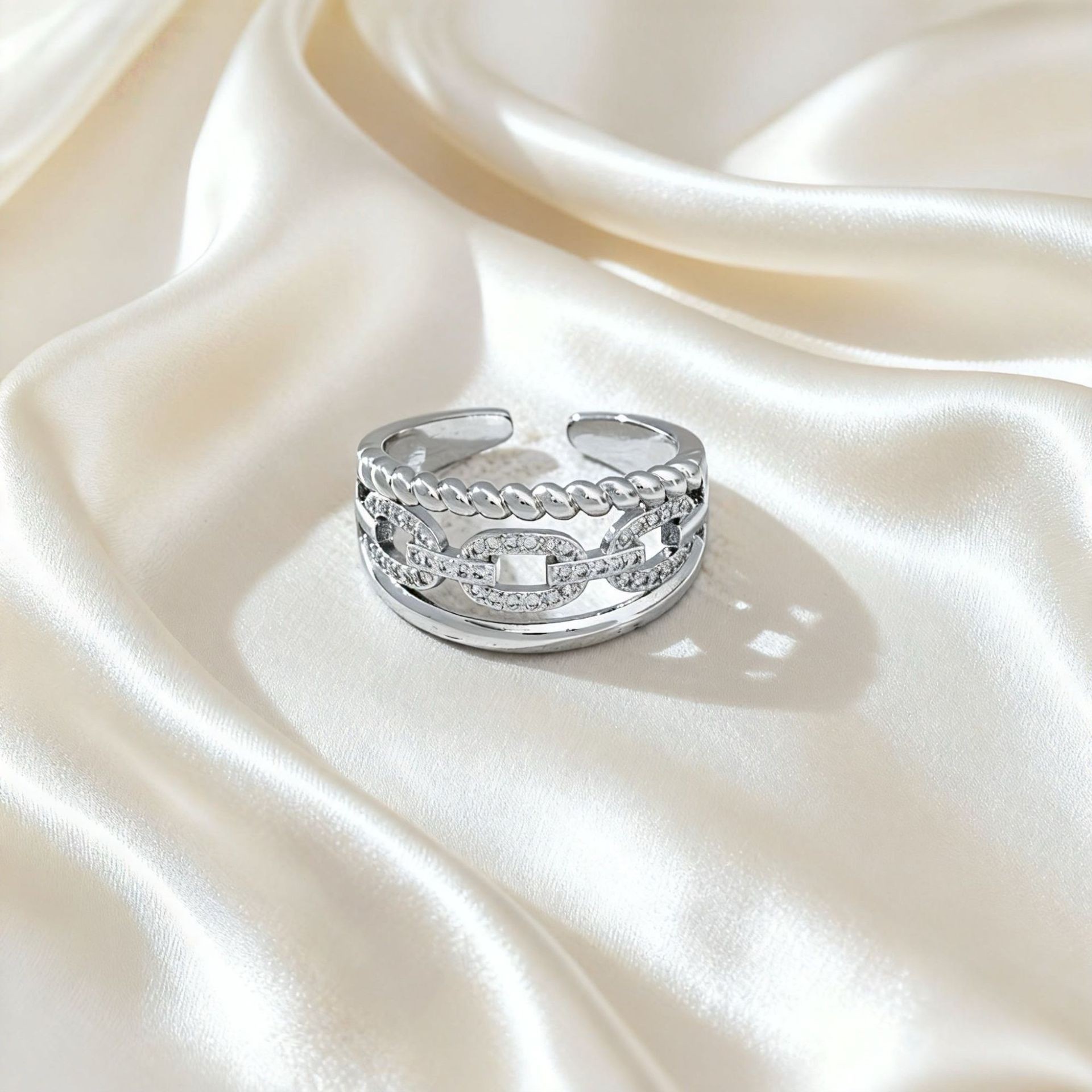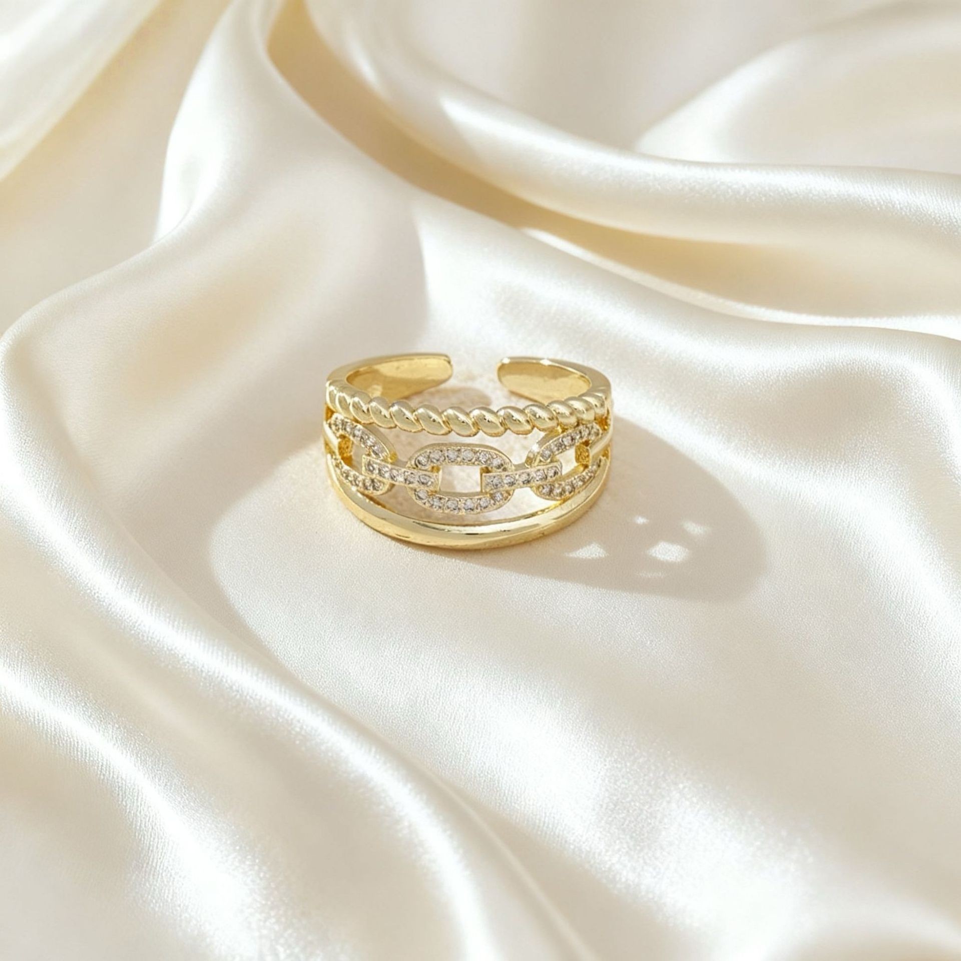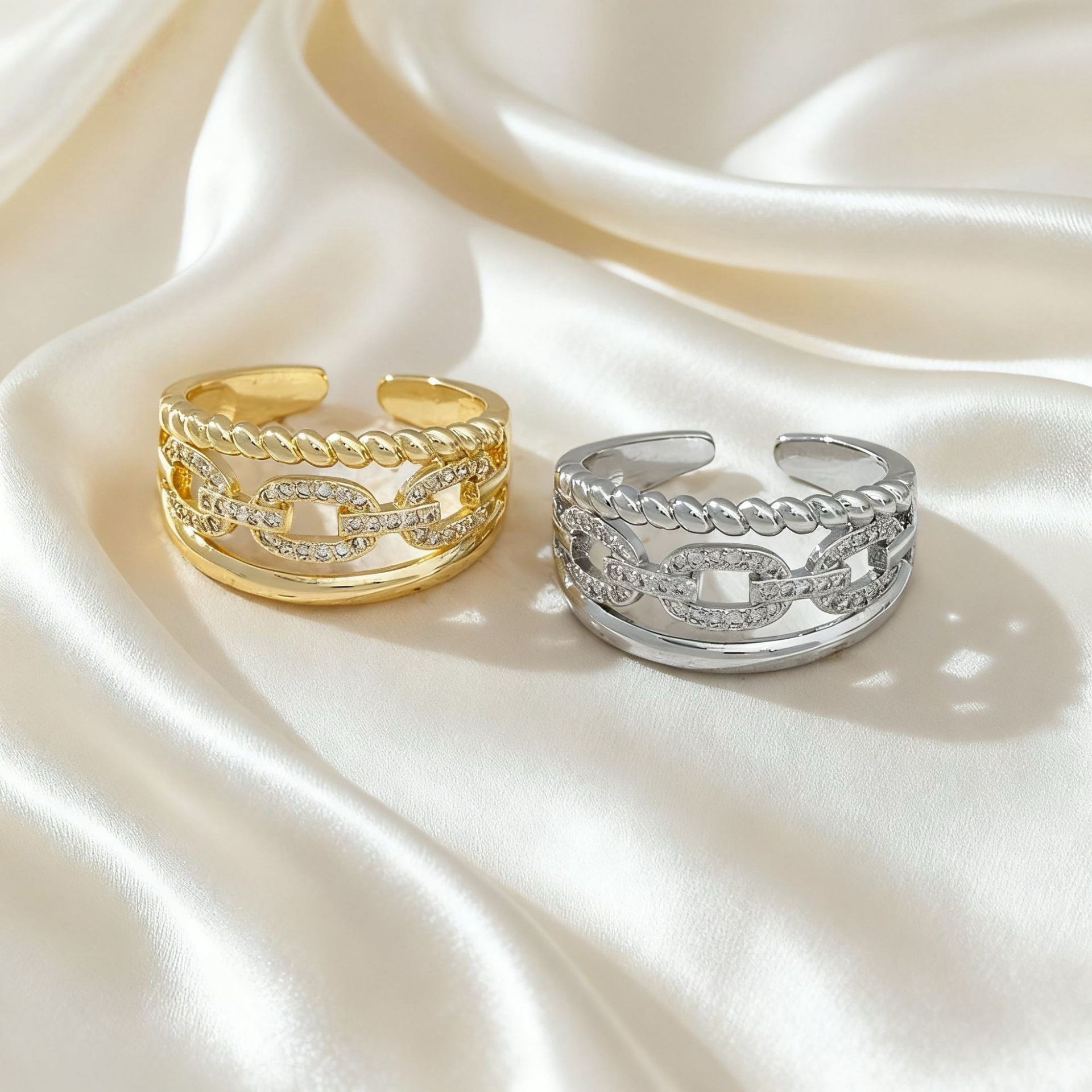 轻奢多层链条开口可调节时尚戒指微镶锆石线条设计指环手饰批发