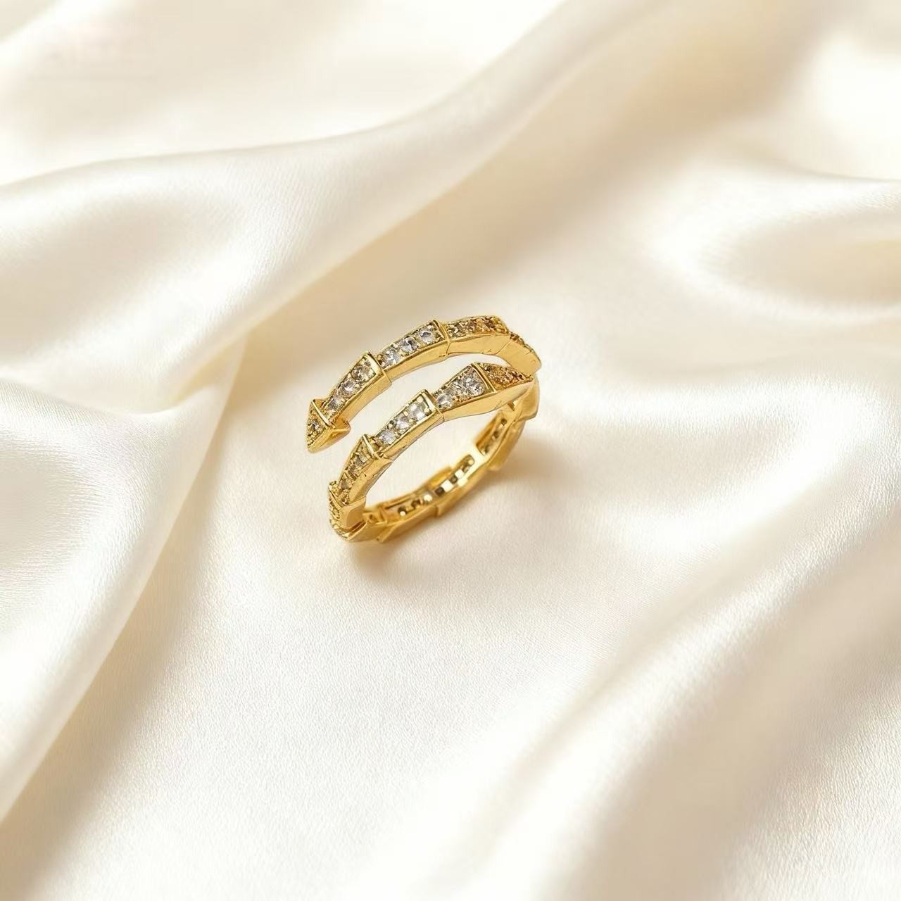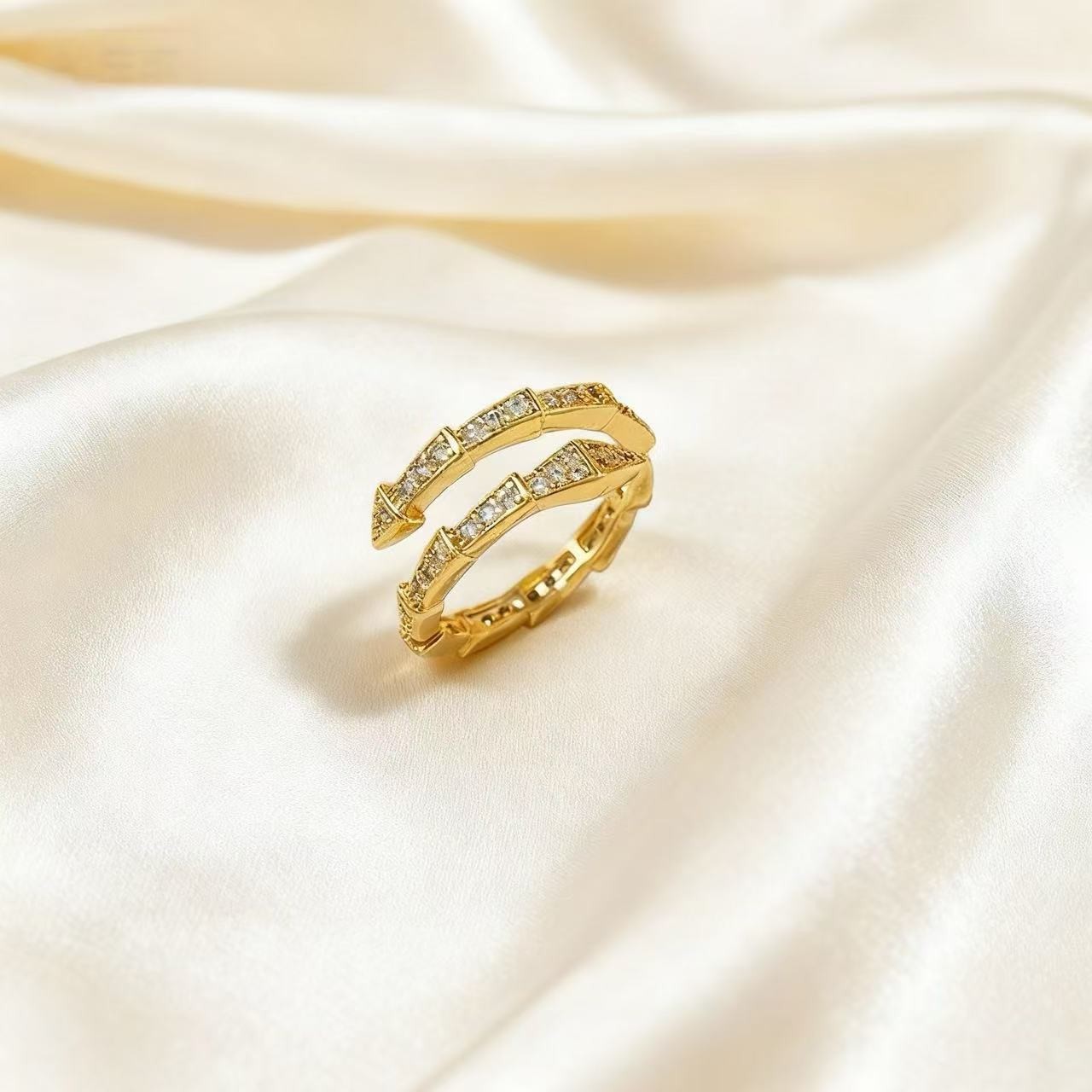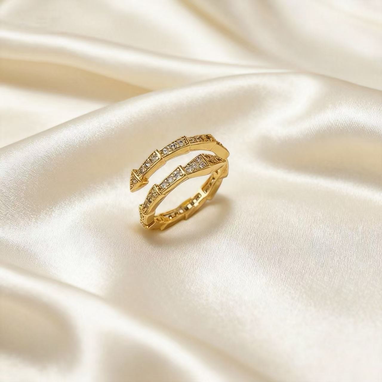 新款满钻开口可调节蛇形戒指轻奢小众设计冷淡风高级感蛇骨指环女