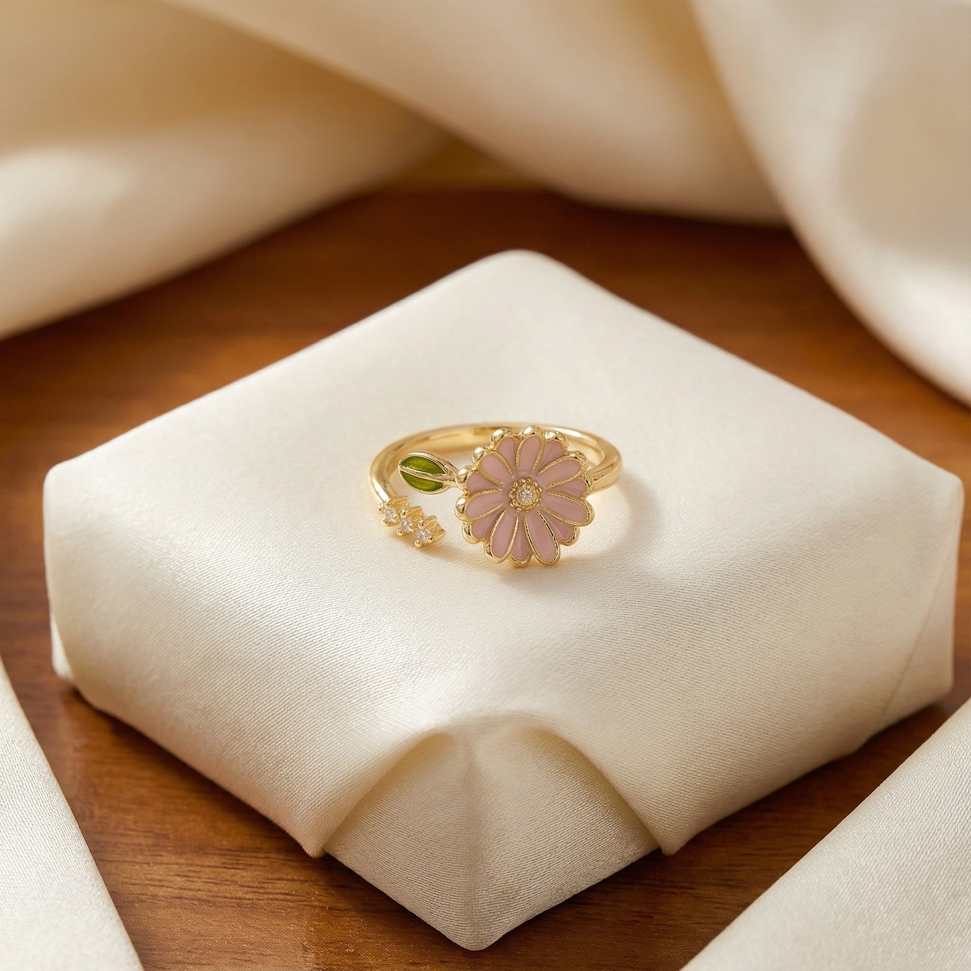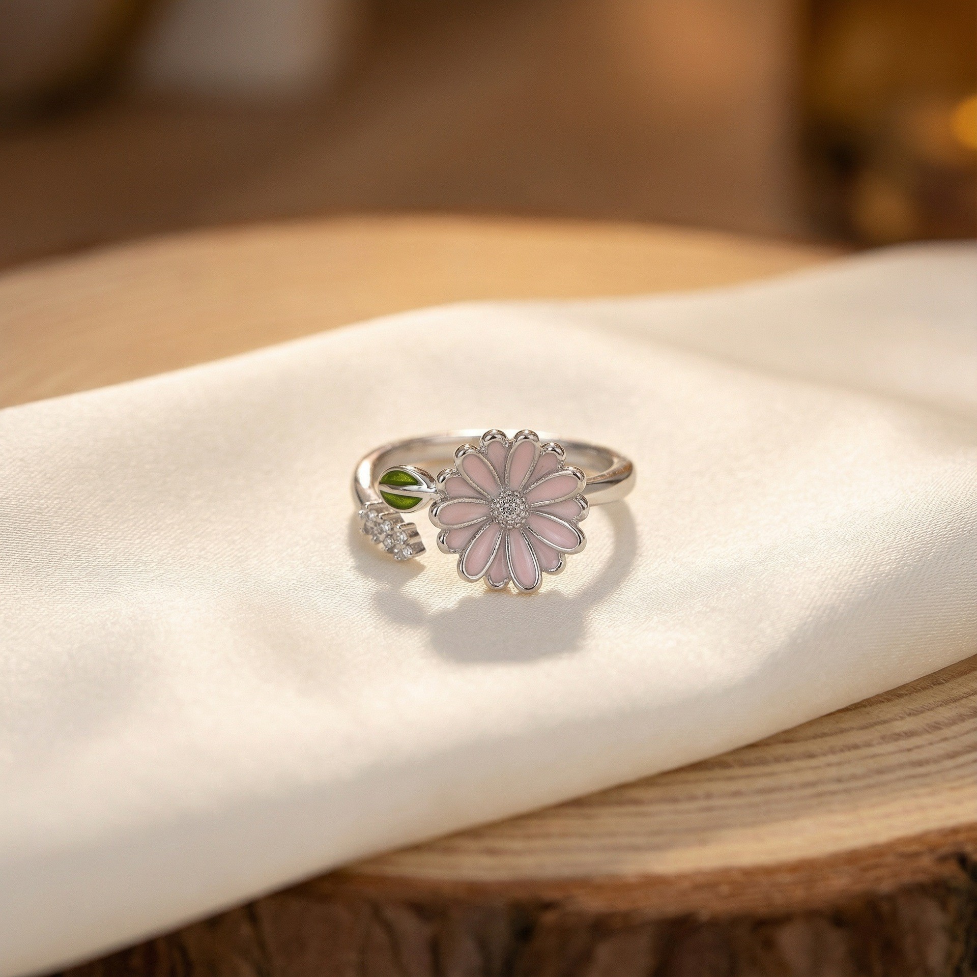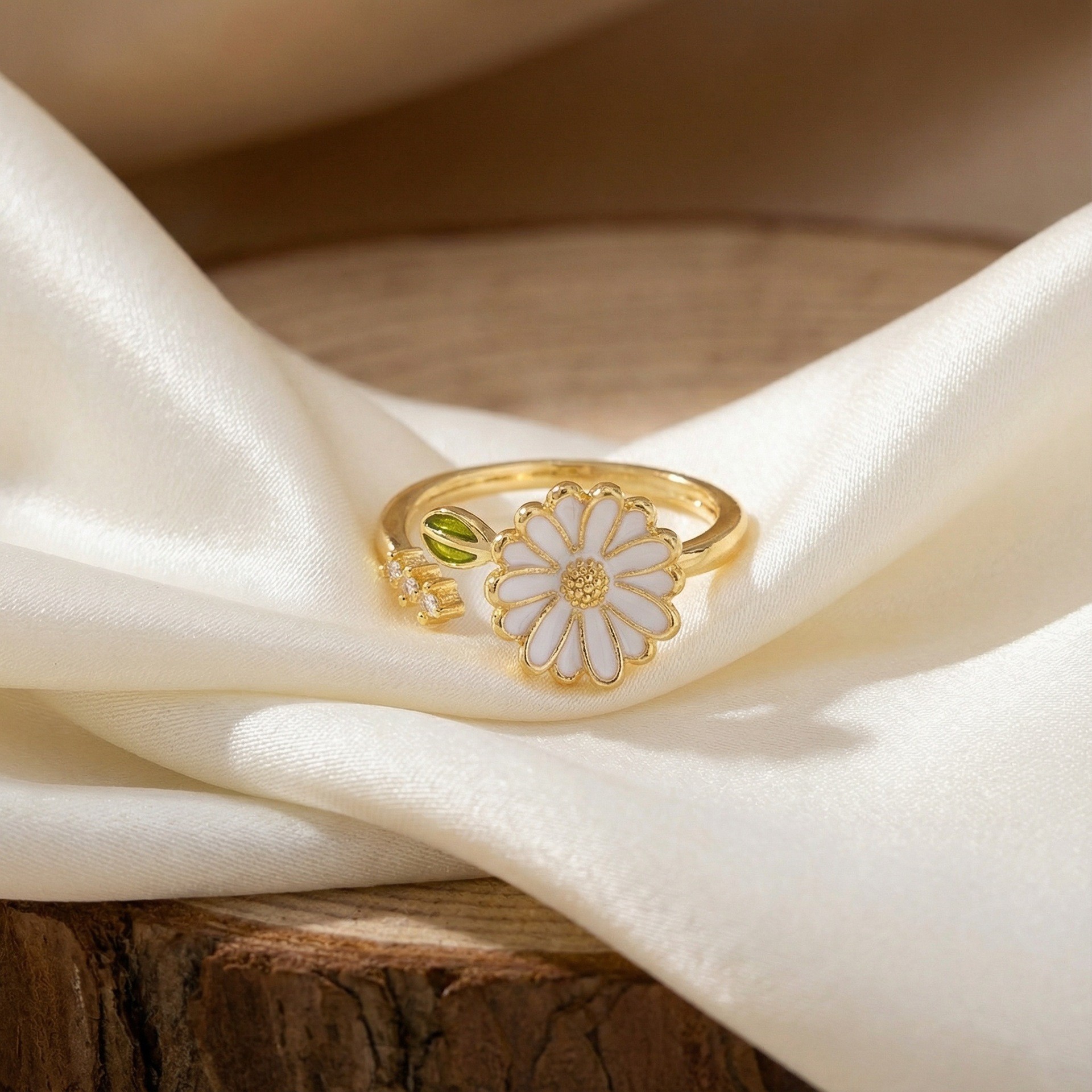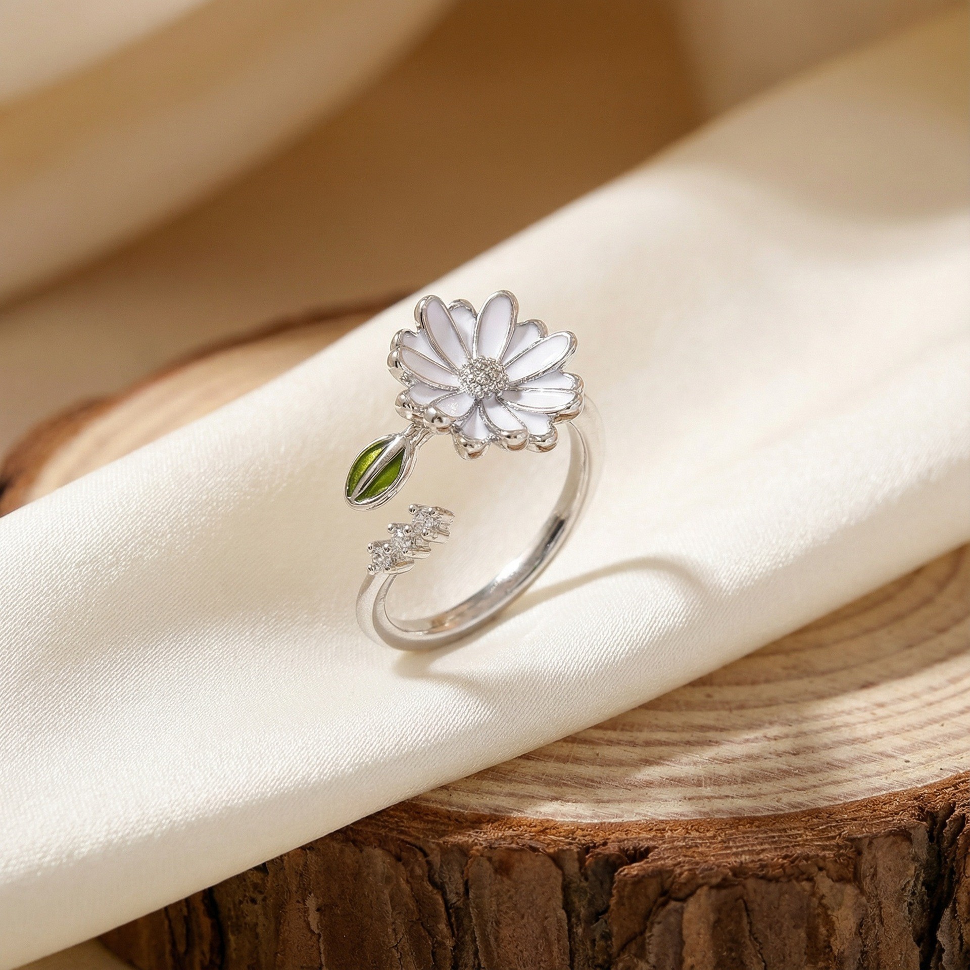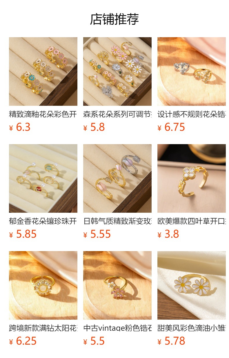 新款滴油小雏菊开口戒指时尚简约甜美风花朵可调节百搭食指指环女
