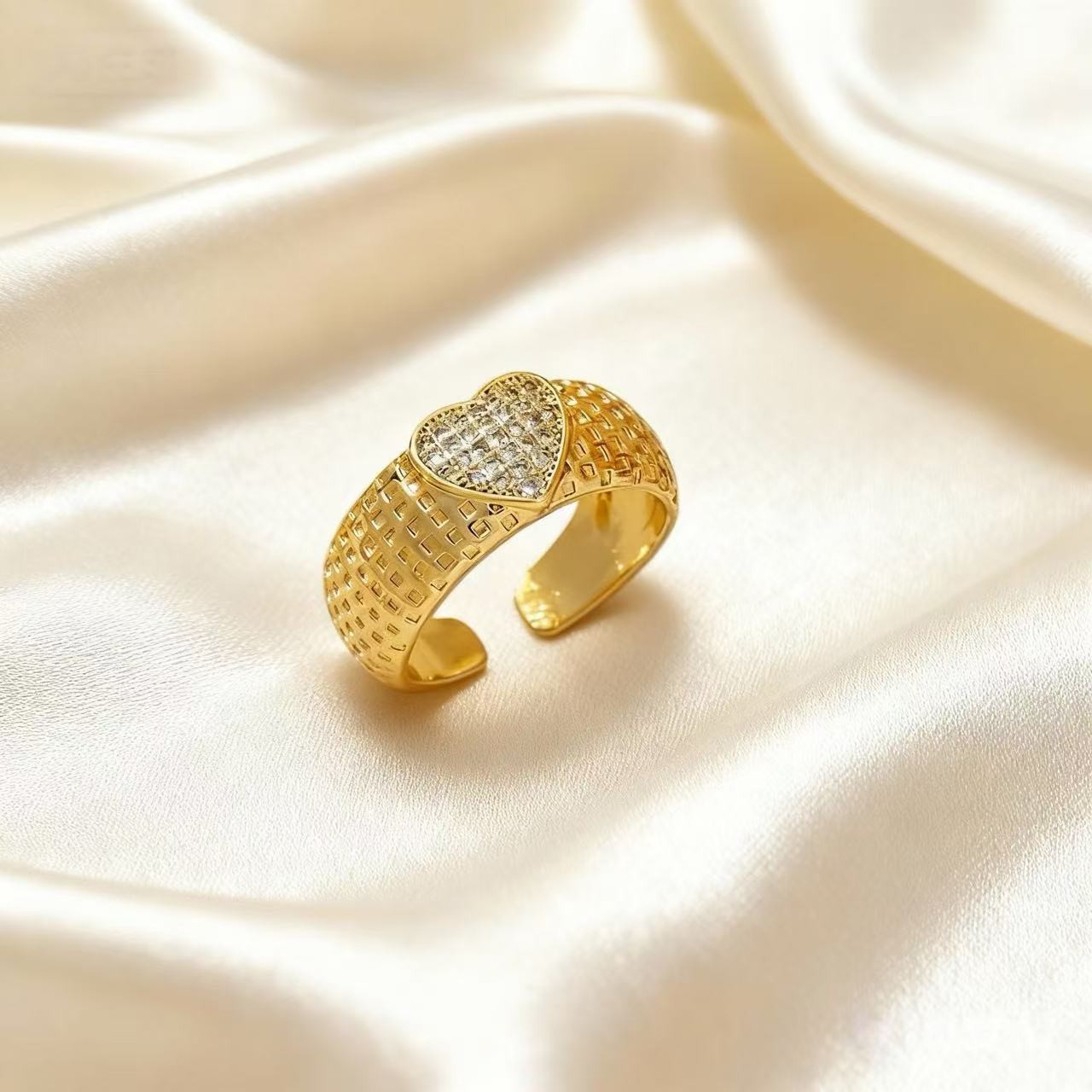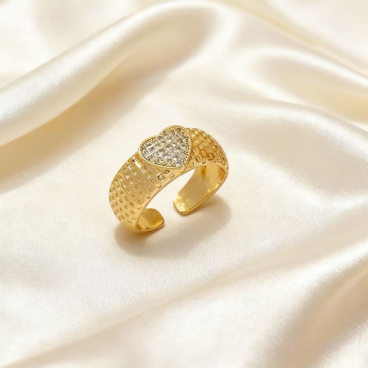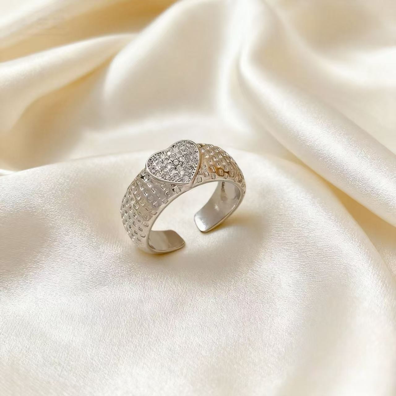 跨境个性ins风爱心满钻铜镶锆石开口戒指轻奢高级感气质宽版指环
