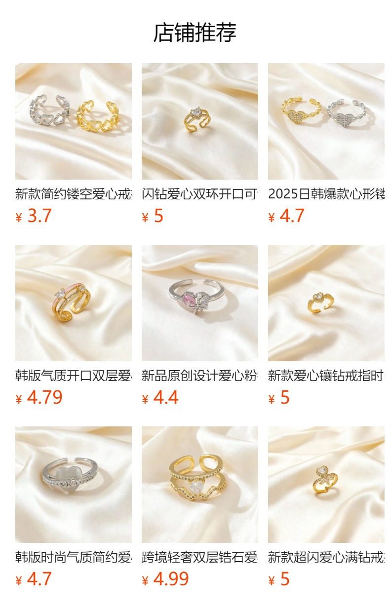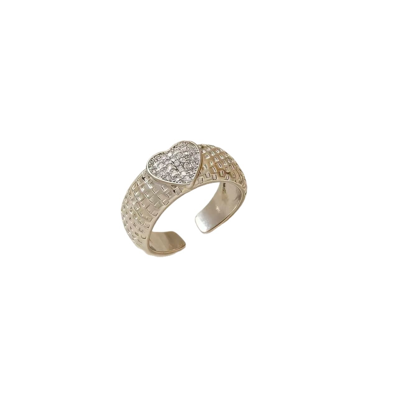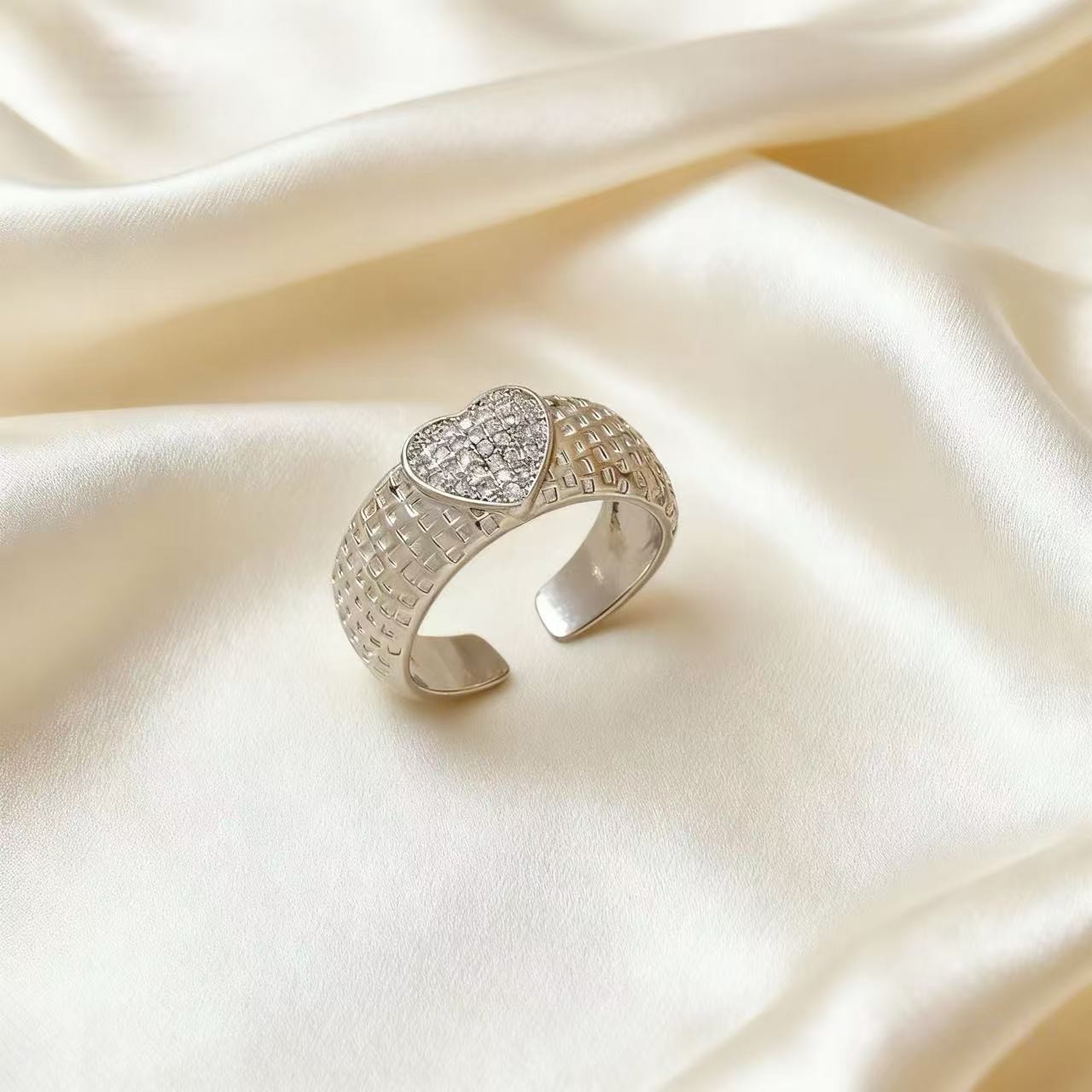 跨境个性ins风爱心满钻铜镶锆石开口戒指轻奢高级感气质宽版指环