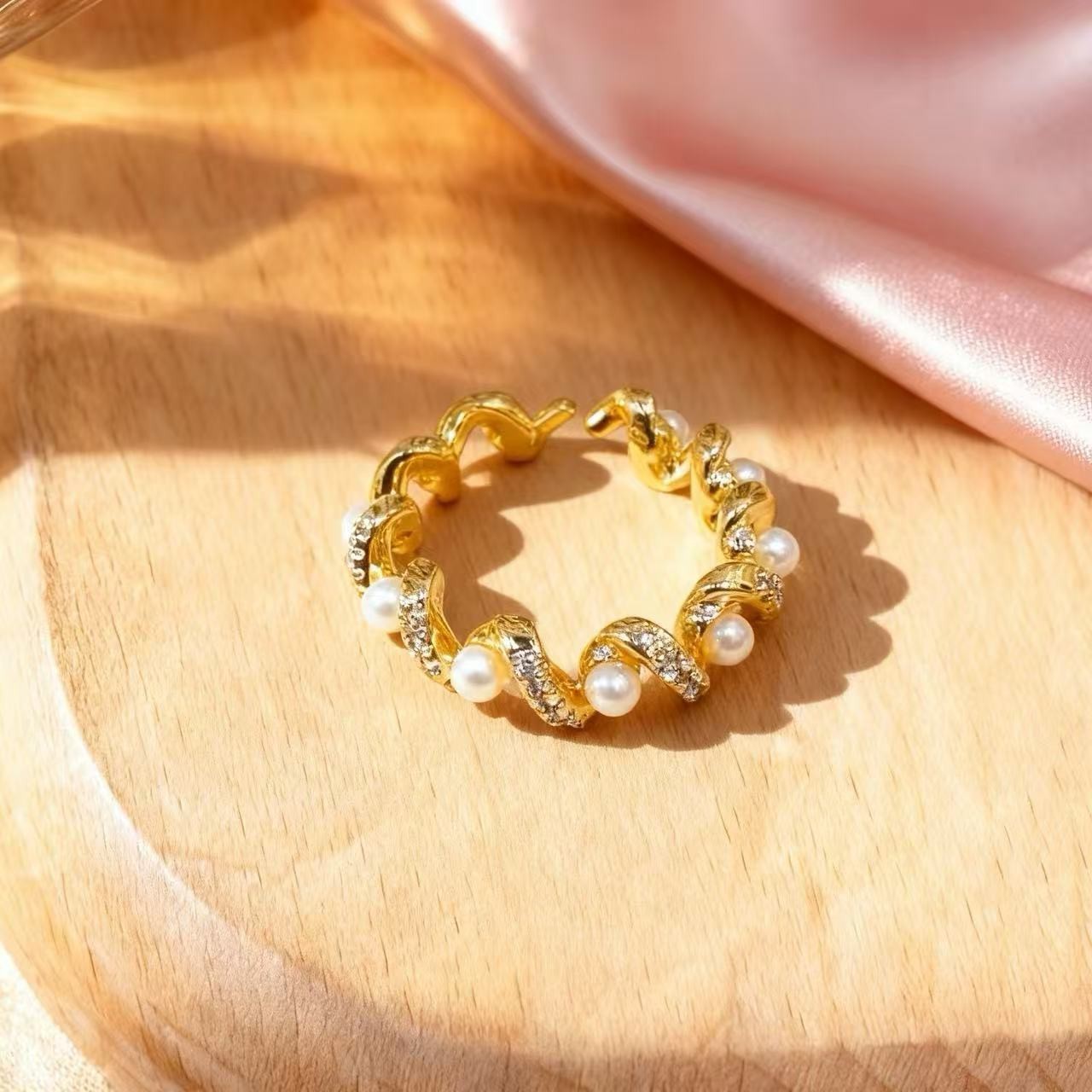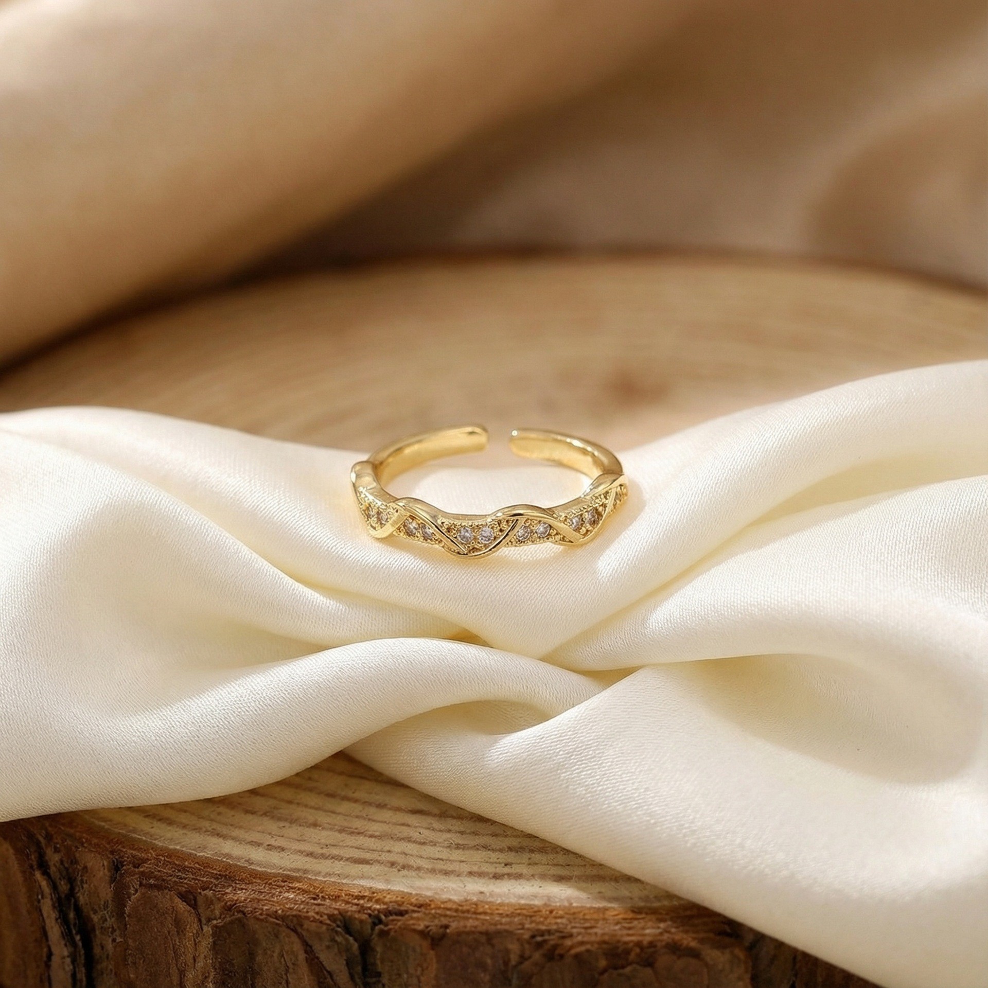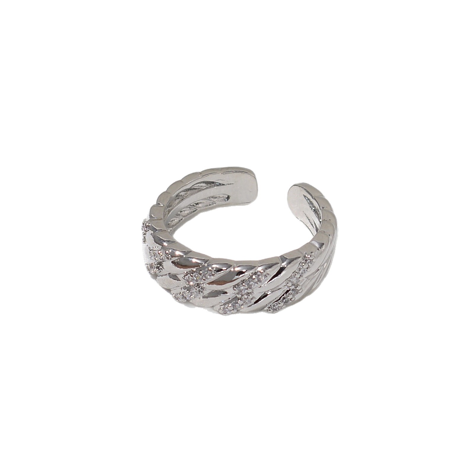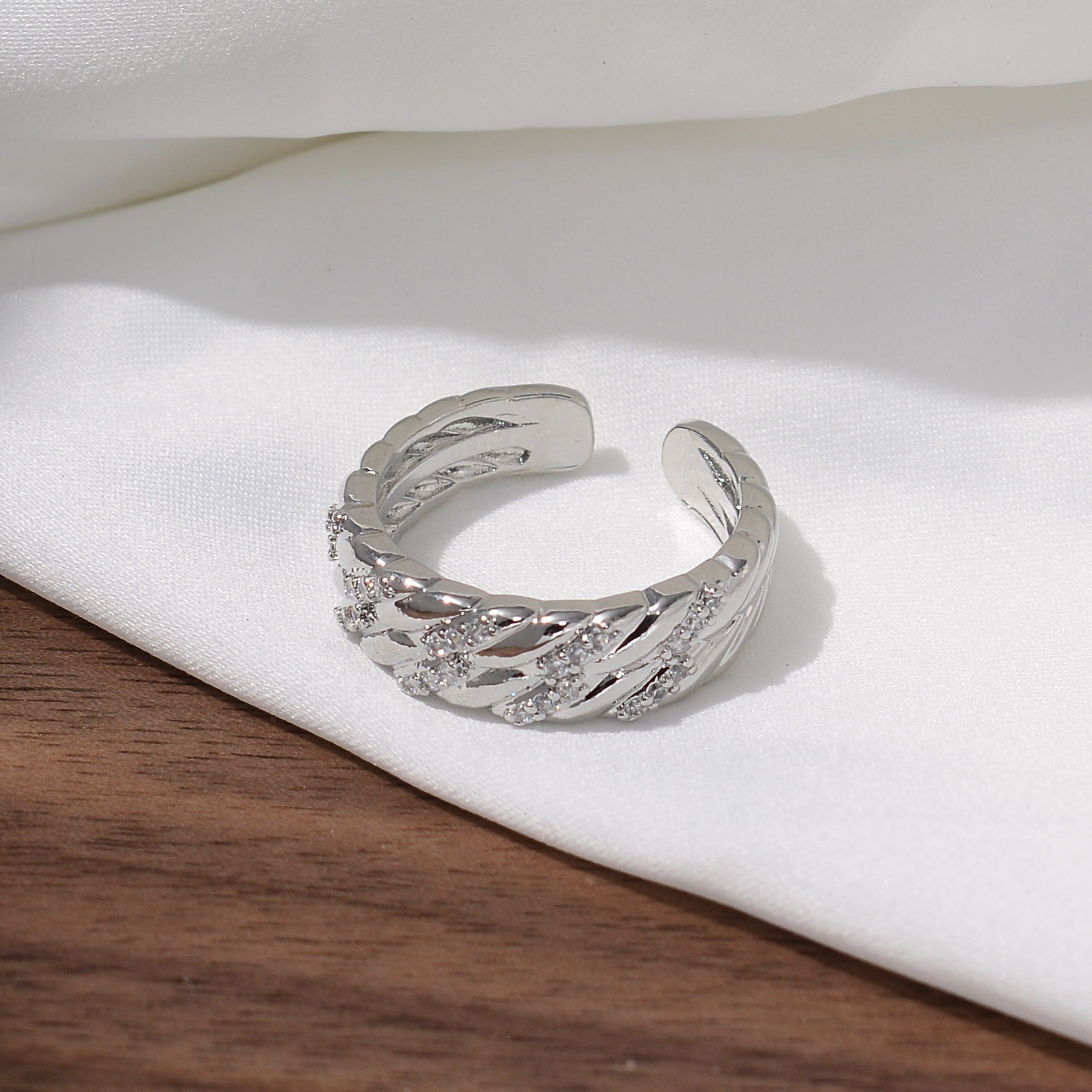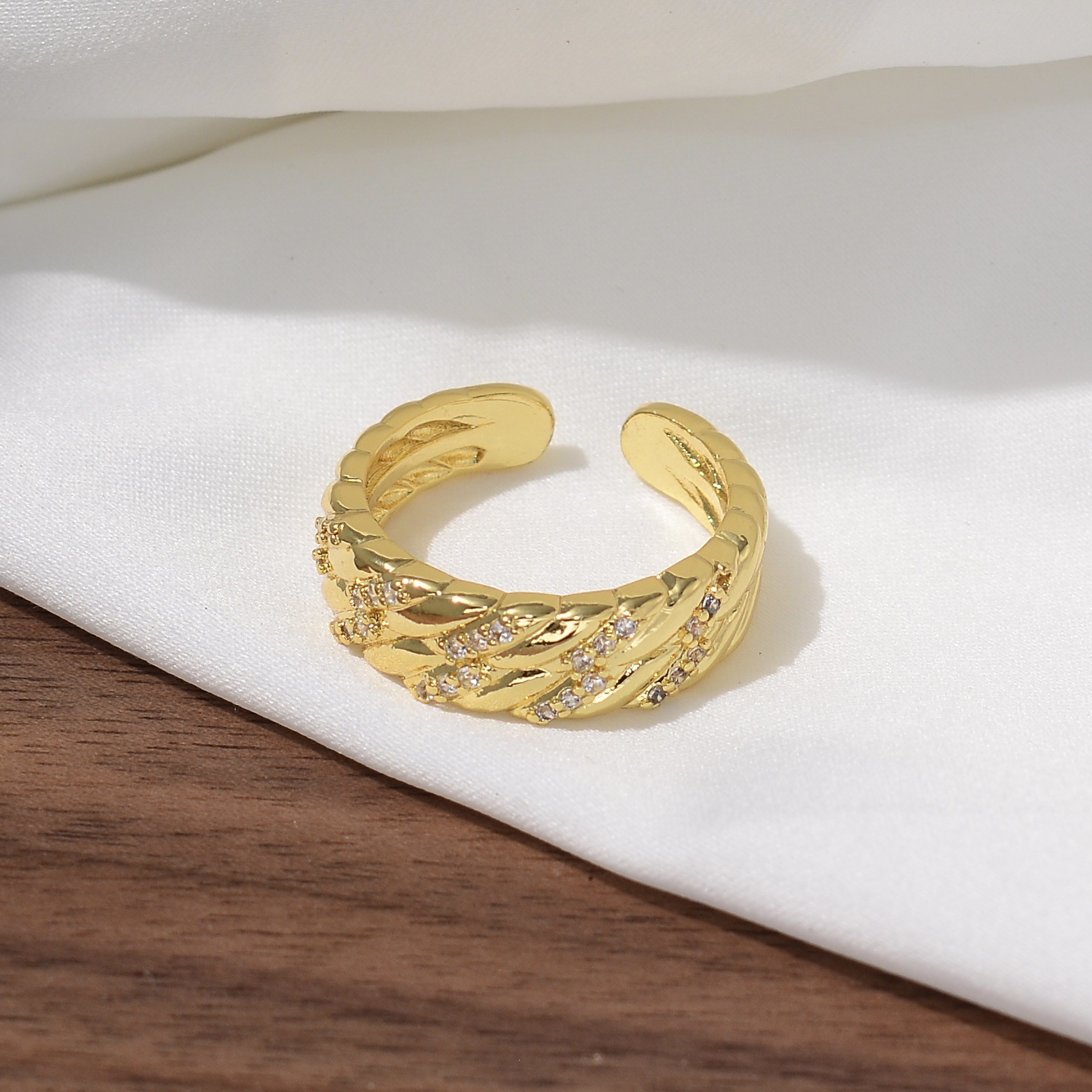 新款素图麻花镶嵌戒指轻奢高级感个性百搭小众时尚开口可调节指环