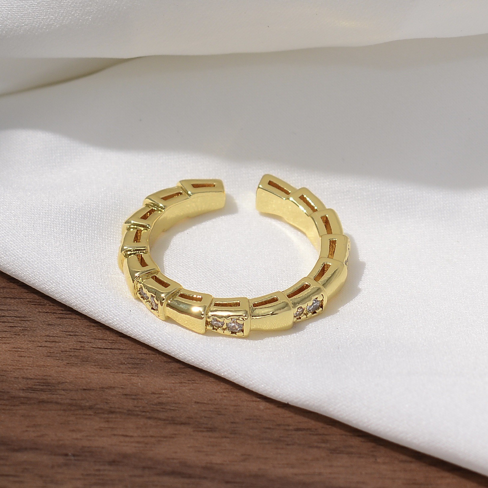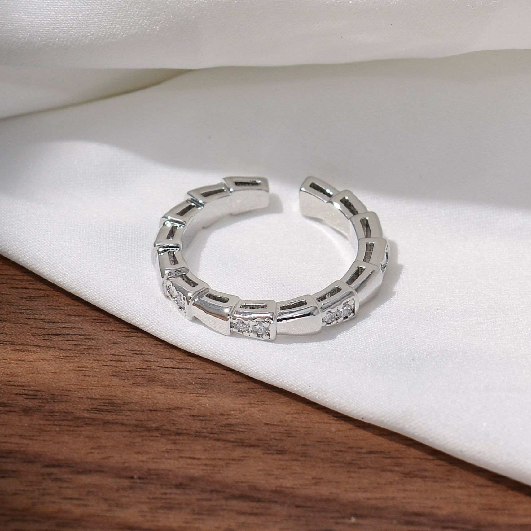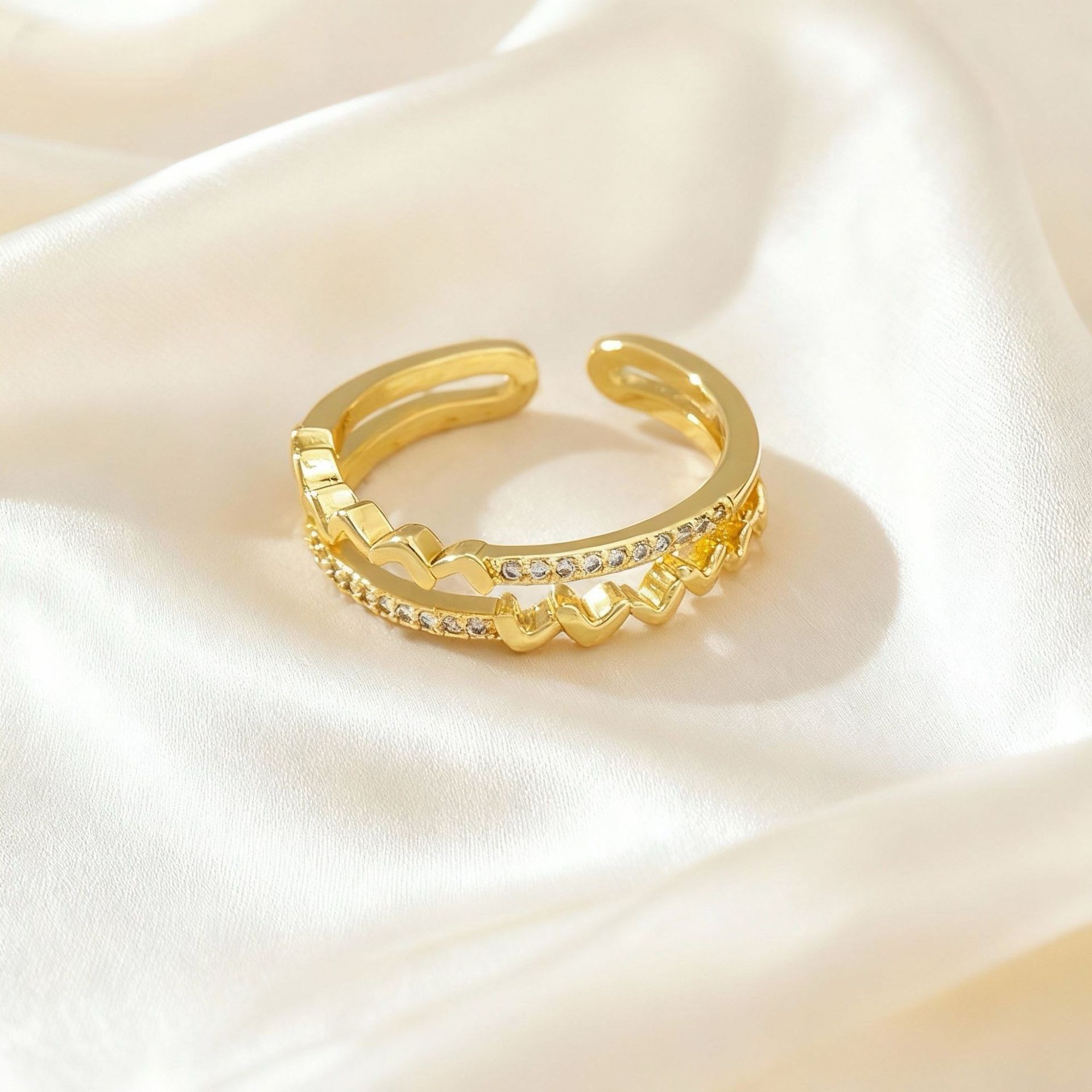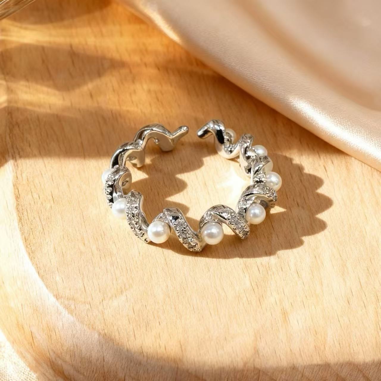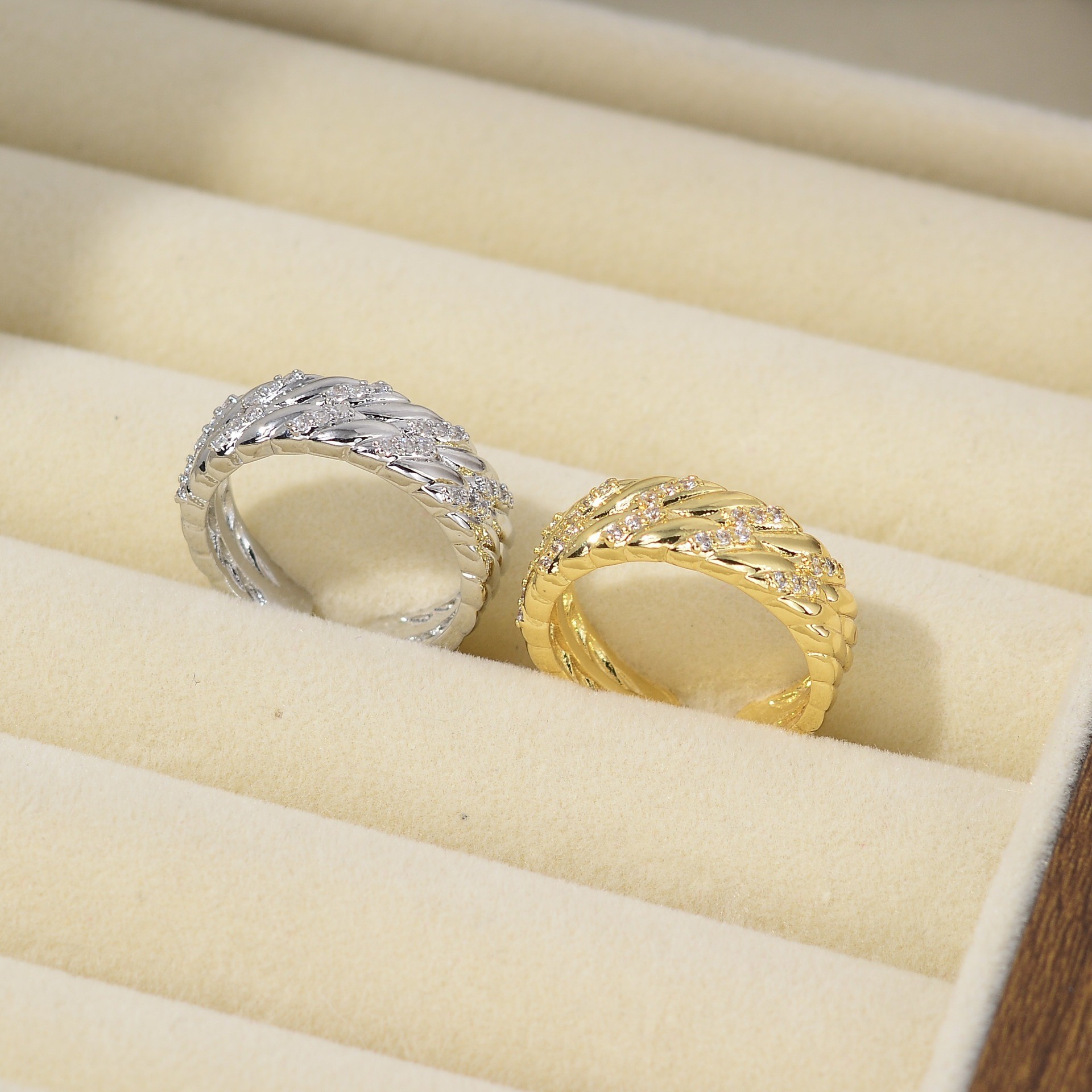 新款素图麻花镶嵌戒指轻奢高级感个性百搭小众时尚开口可调节指环